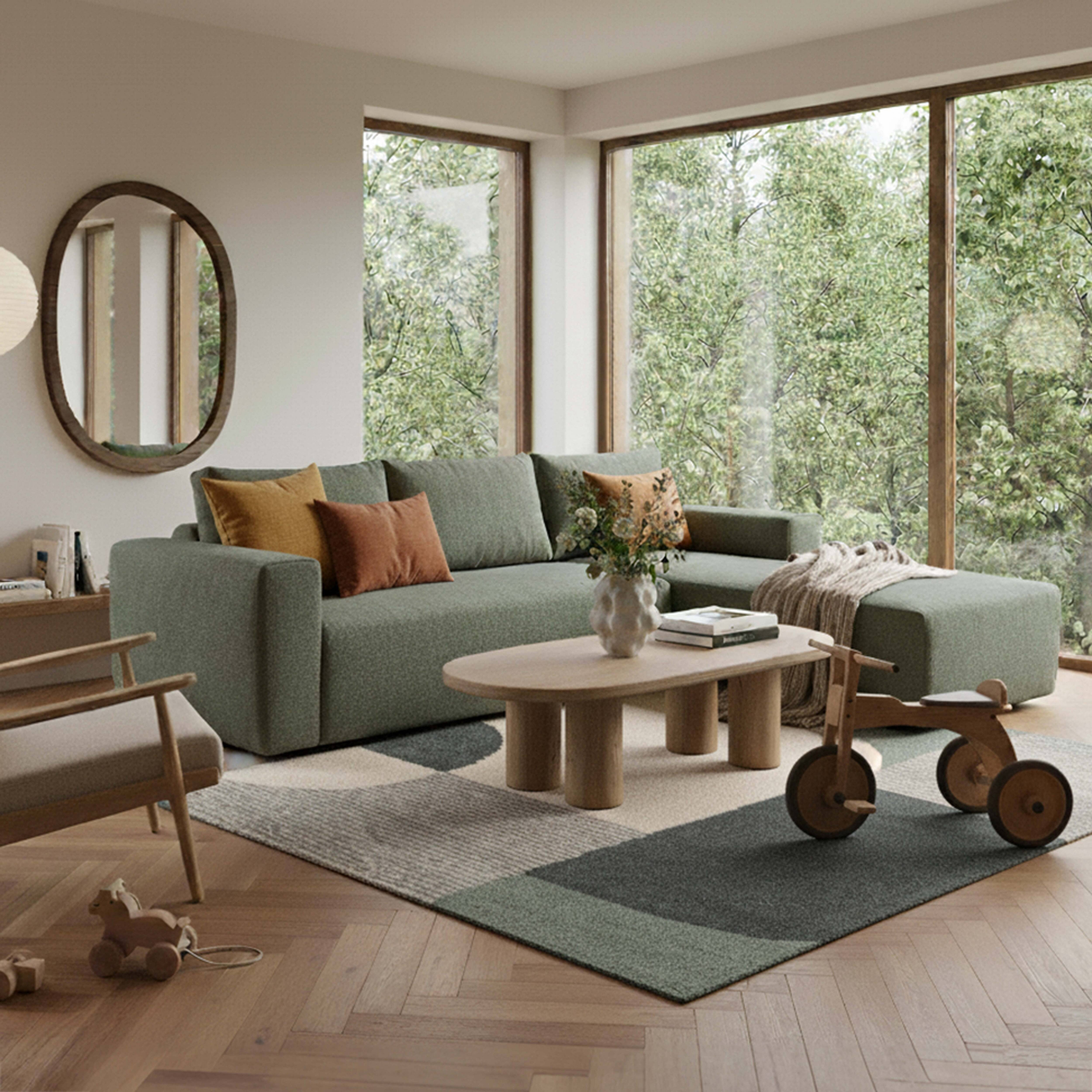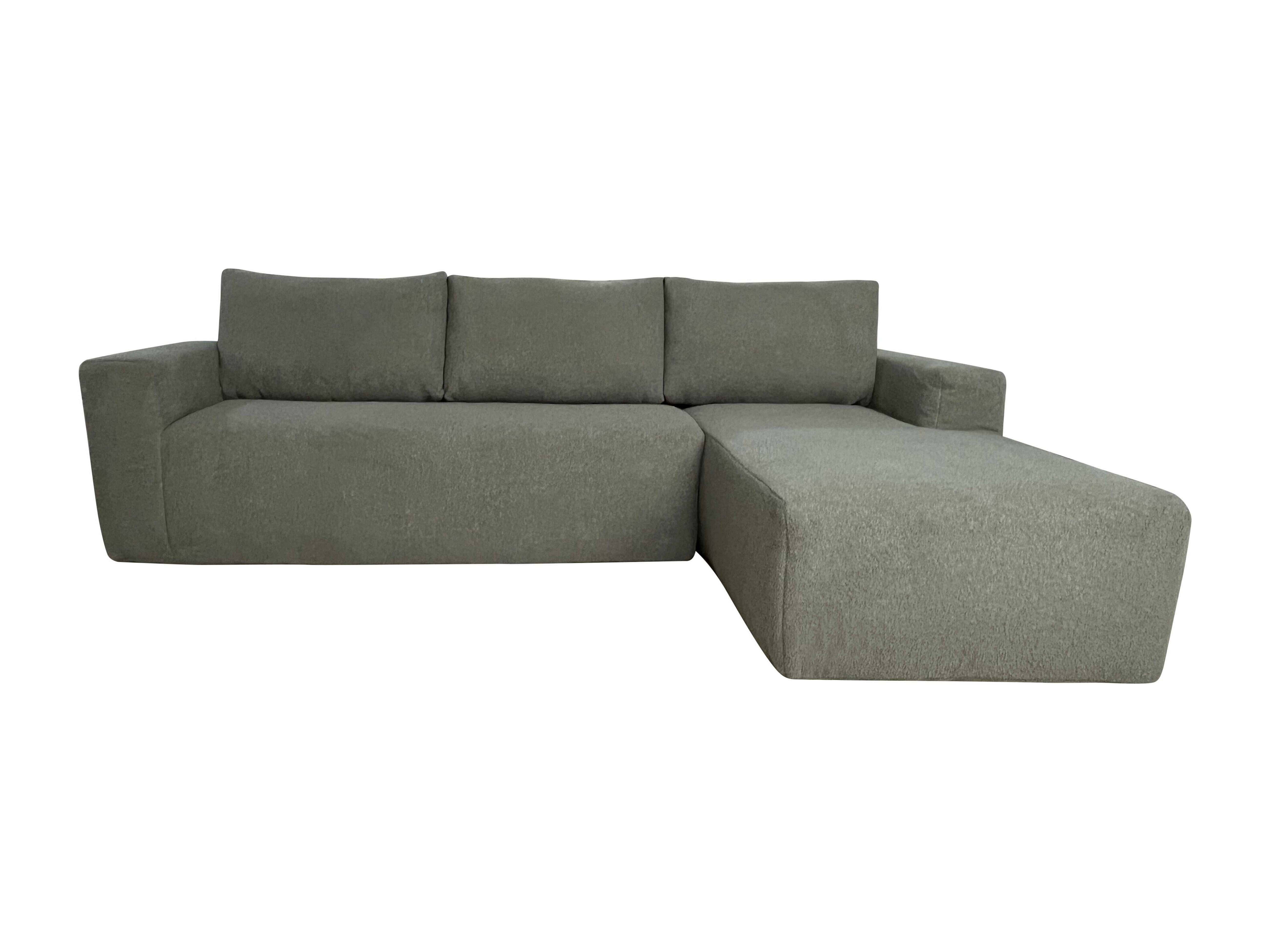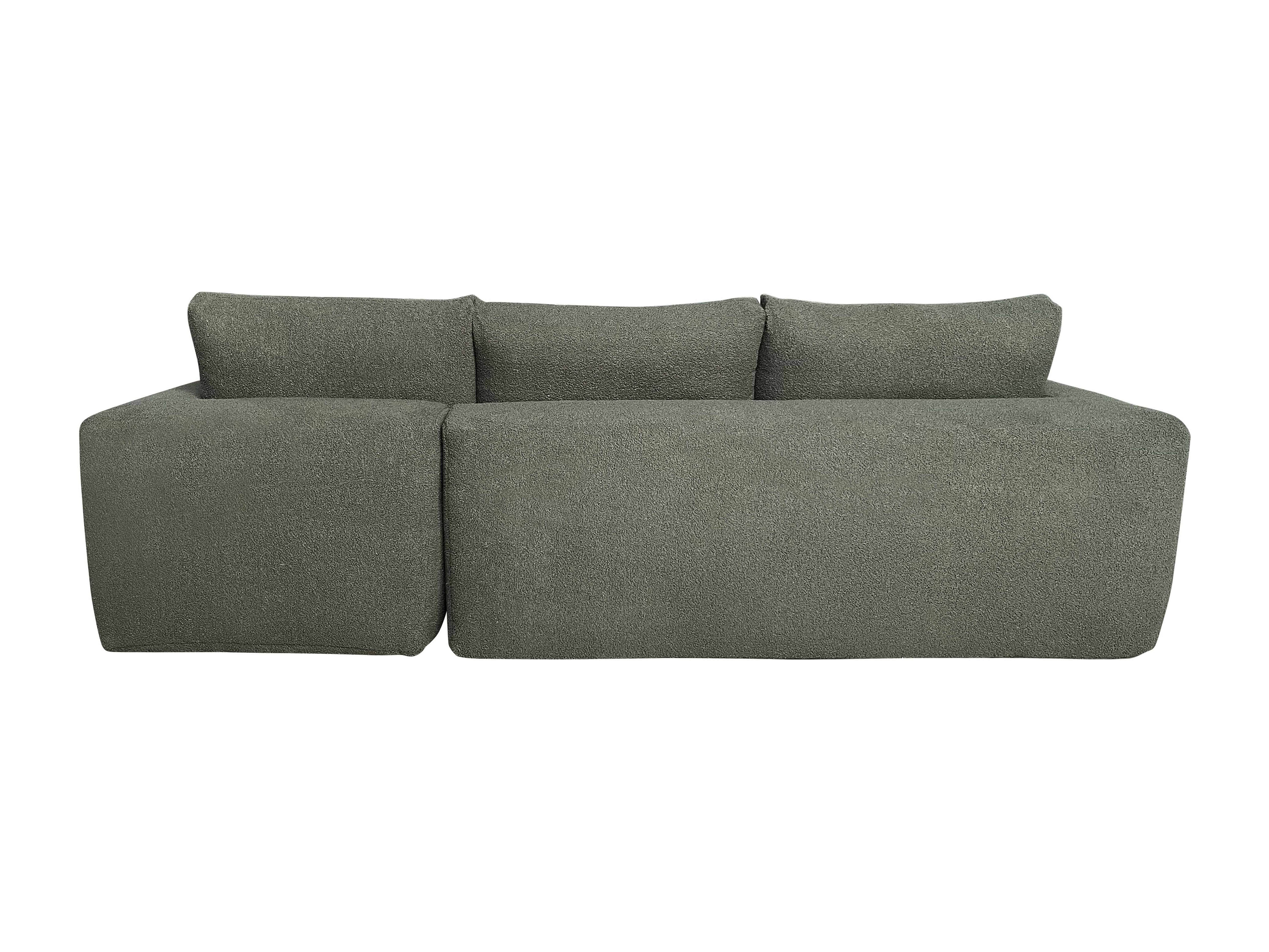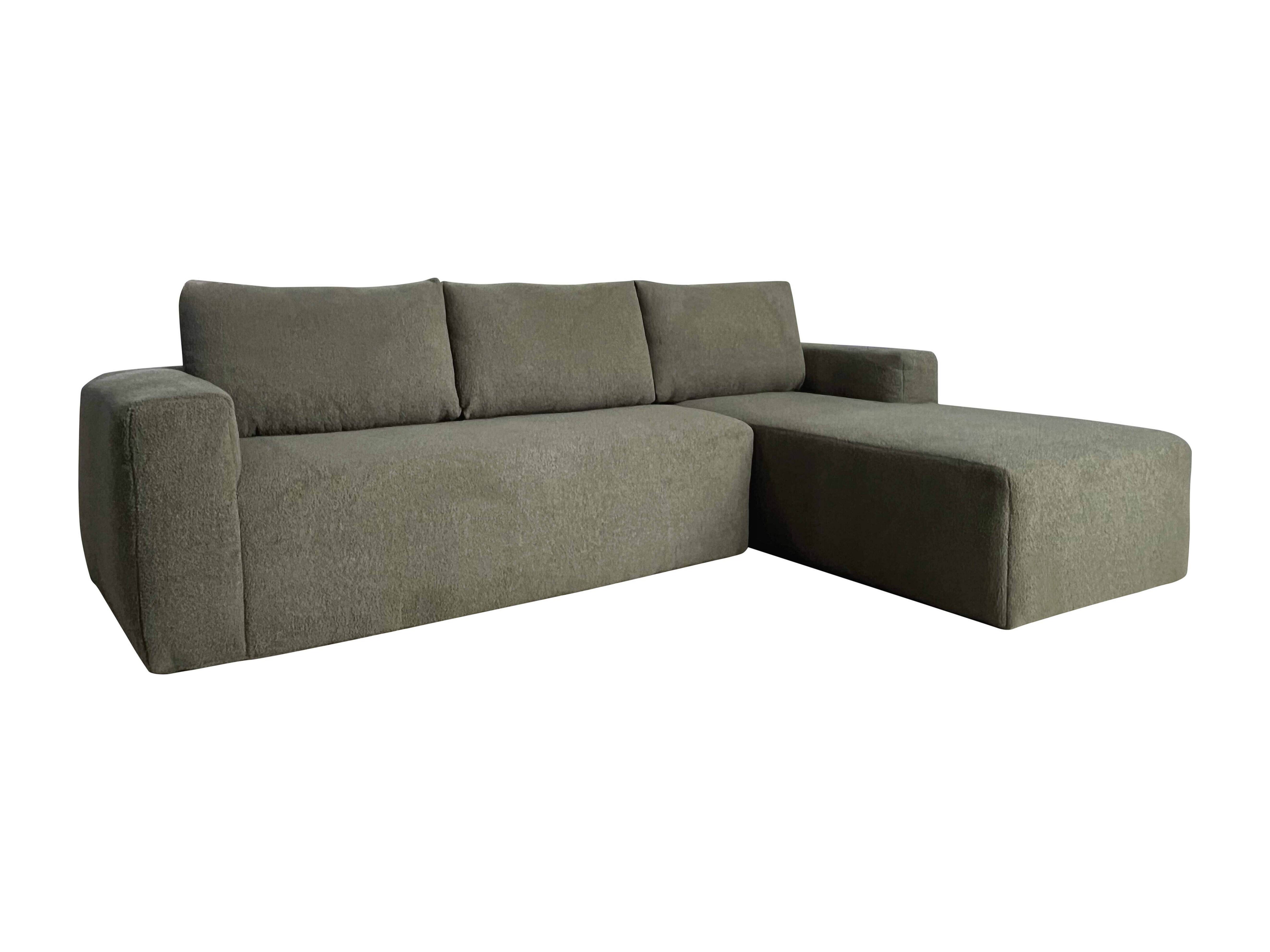 Canapé d'angle 4 places en tissu bouclette avec méridienne vert