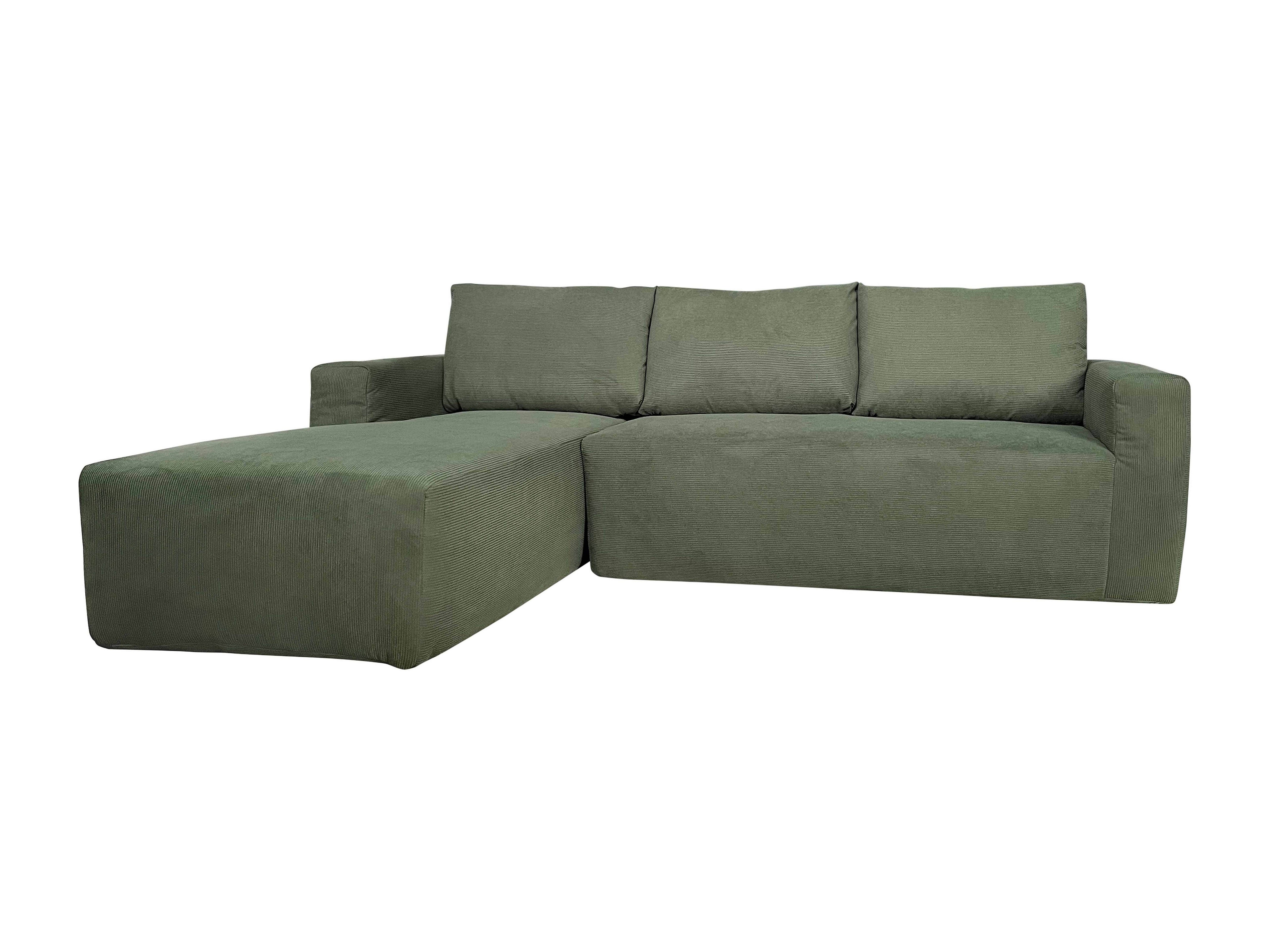 Canapé d'angle 4 places en tissu côtelé avec méridienne gauche vert