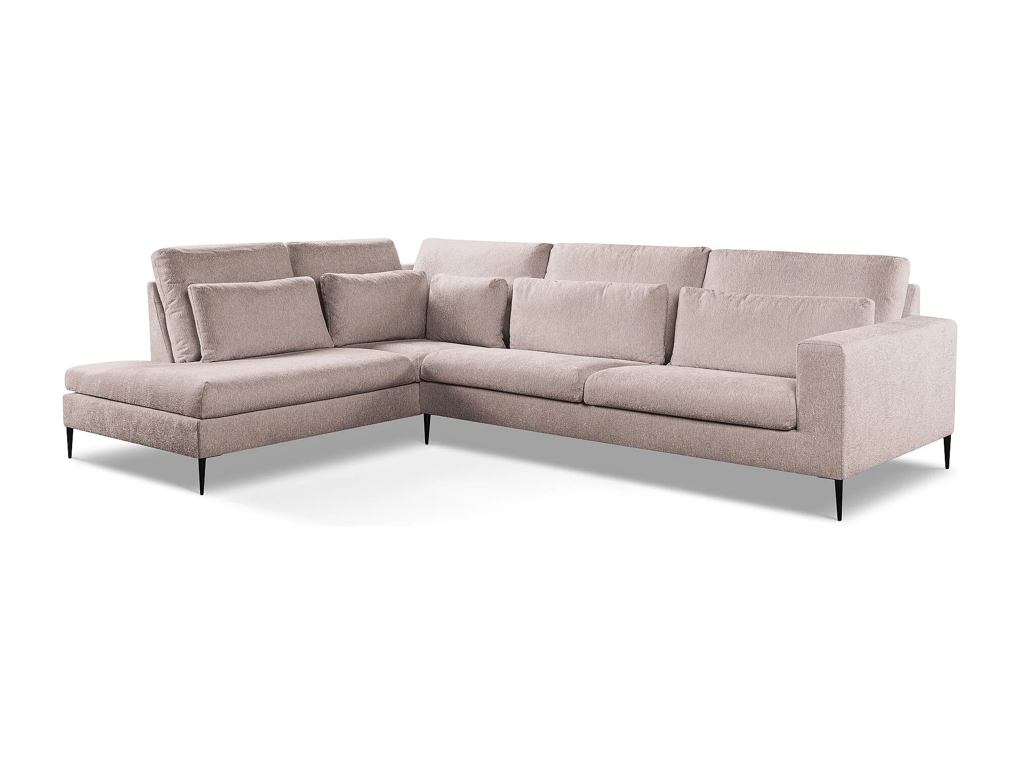 Canapé d'angle Modena en L, tissu Poso, rose, droit