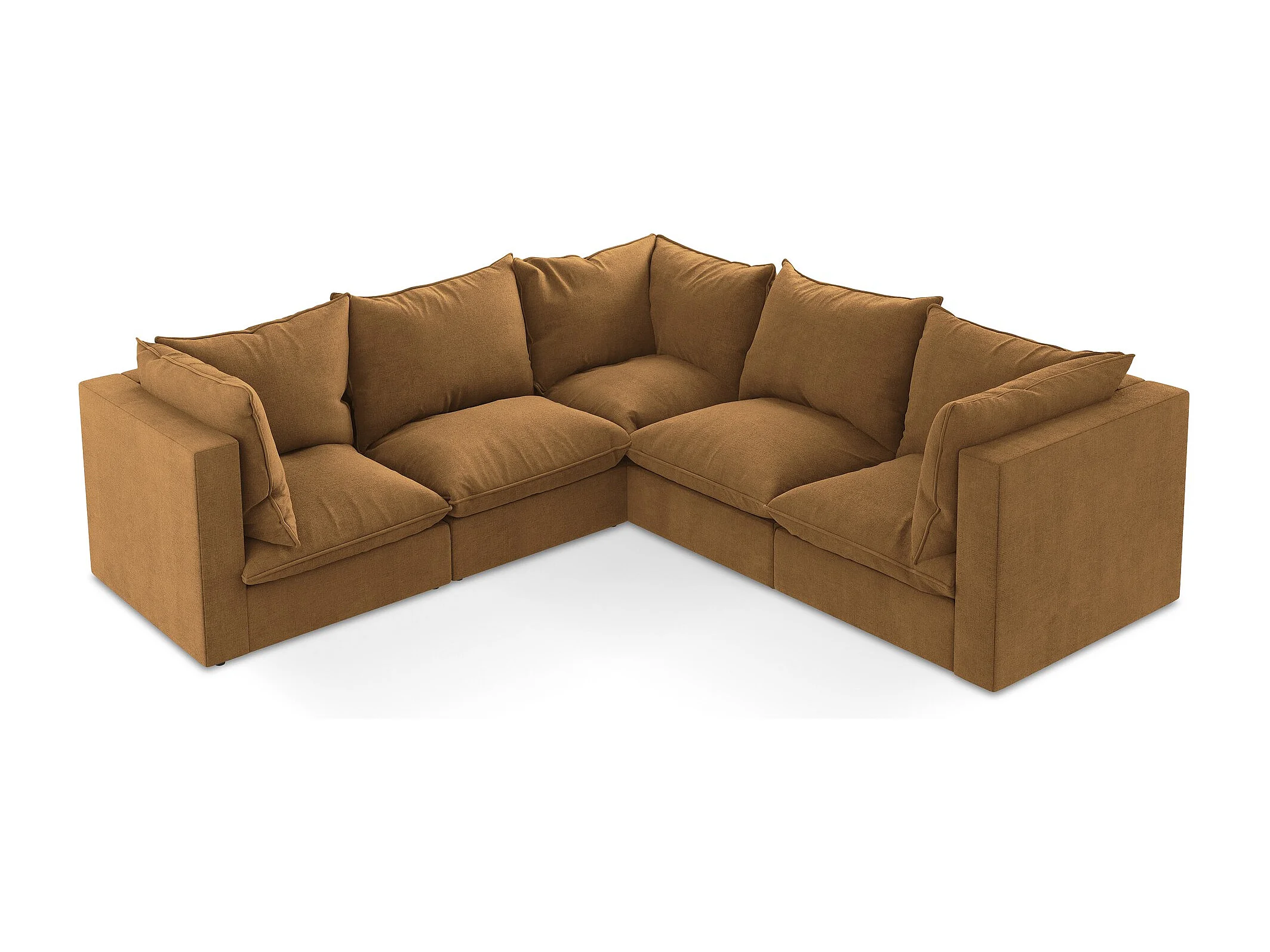 Canapé d'angle 4 places modulaire en tissu texturé - terre cuite - MANAO