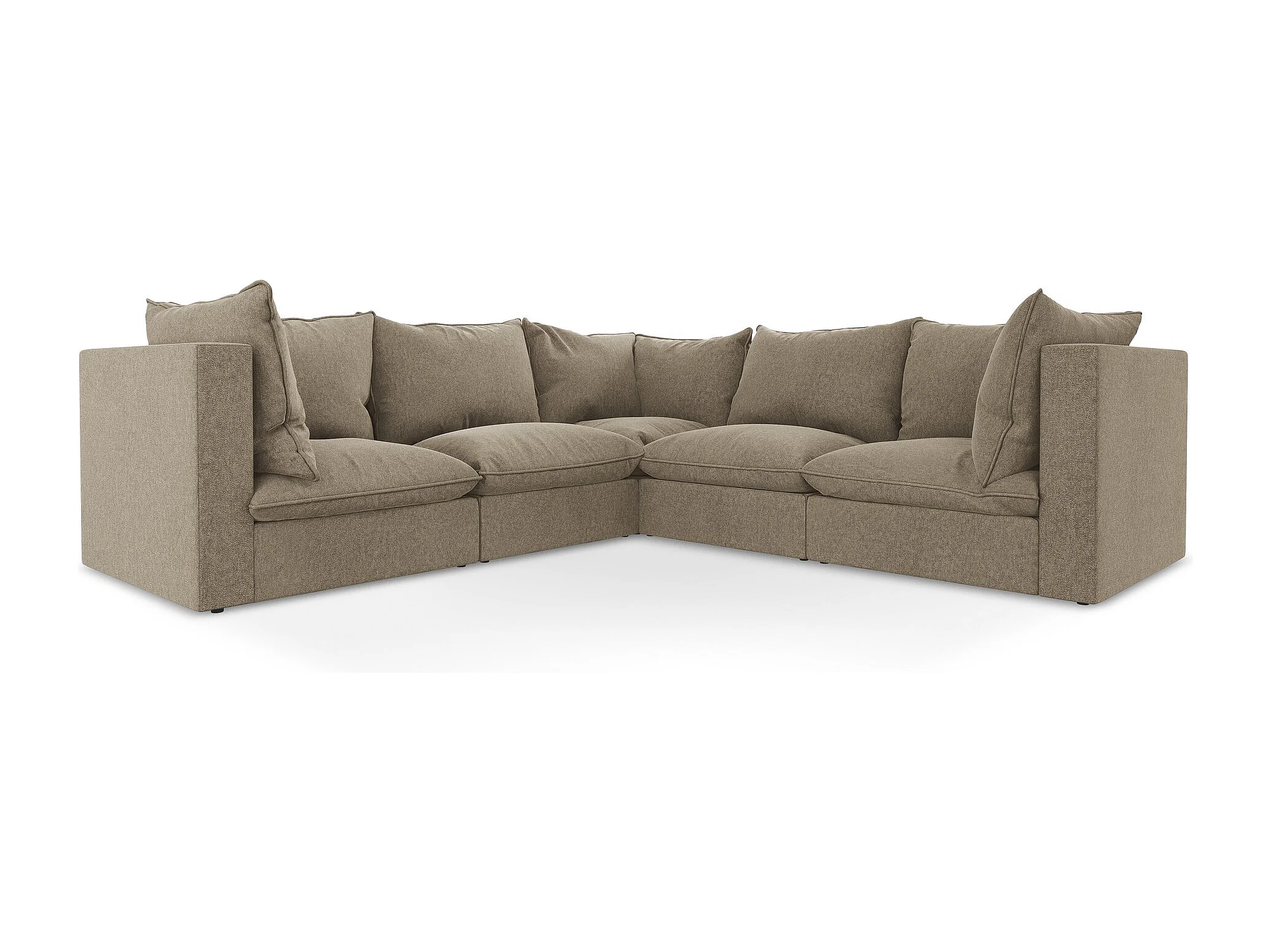 Canapé d'angle 4 places modulaire en velours - beige - MANAO