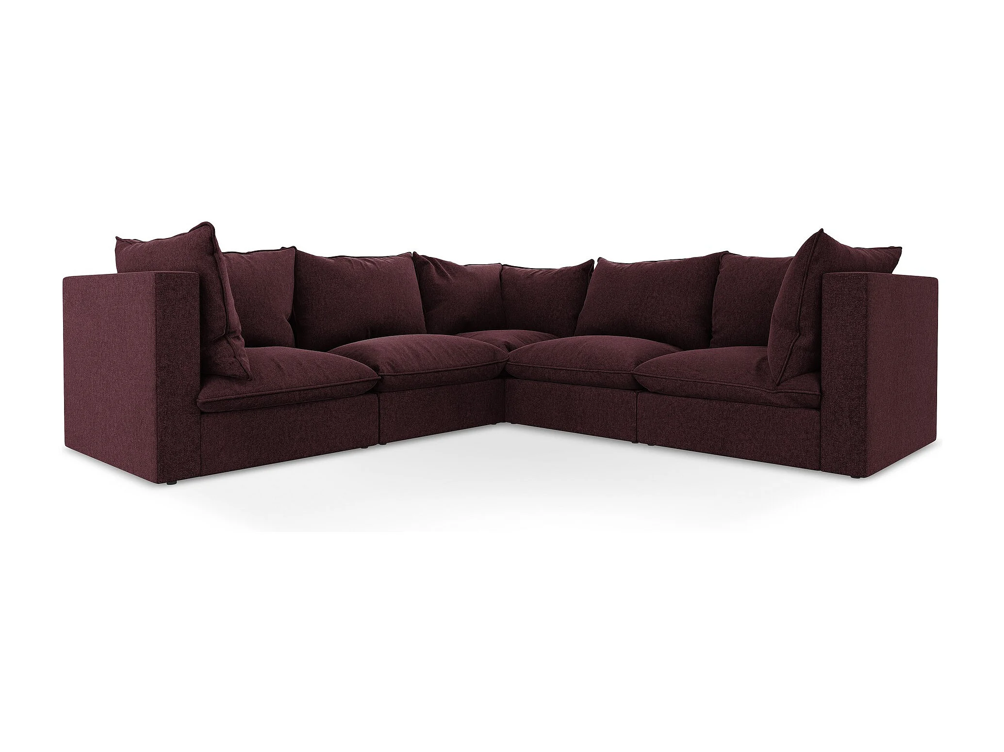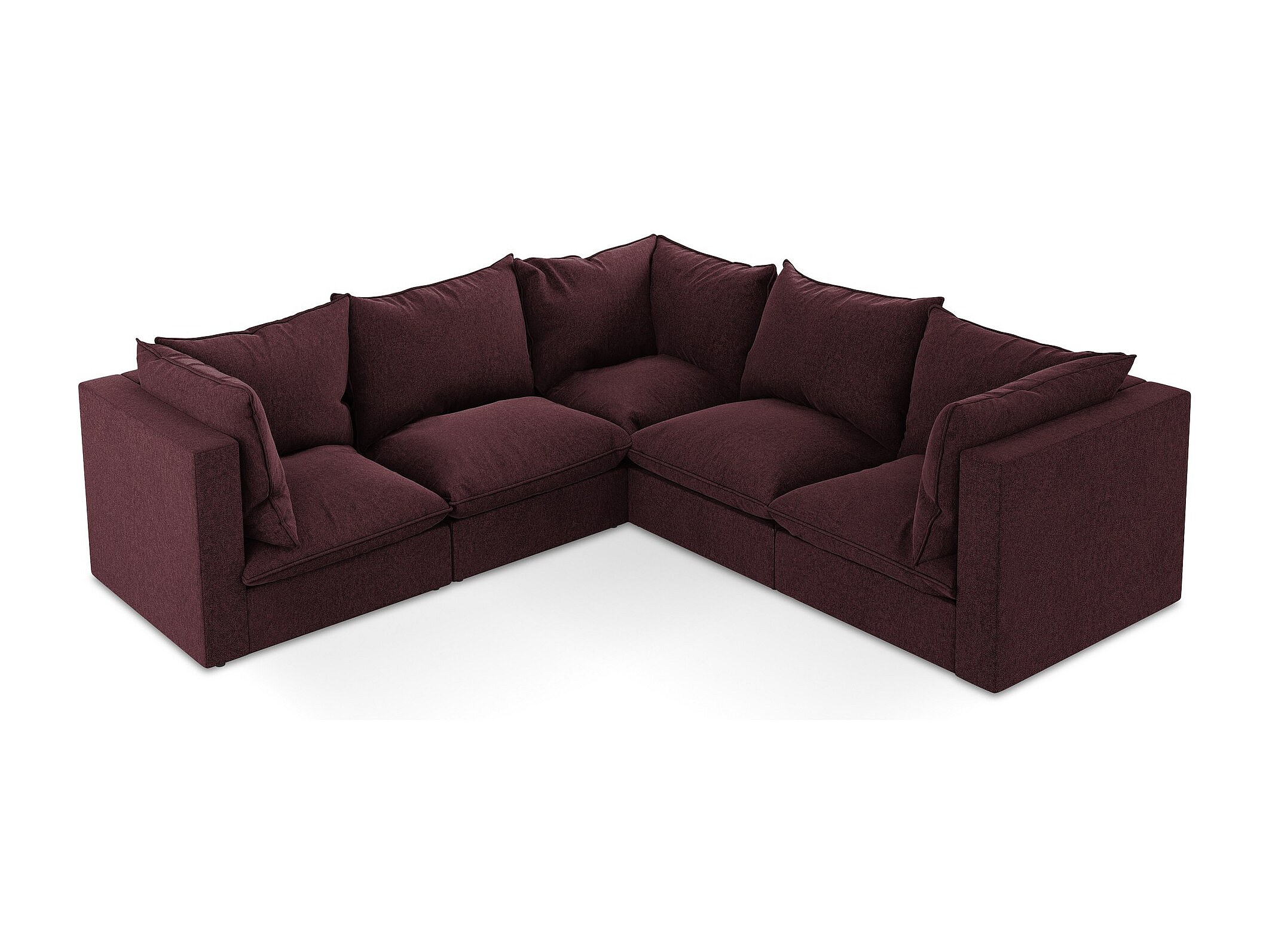 Canapé d'angle 4 places modulaire en velours - bourgogne - MANAO