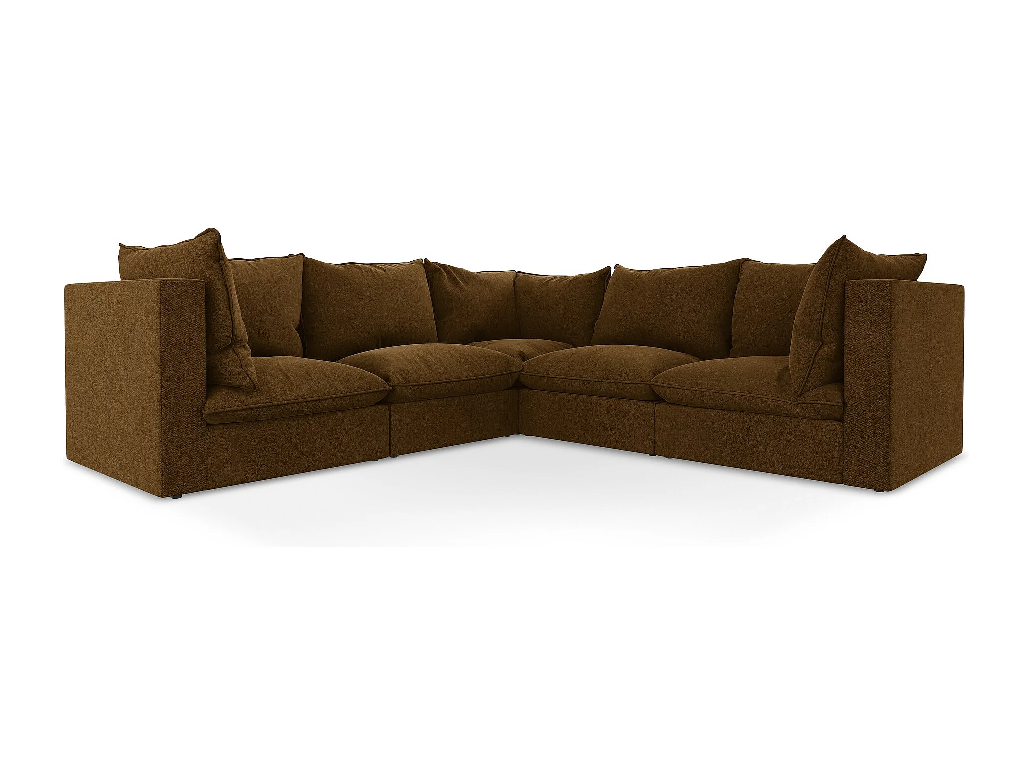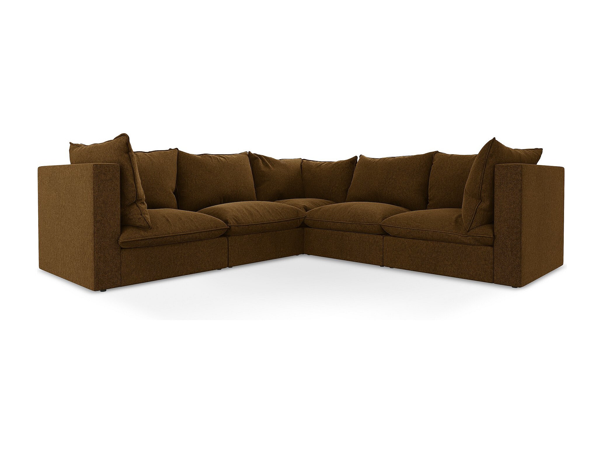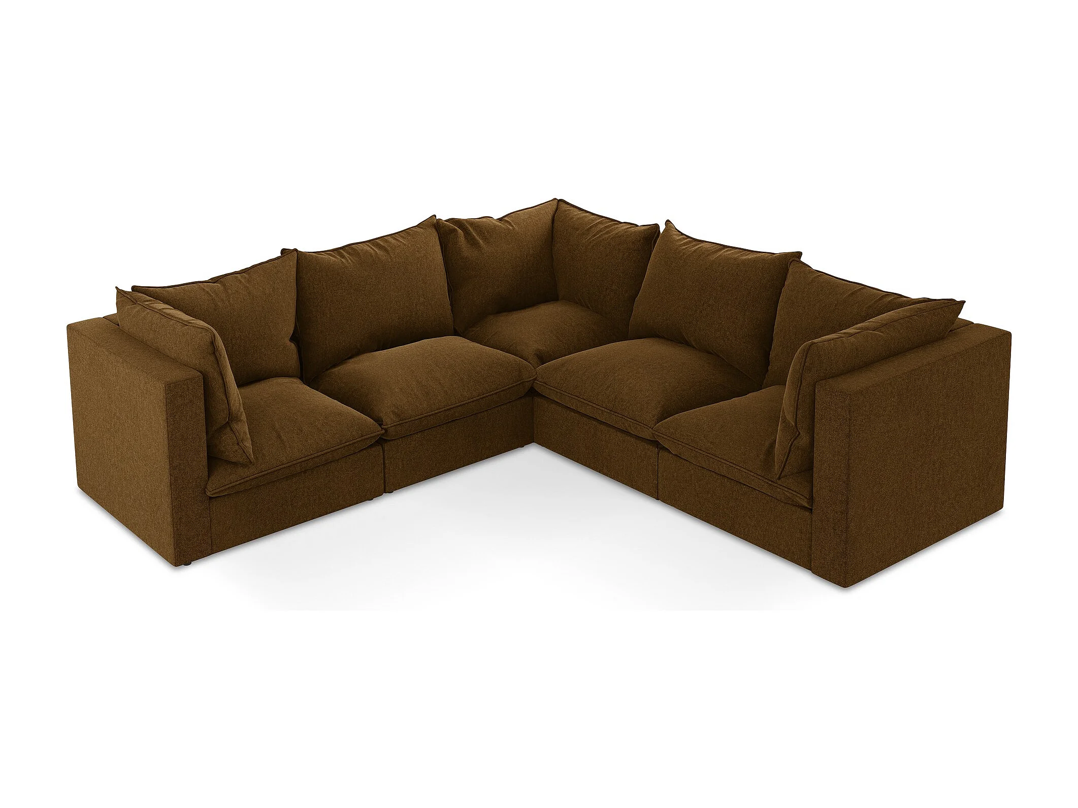 Canapé d'angle 4 places modulaire en velours - moutarde - MANAO
