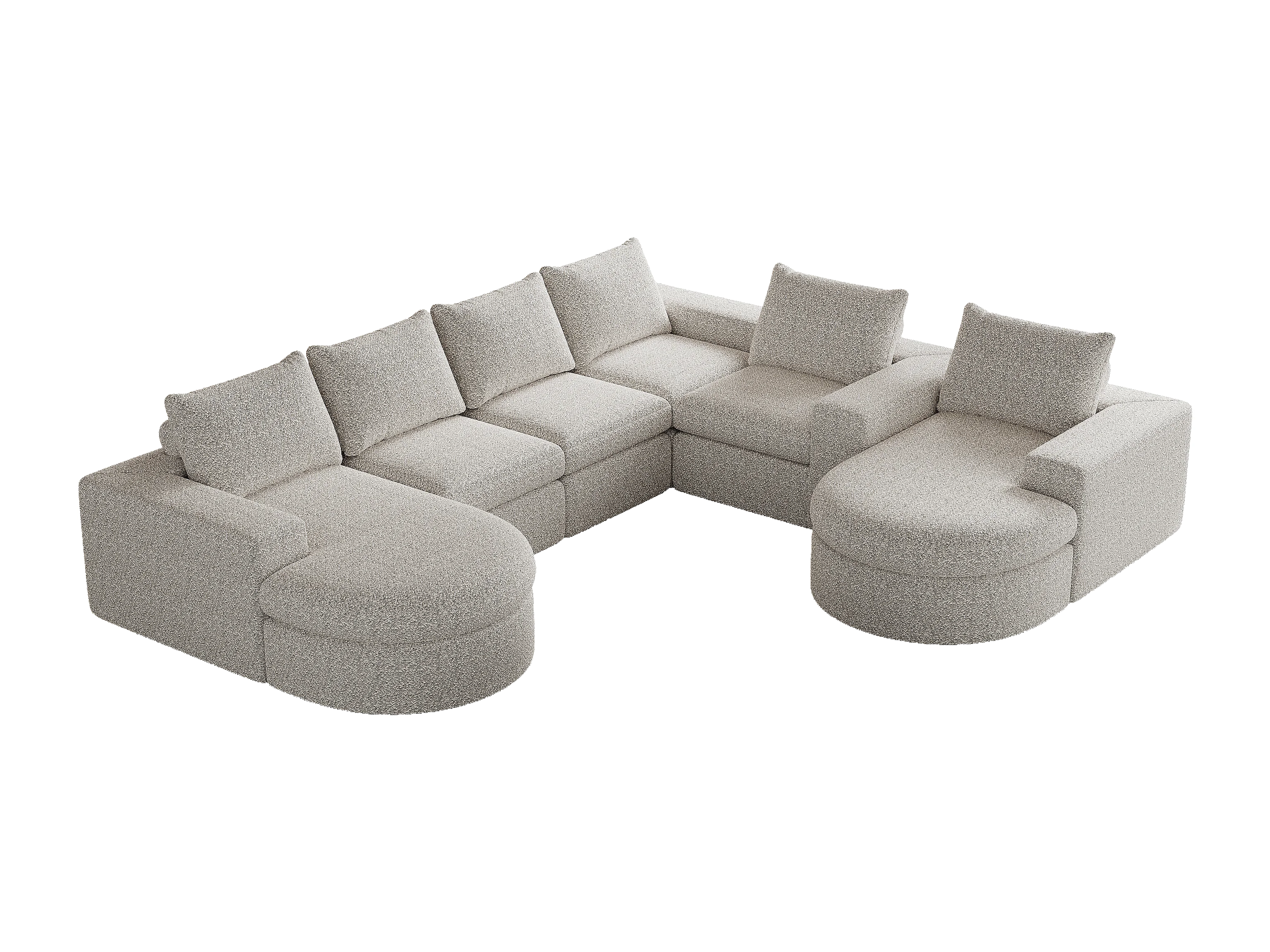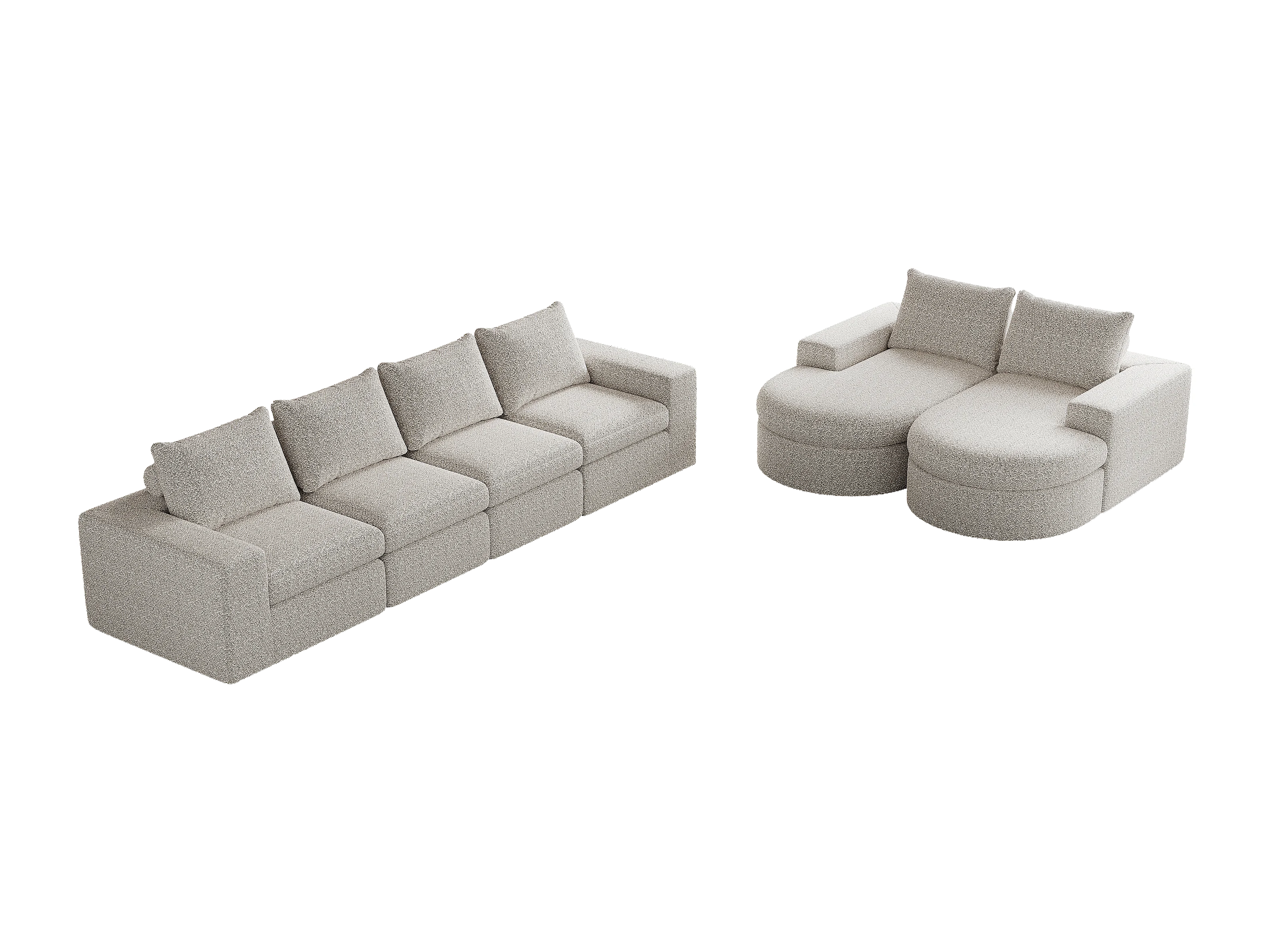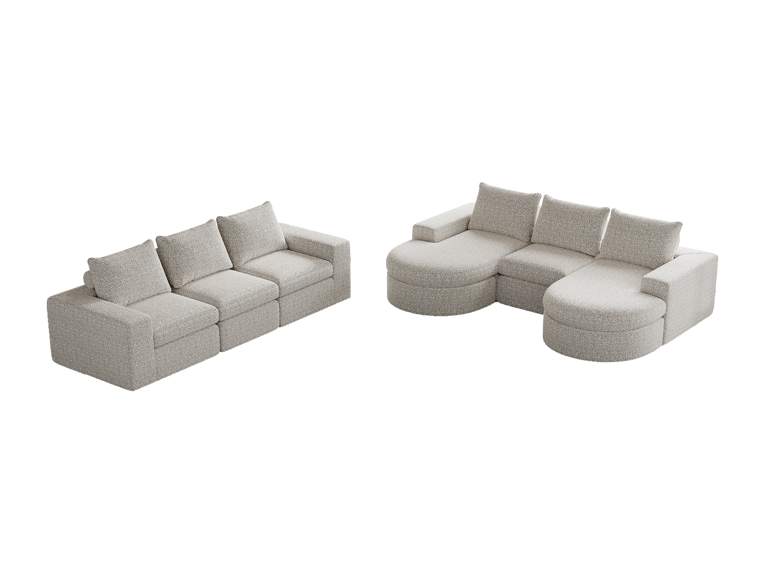 Canapé d'angle 6 places modulable avec méridienne - Tissu chenille beige - Sans montage