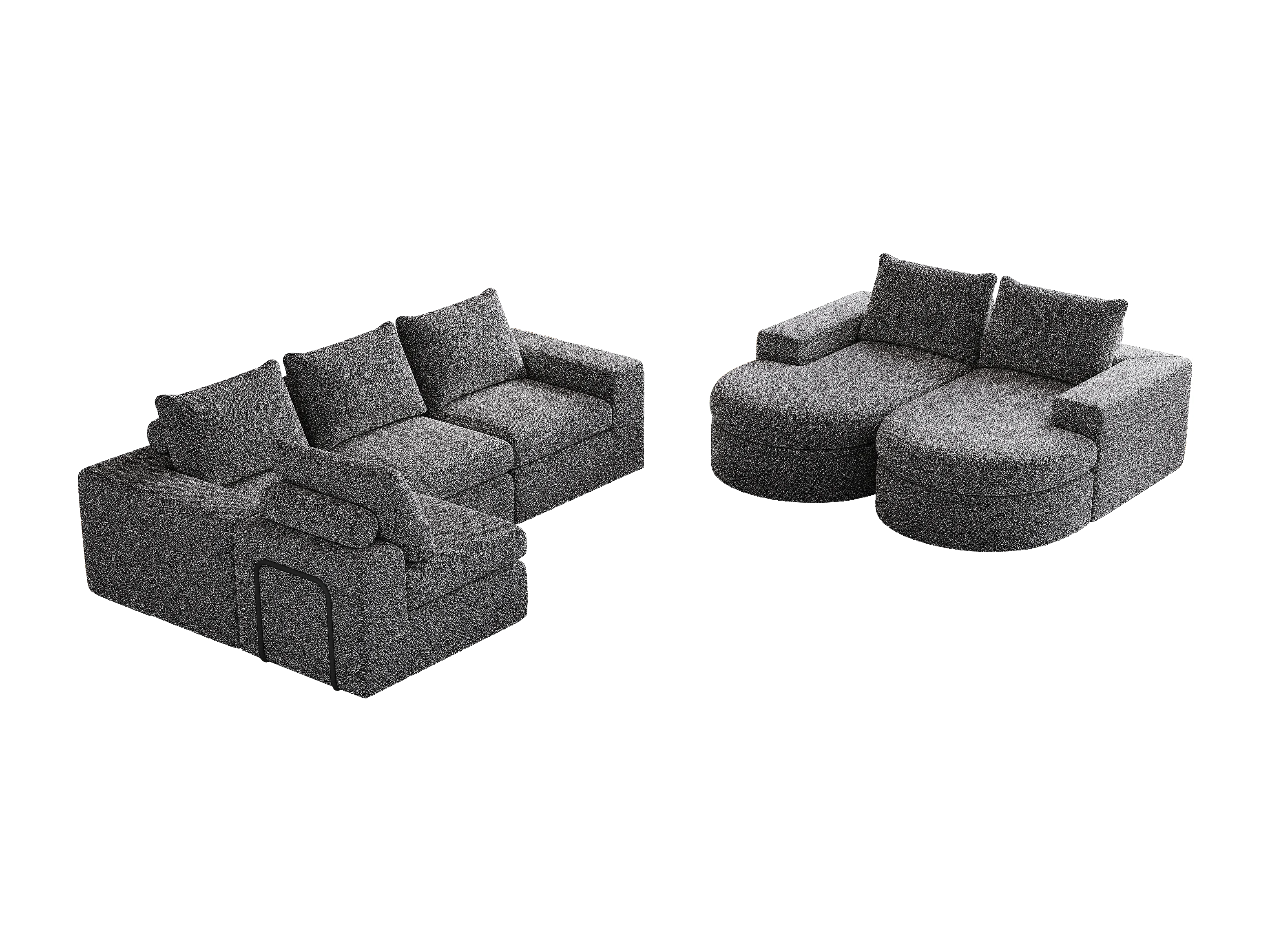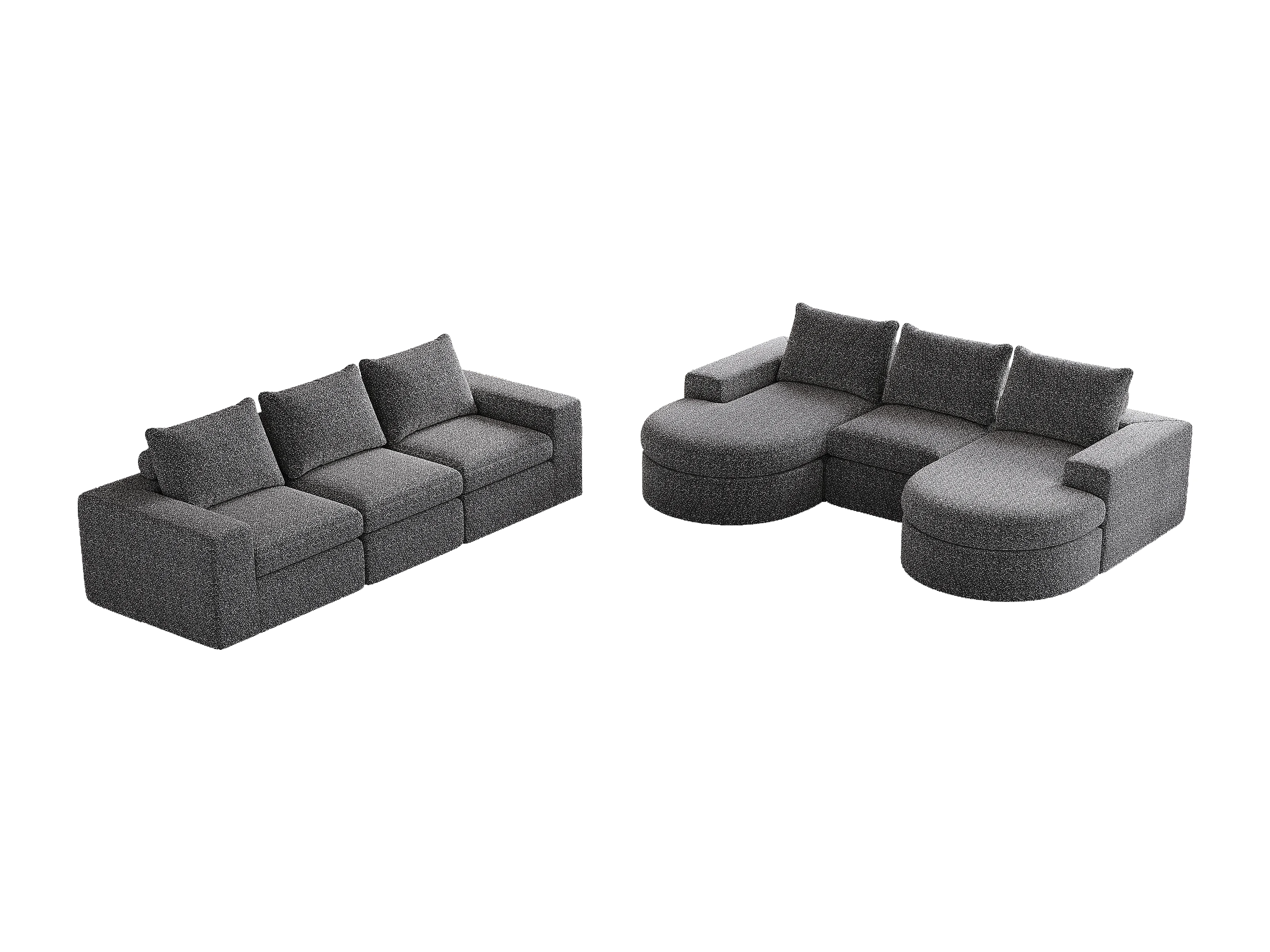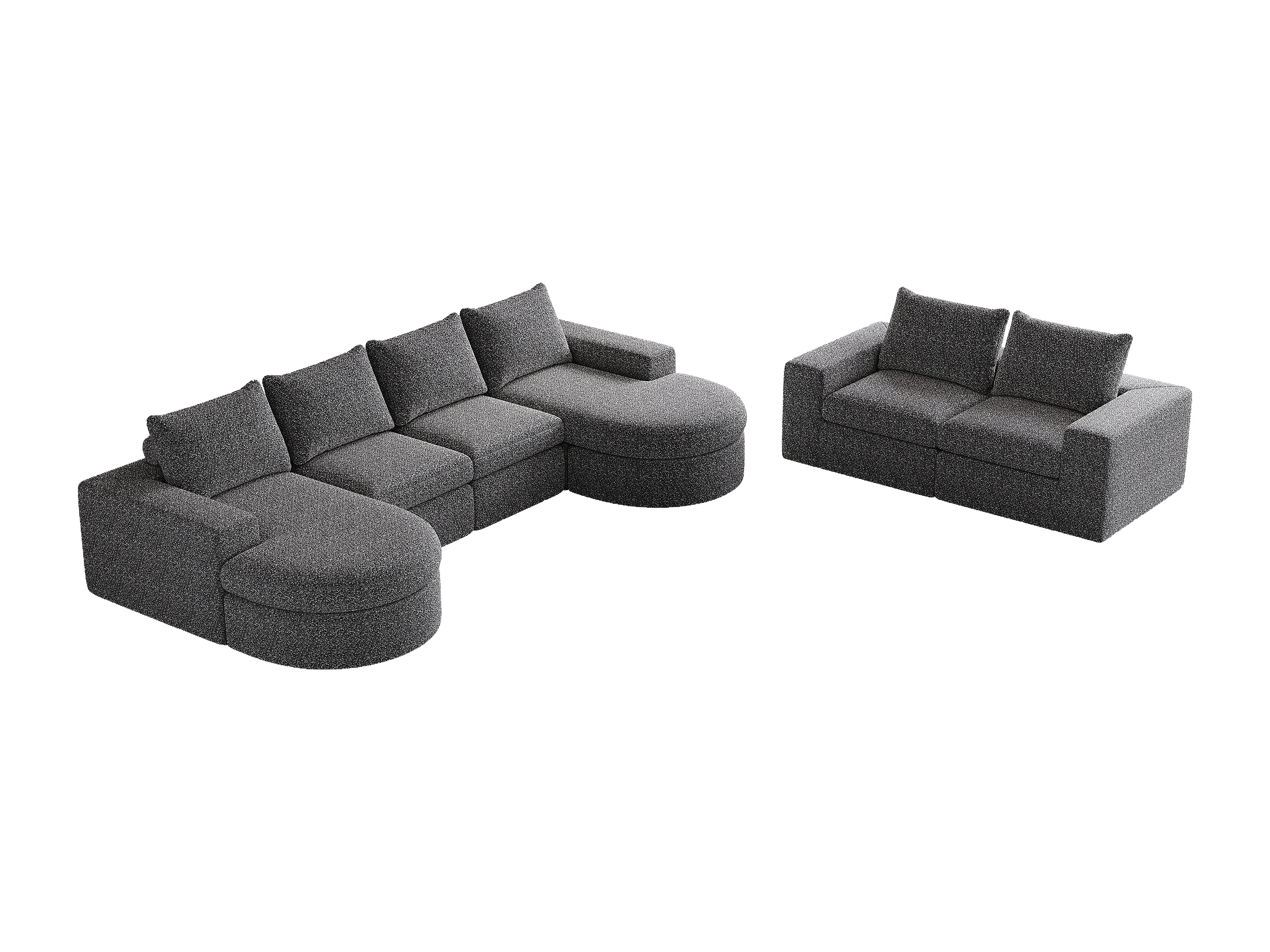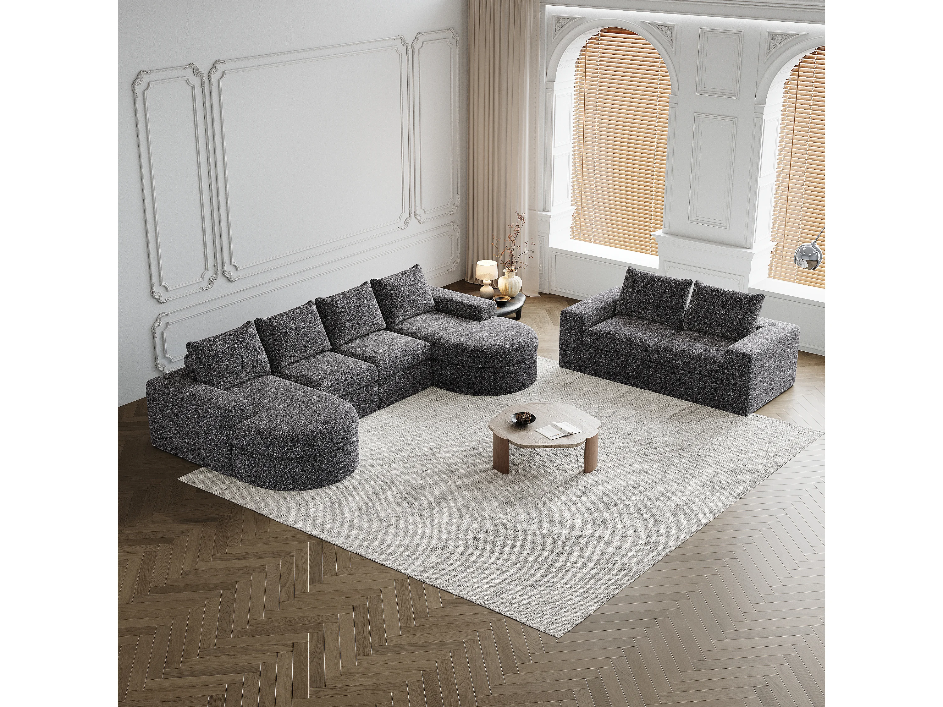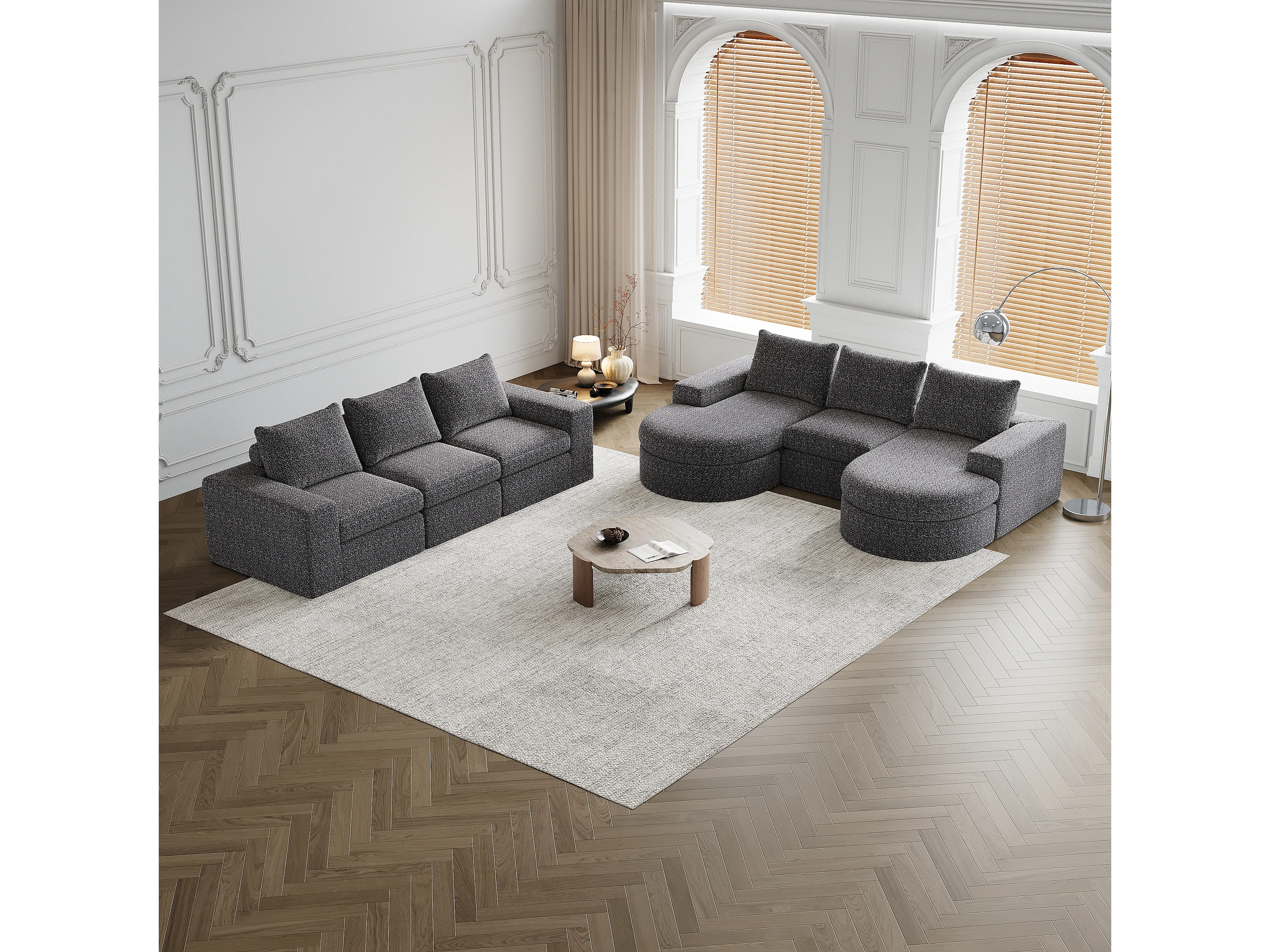 Canapé d'angle 6 places modulable avec méridienne - Tissu chenille gris - Sans montage