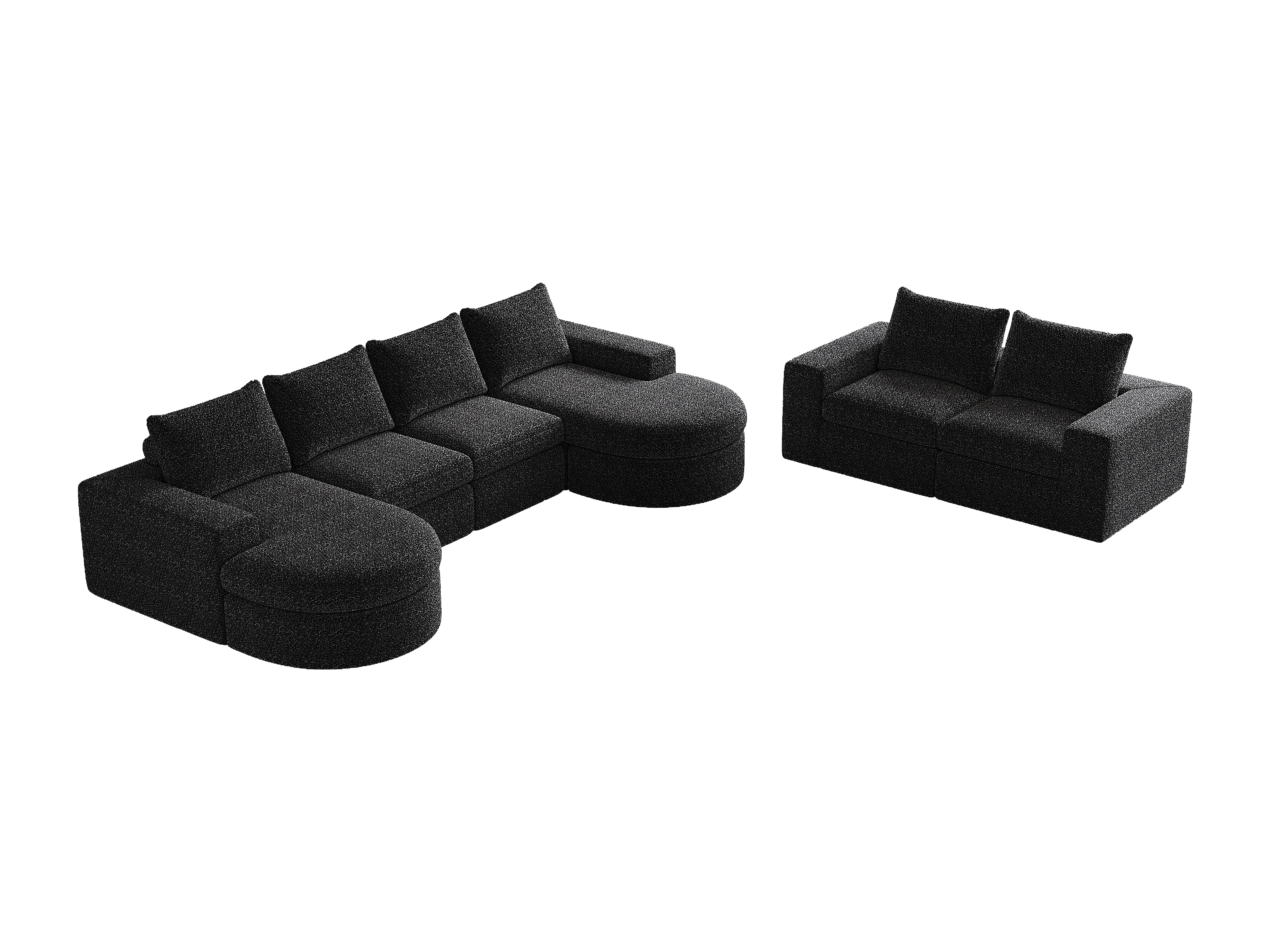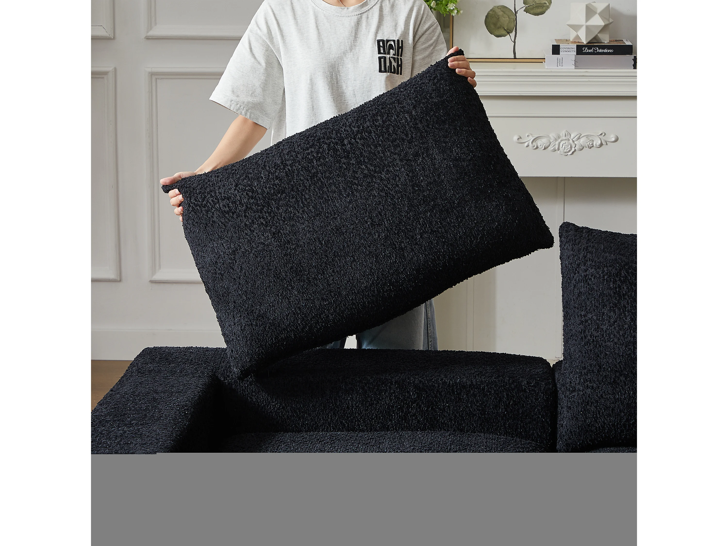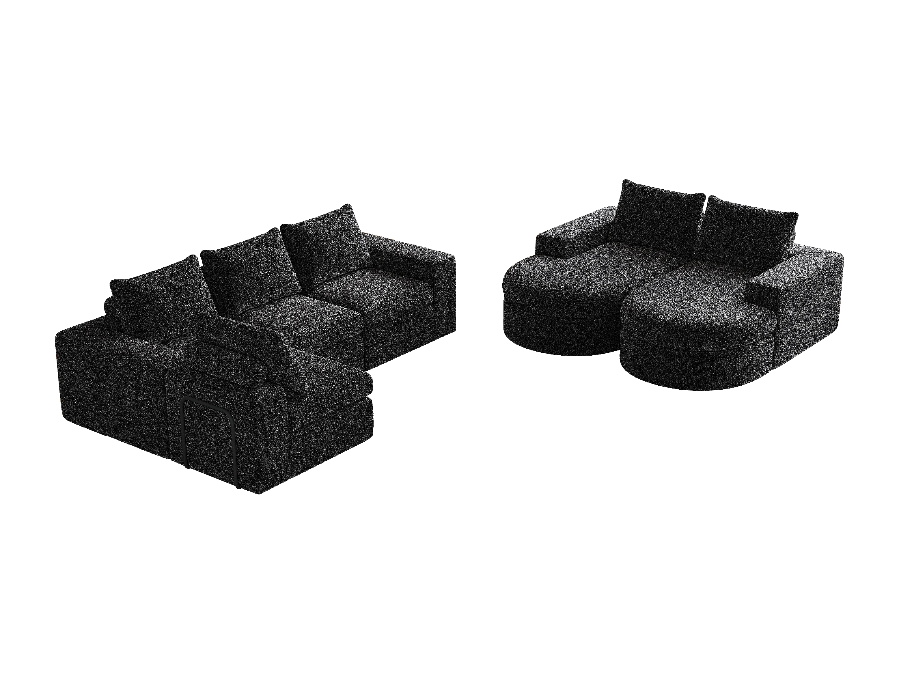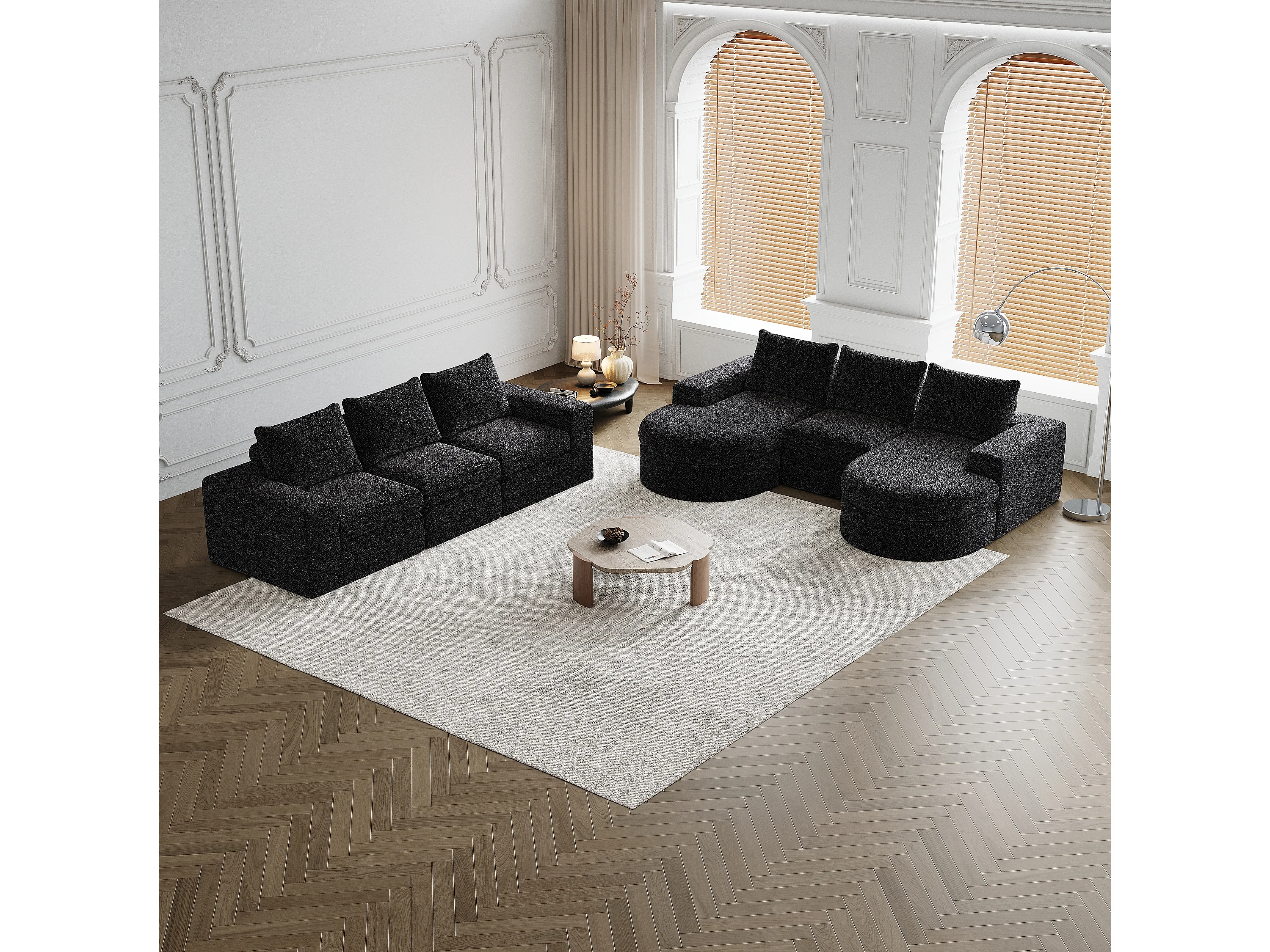 Canapé d'angle 6 places modulable avec méridienne - Tissu chenille noir - Sans montage