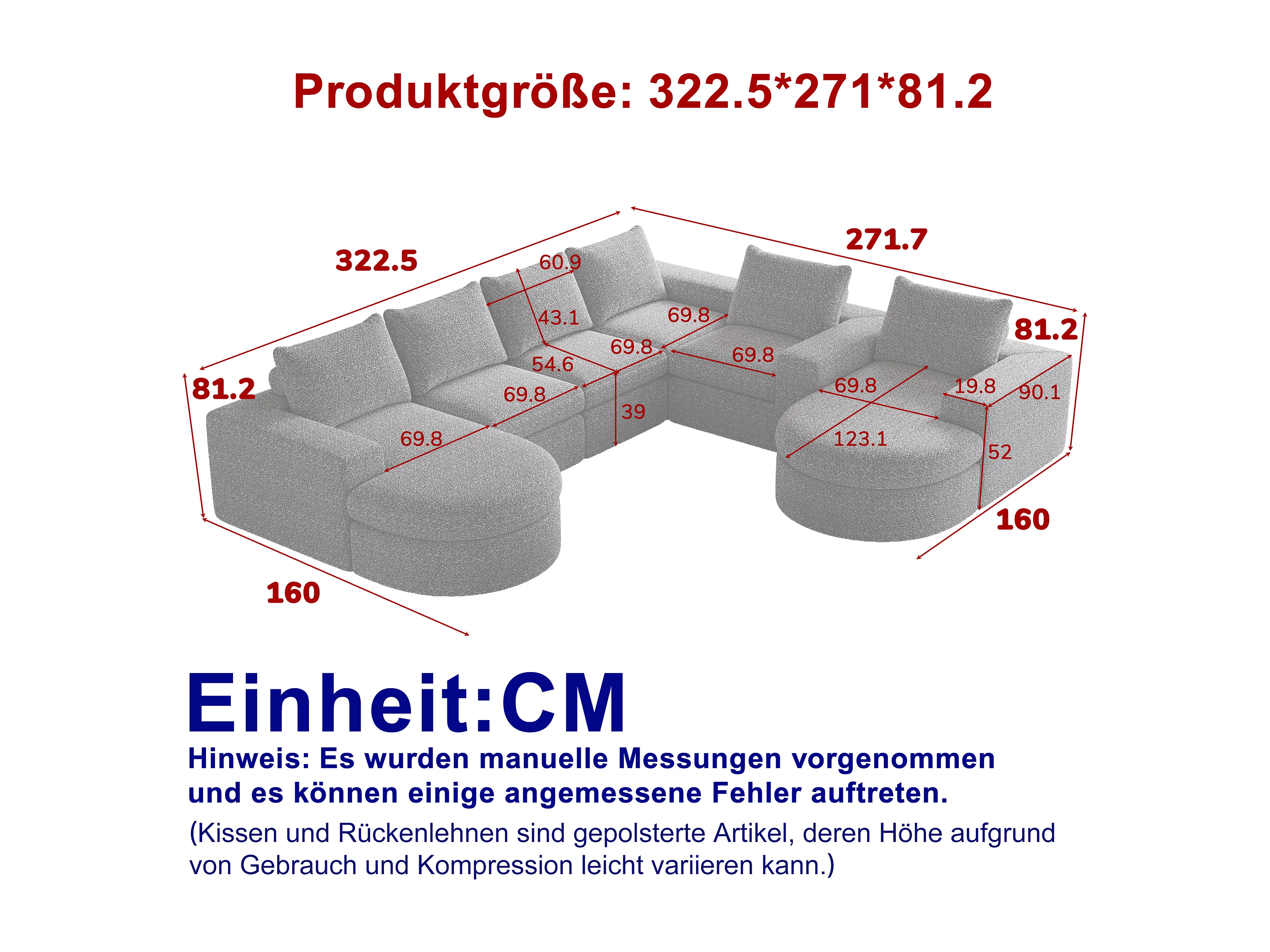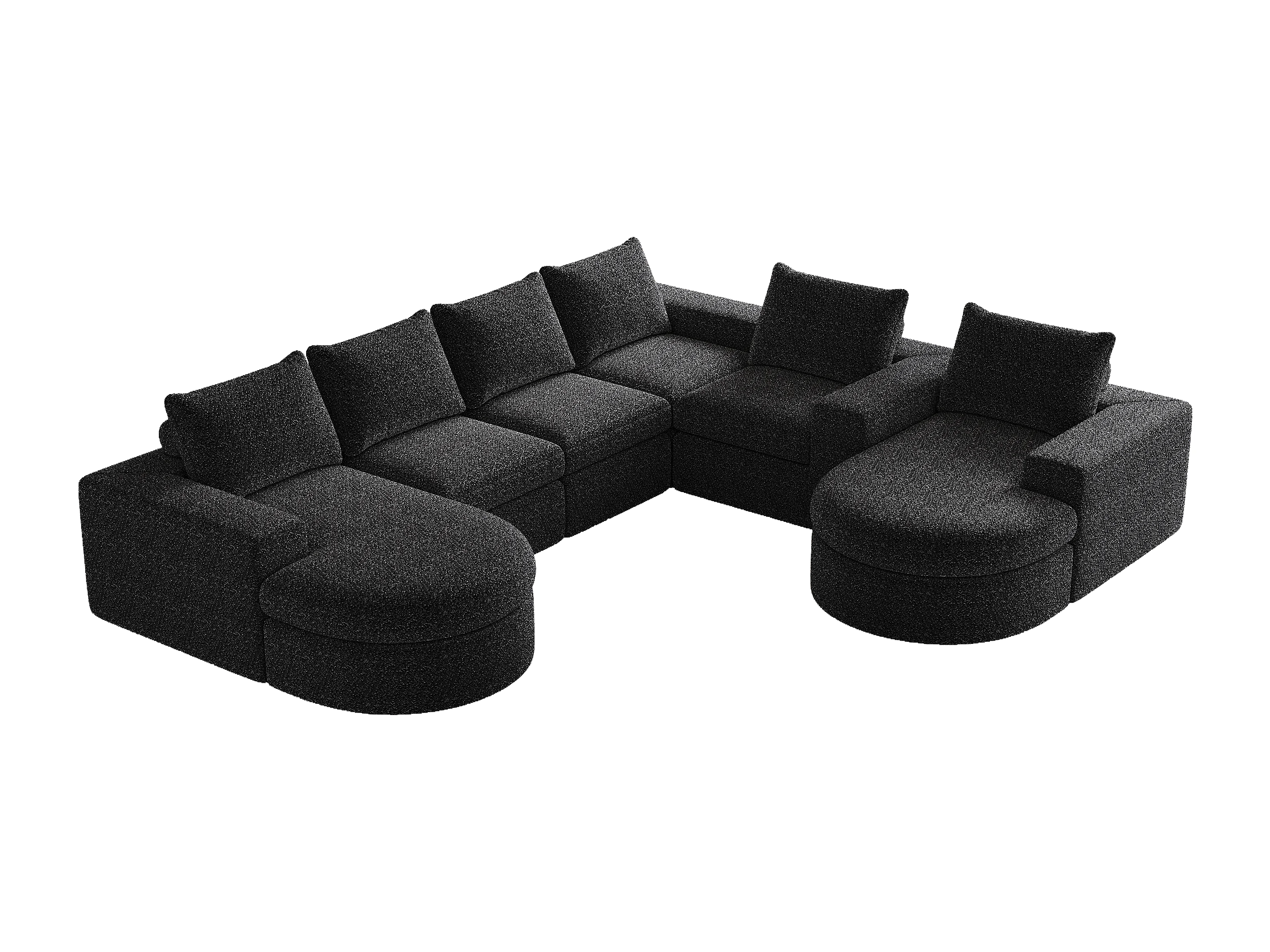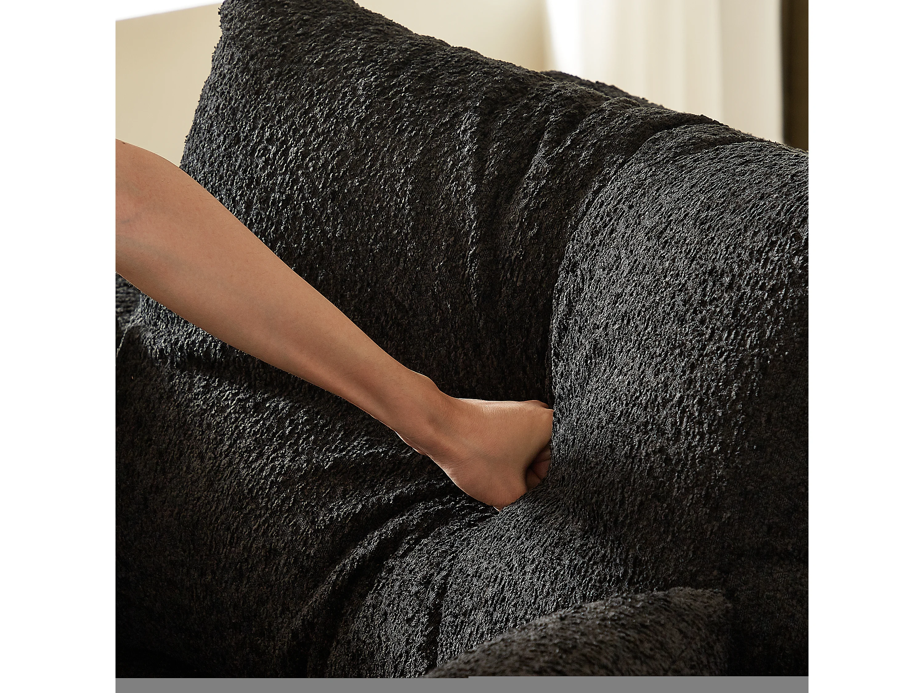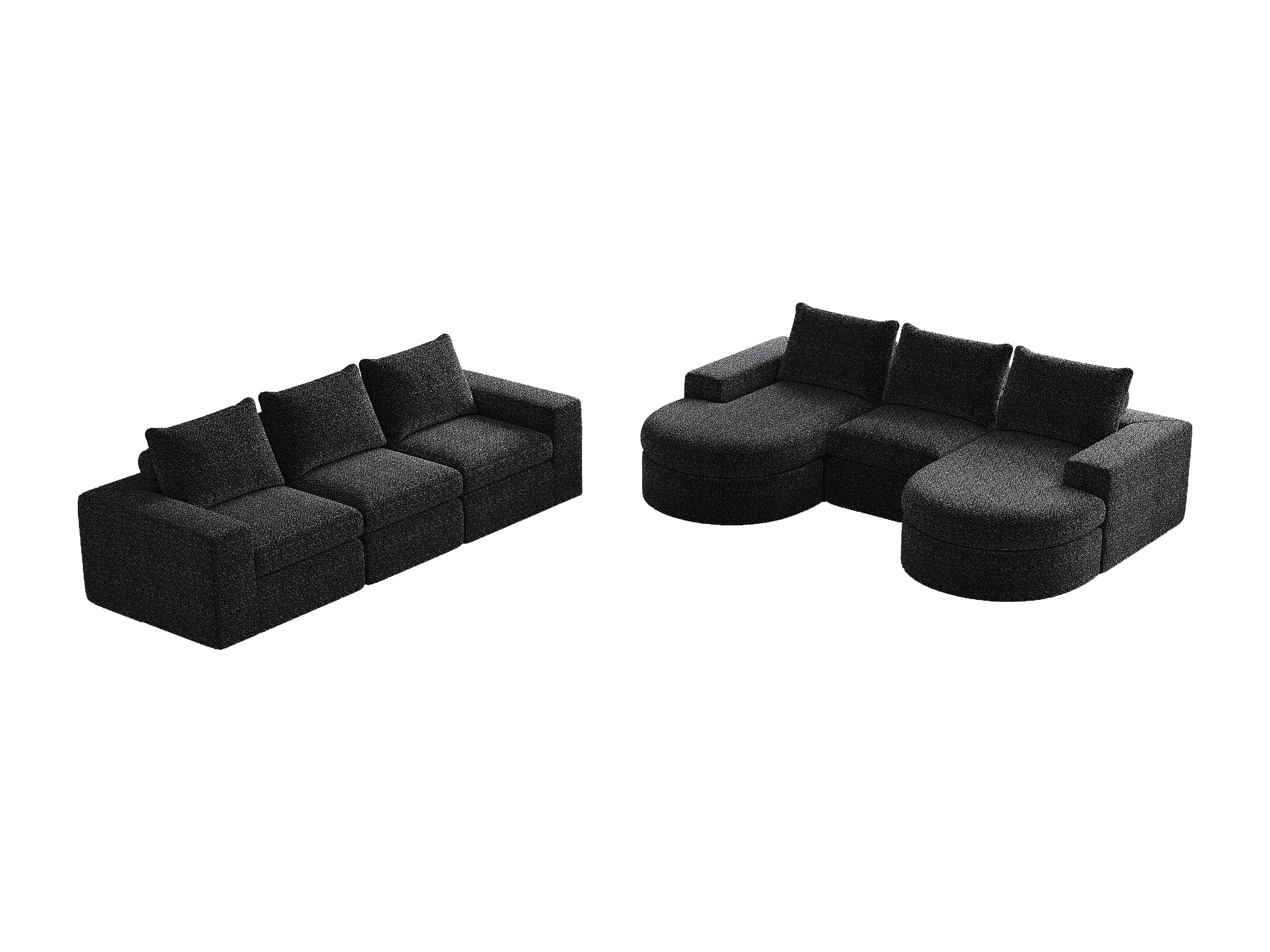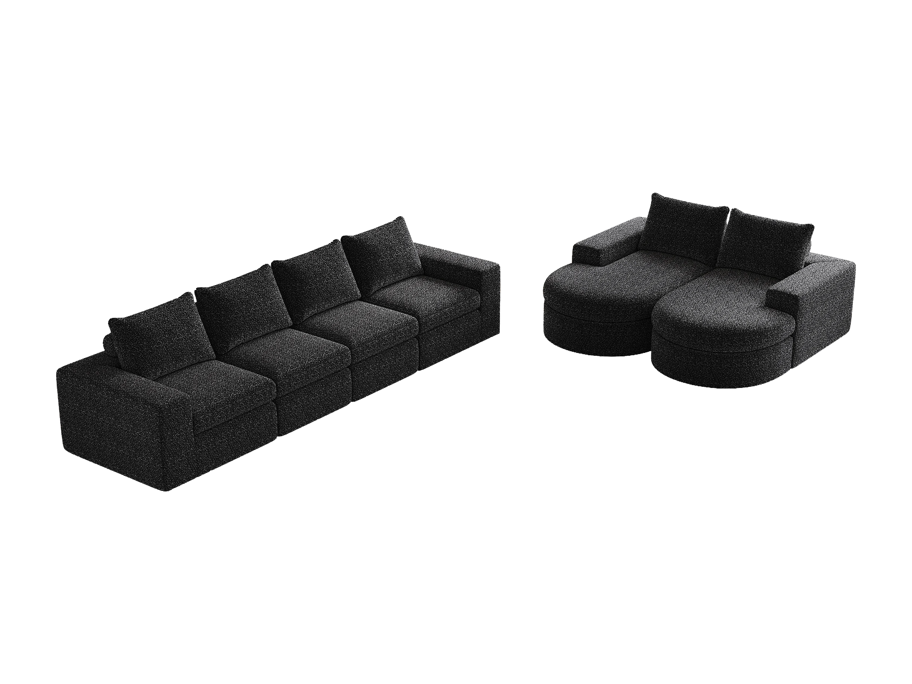 Canapé d'angle 6 places modulable avec méridienne - Tissu chenille noir - Sans montage