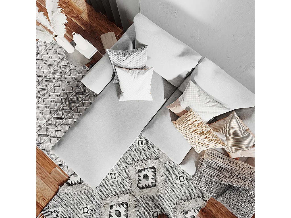 Canapé d'Angle OLIO L-Form avec Lit 138x210cm Coffre et Coussins Amovibles – Droite 248x174x86cm ARGENT FONCÉ
