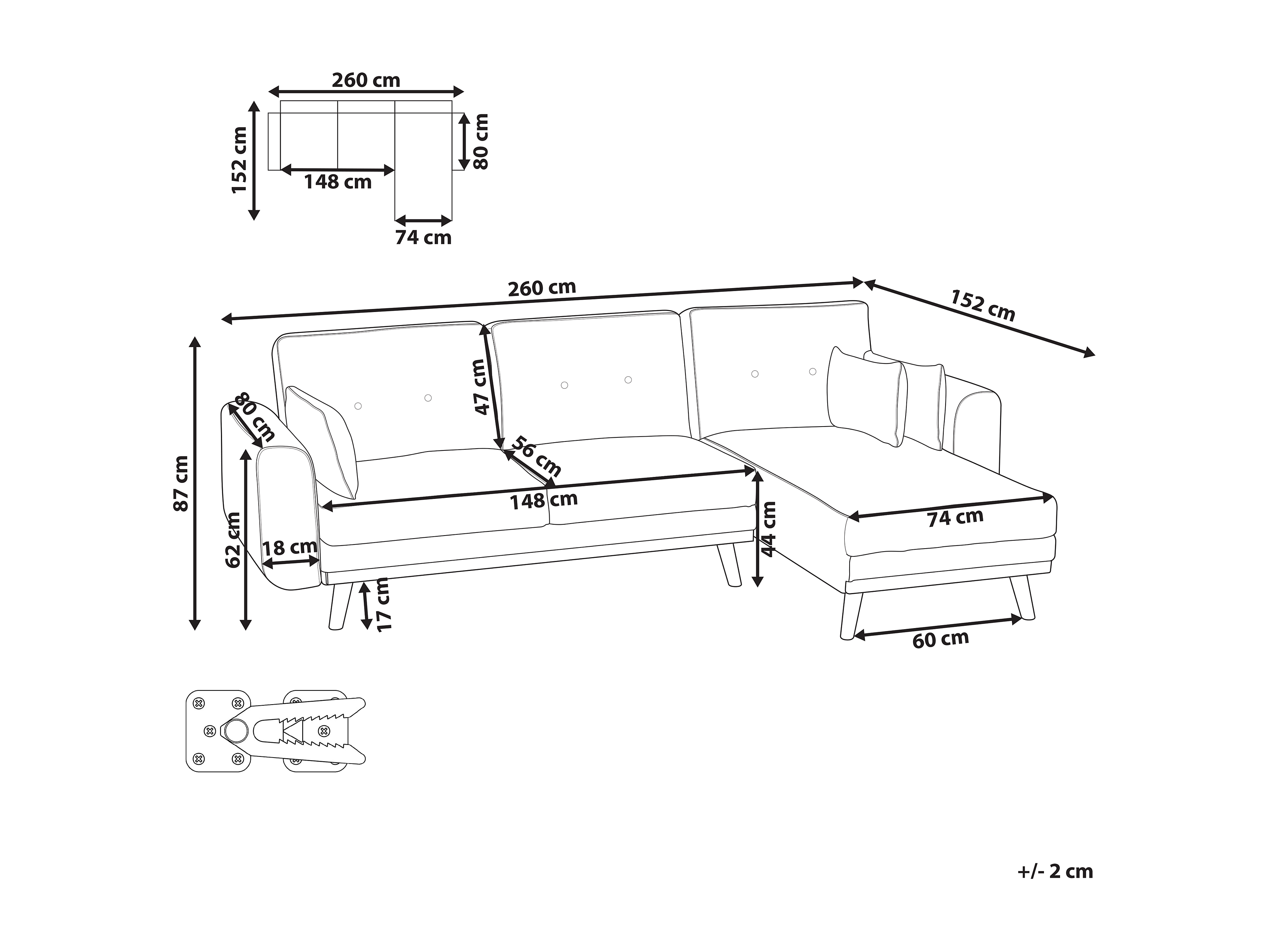 Canapé d'Angle à droite en Tissu Rembourré en Forme de L Convertible avec Coussins Marron Clair Kaarina