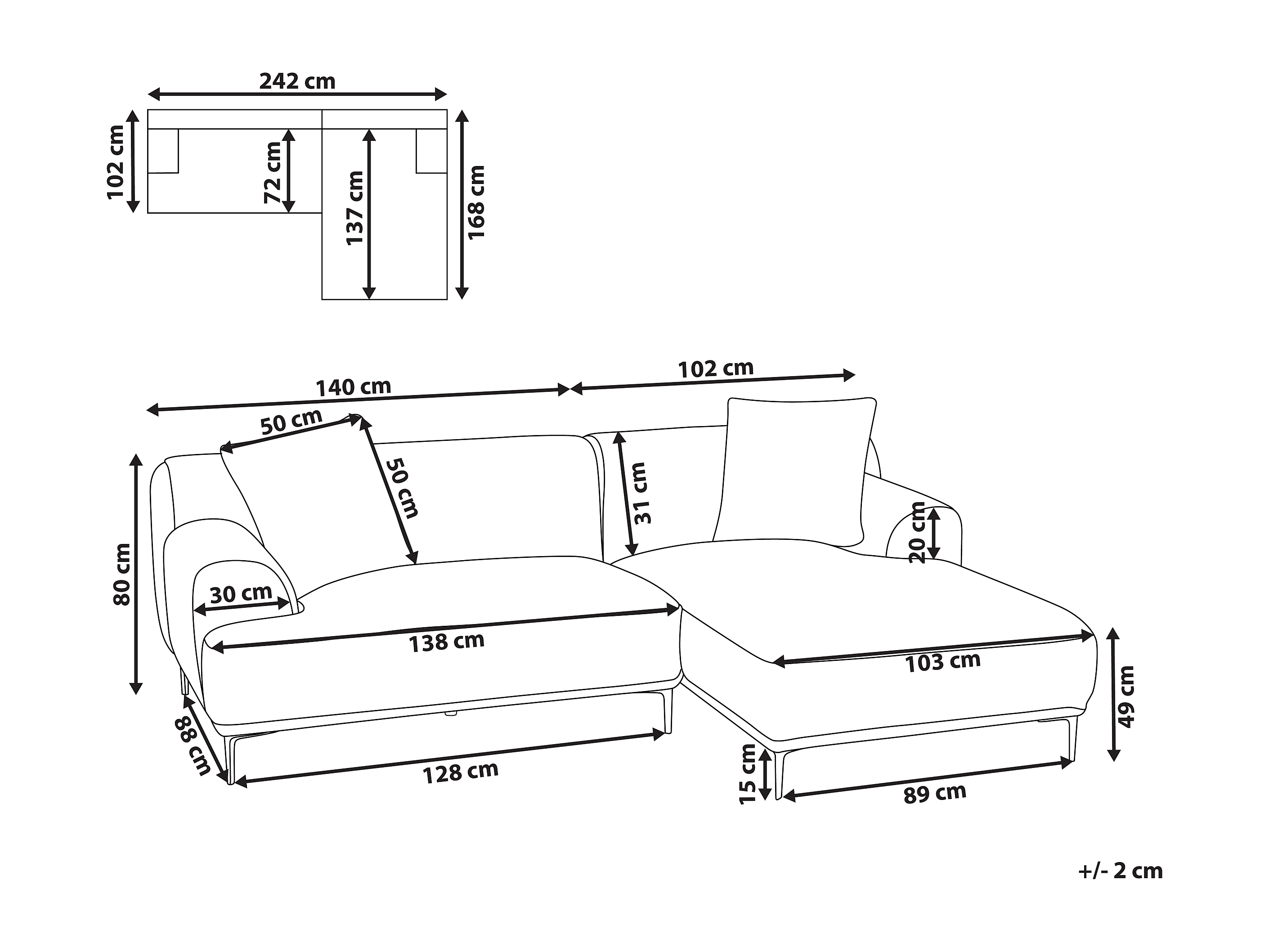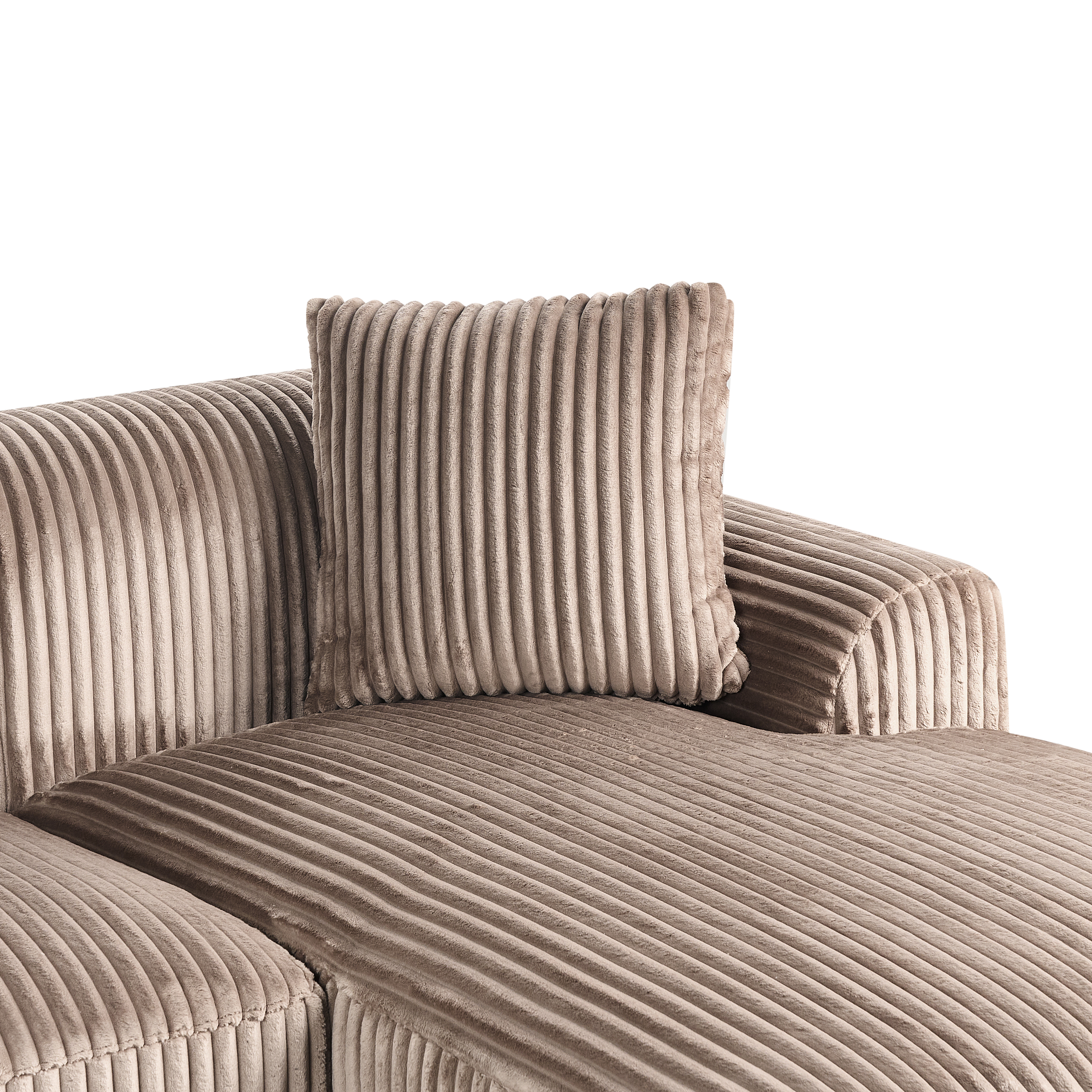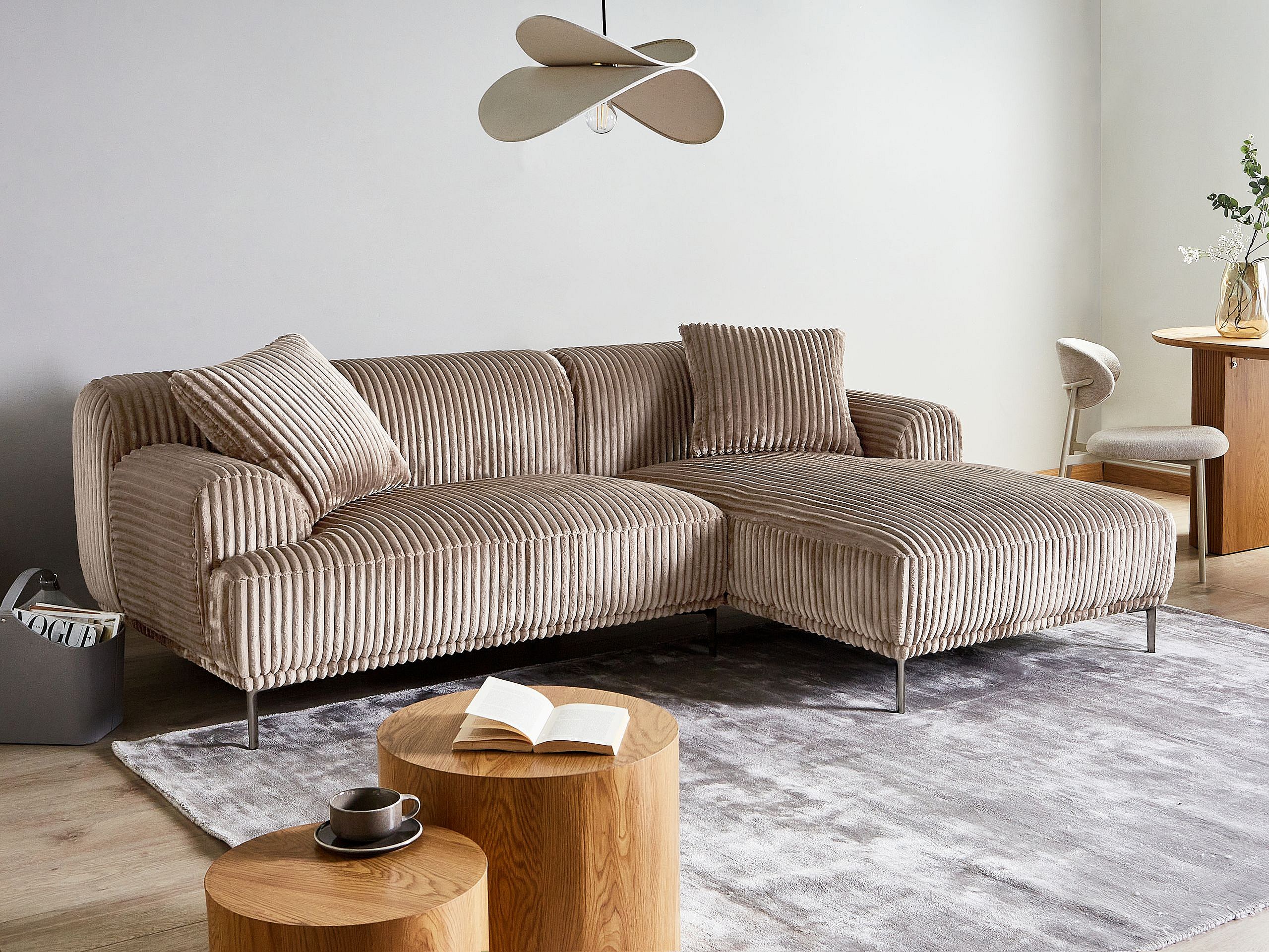 Canapé d'Angle à droite en Velours Côtelé 3 Places Marron Clair Stenum