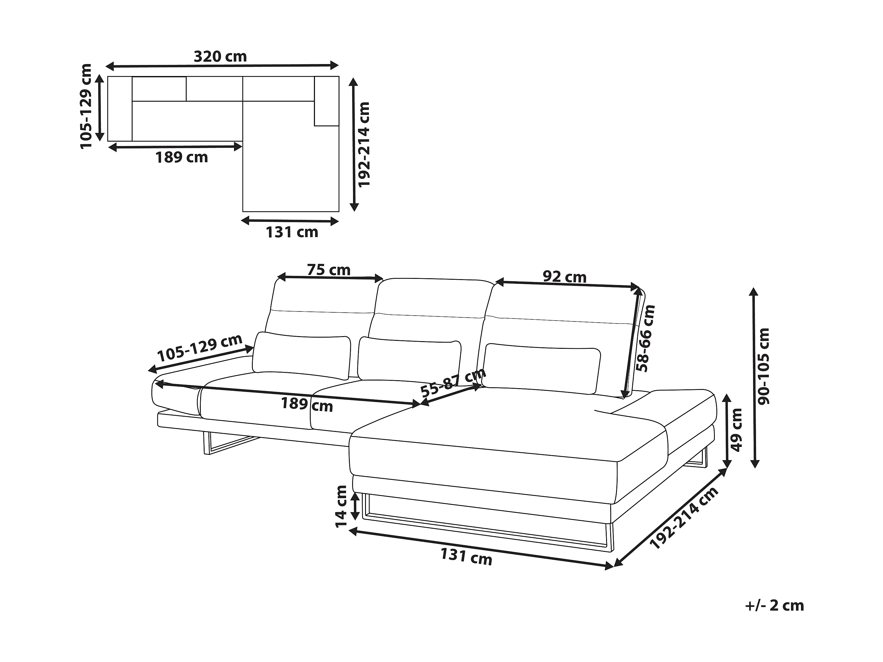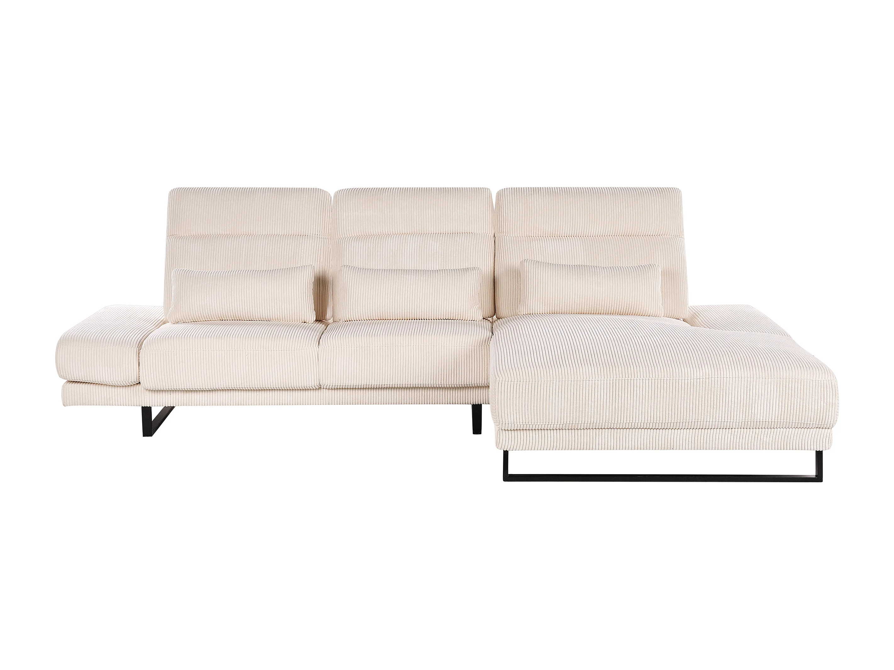Canapé d\'Angle à droite en Velours Côtelé Rembourré Pieds en Acier Accoudoirs et Dossier Réglables Meuble de Salon Beige Ikast