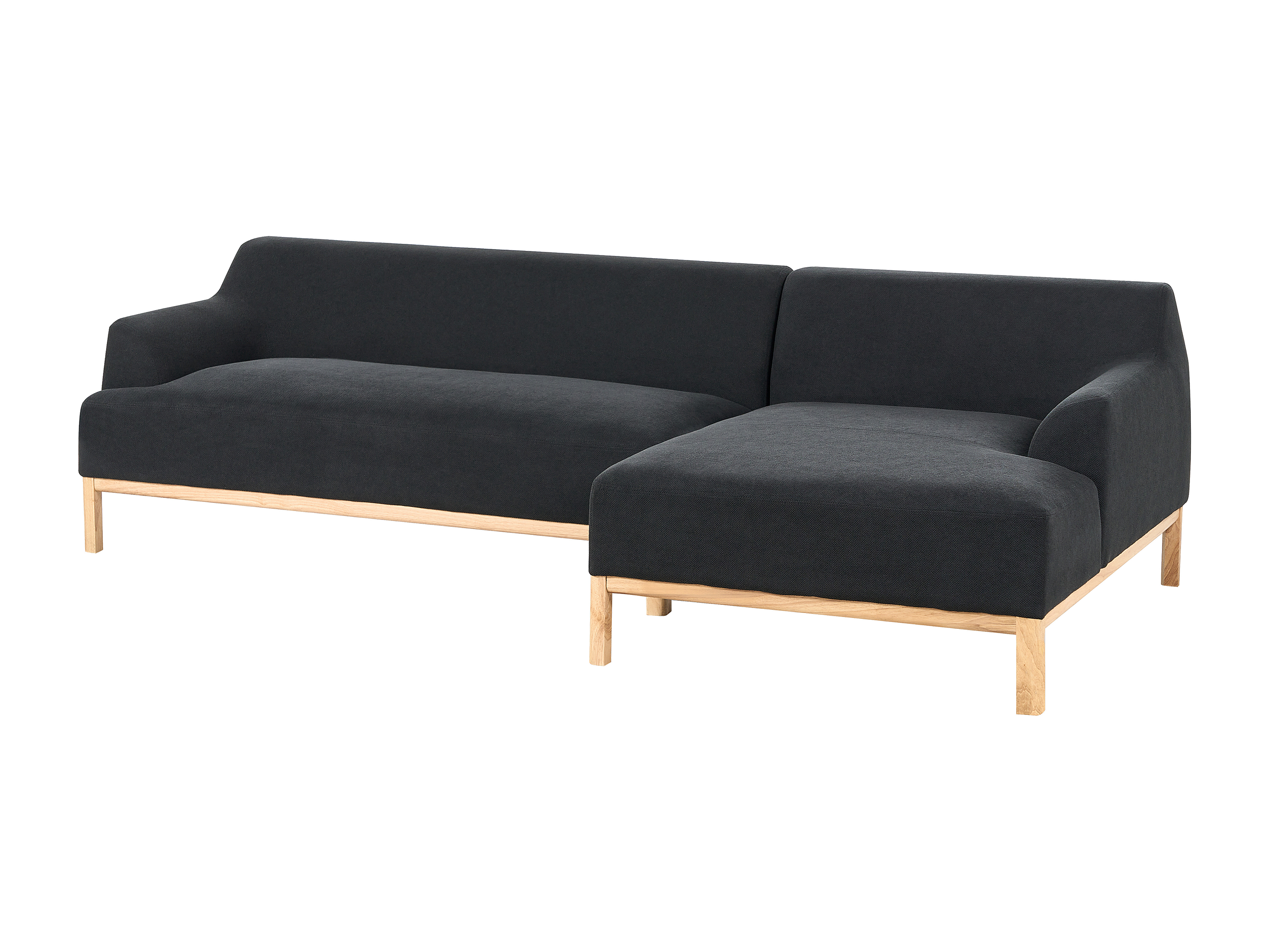 Canapé d'Angle à droite Pieds en Bois Meuble Coin de Salon en Tissu Polyester Noir Sosjo