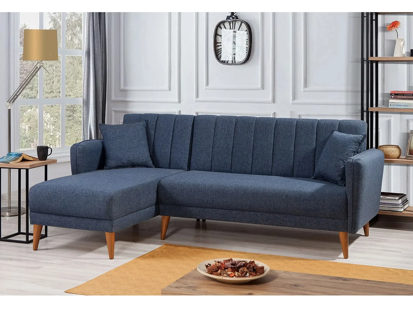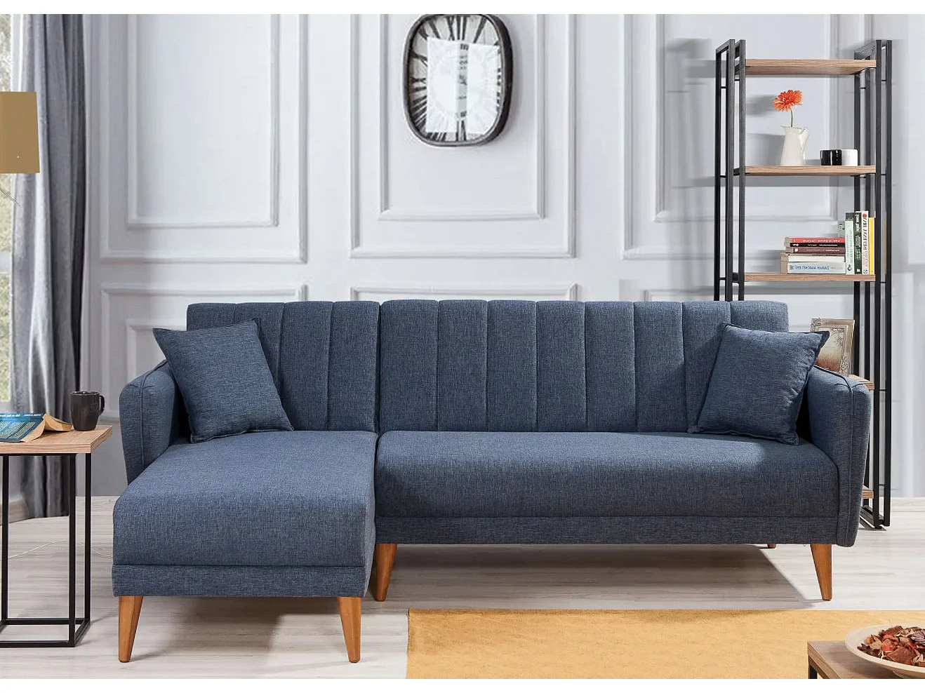 Canapé d'angle à gauche convertible lin bleu foncé Bompart 225cm