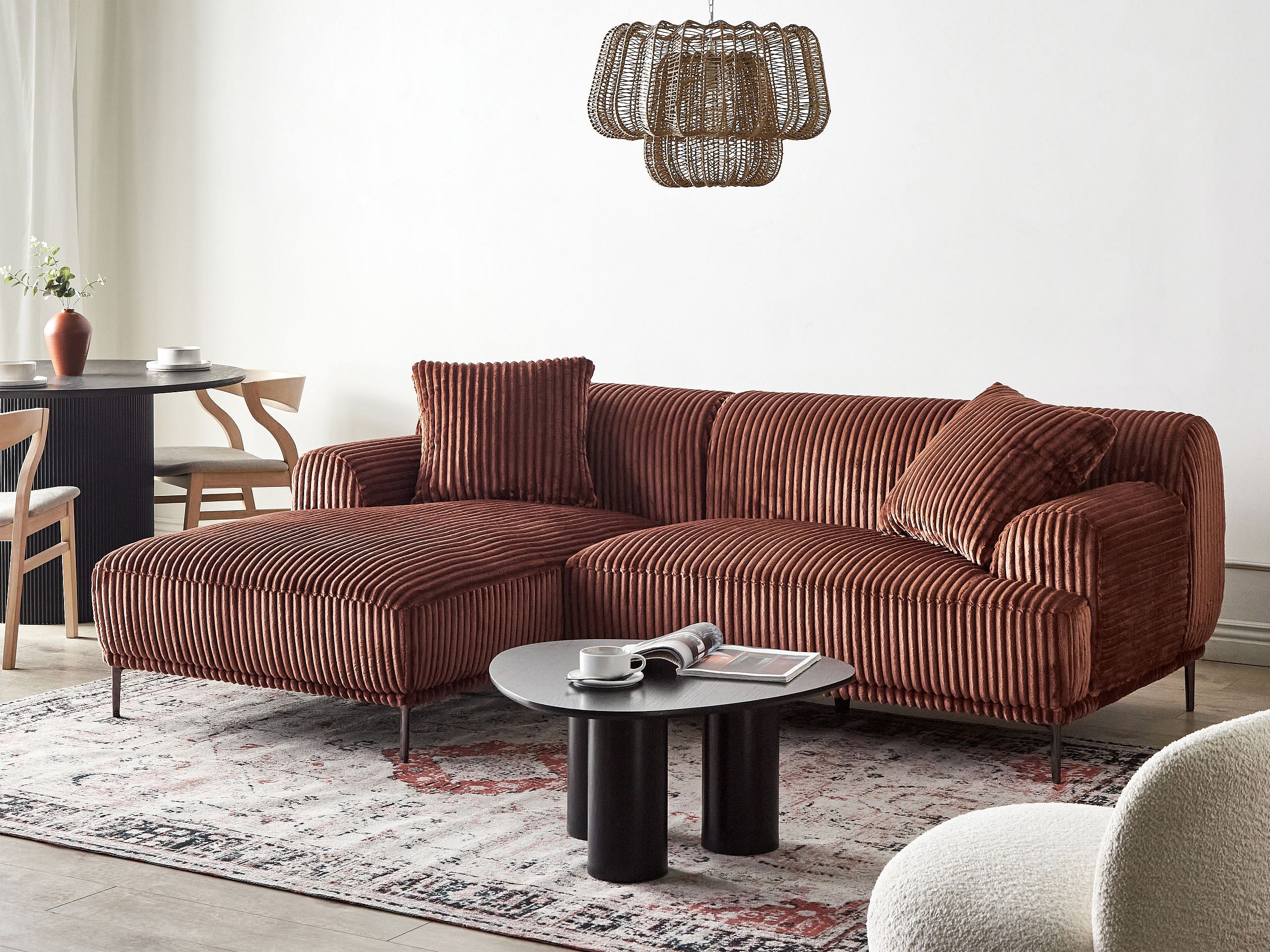 Canapé d'Angle à droite Minimaliste en Velours Côtelé avec Coussins Supplémentaires Marron Clair Lofoten
