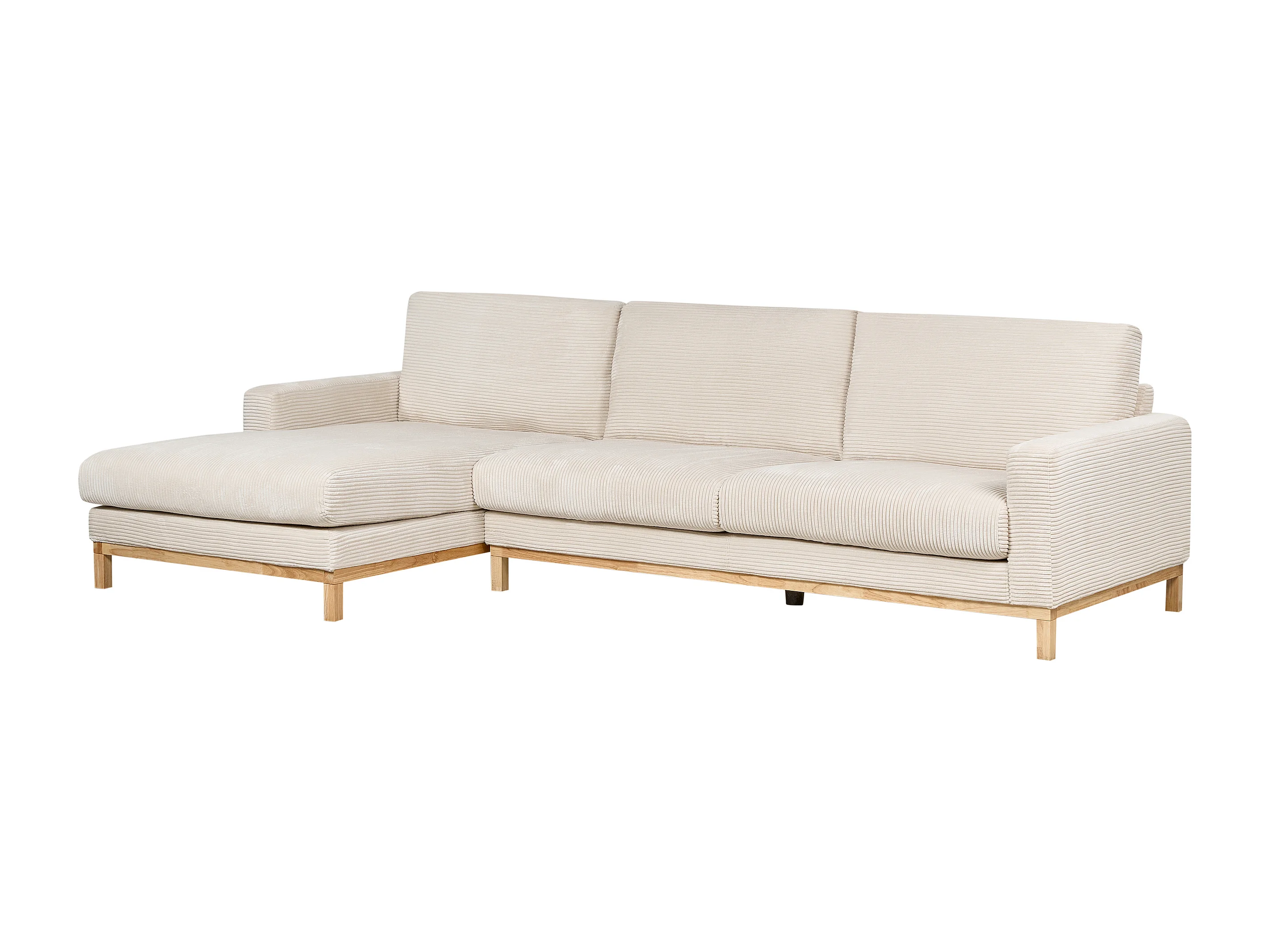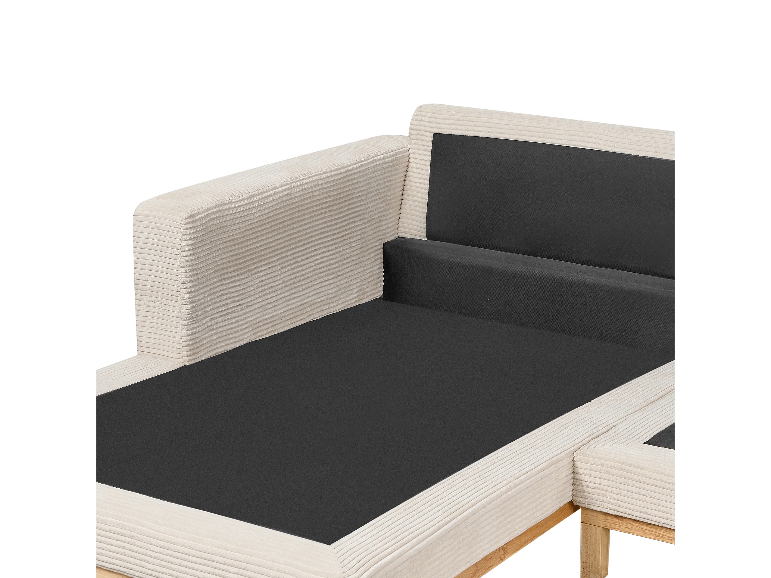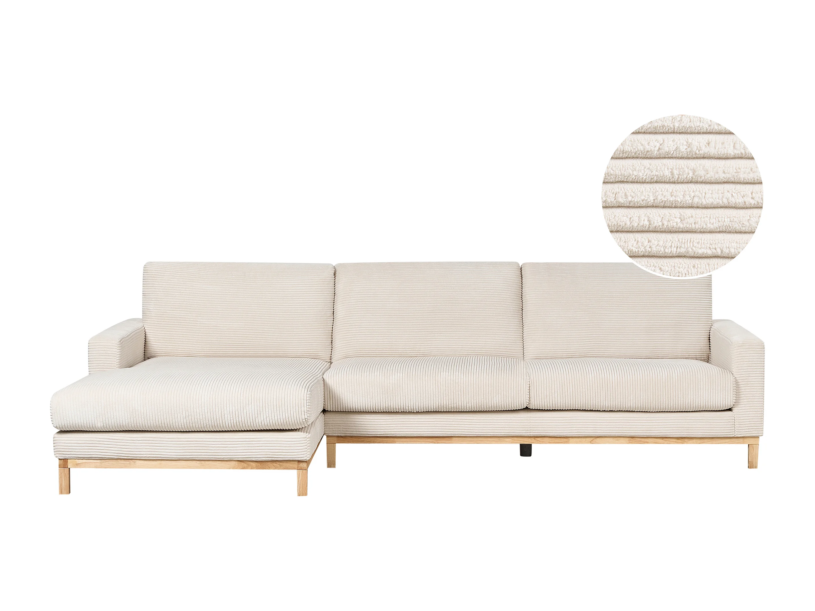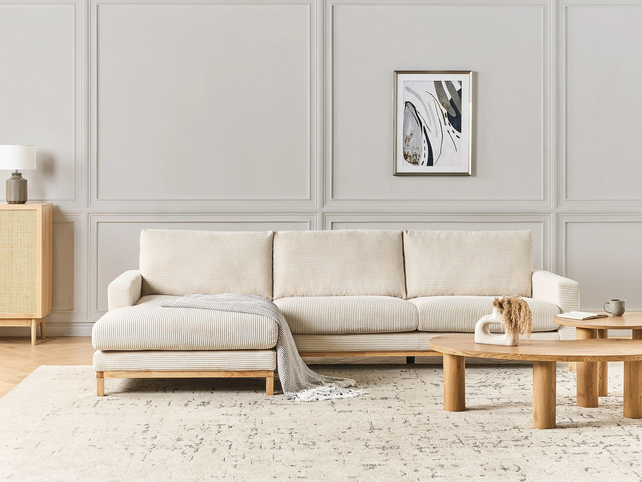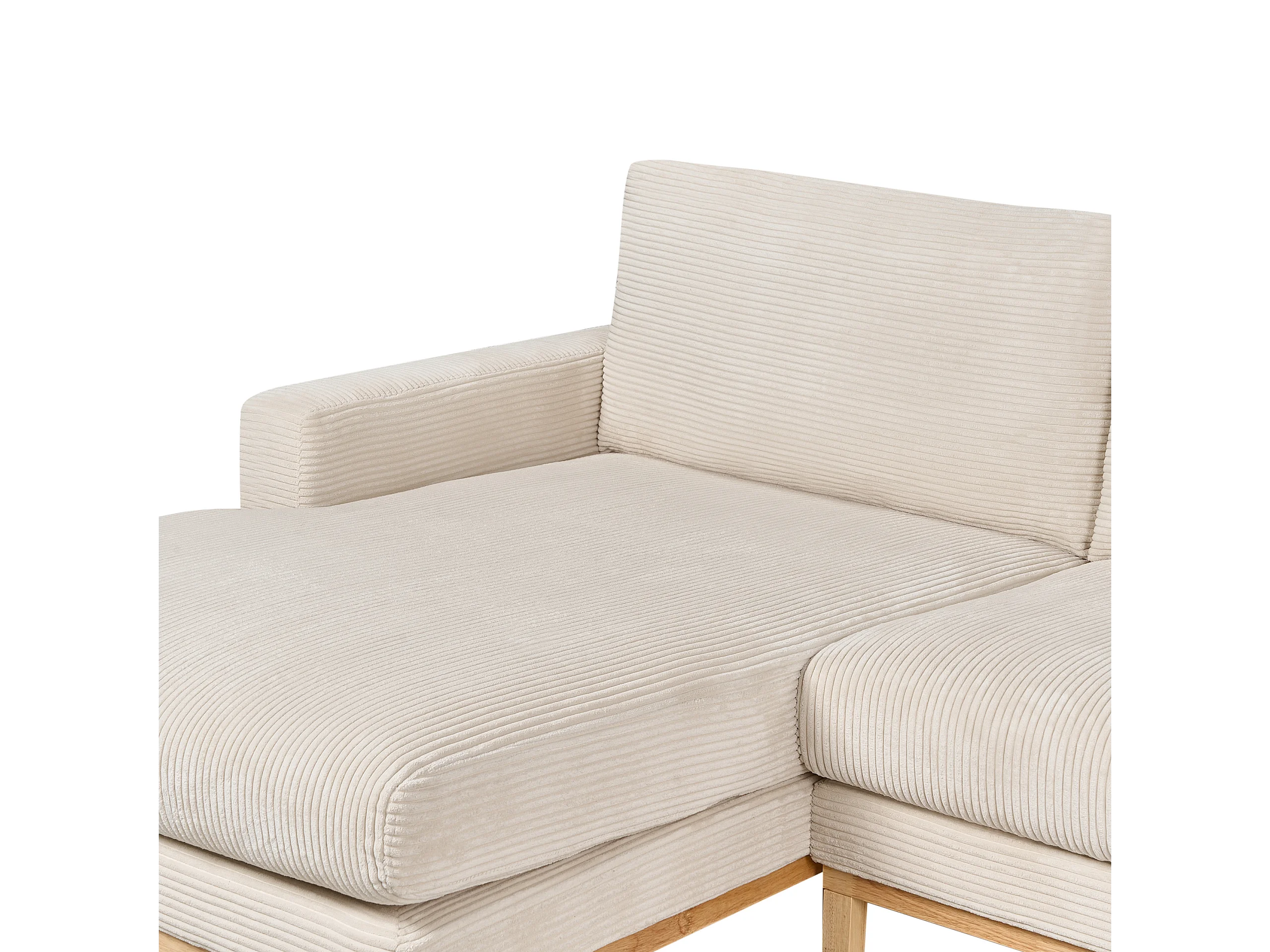 Canapé d'Angle à Droite en Velours Côtelé Pieds en Bois Elégant Beige Clair Siggard II