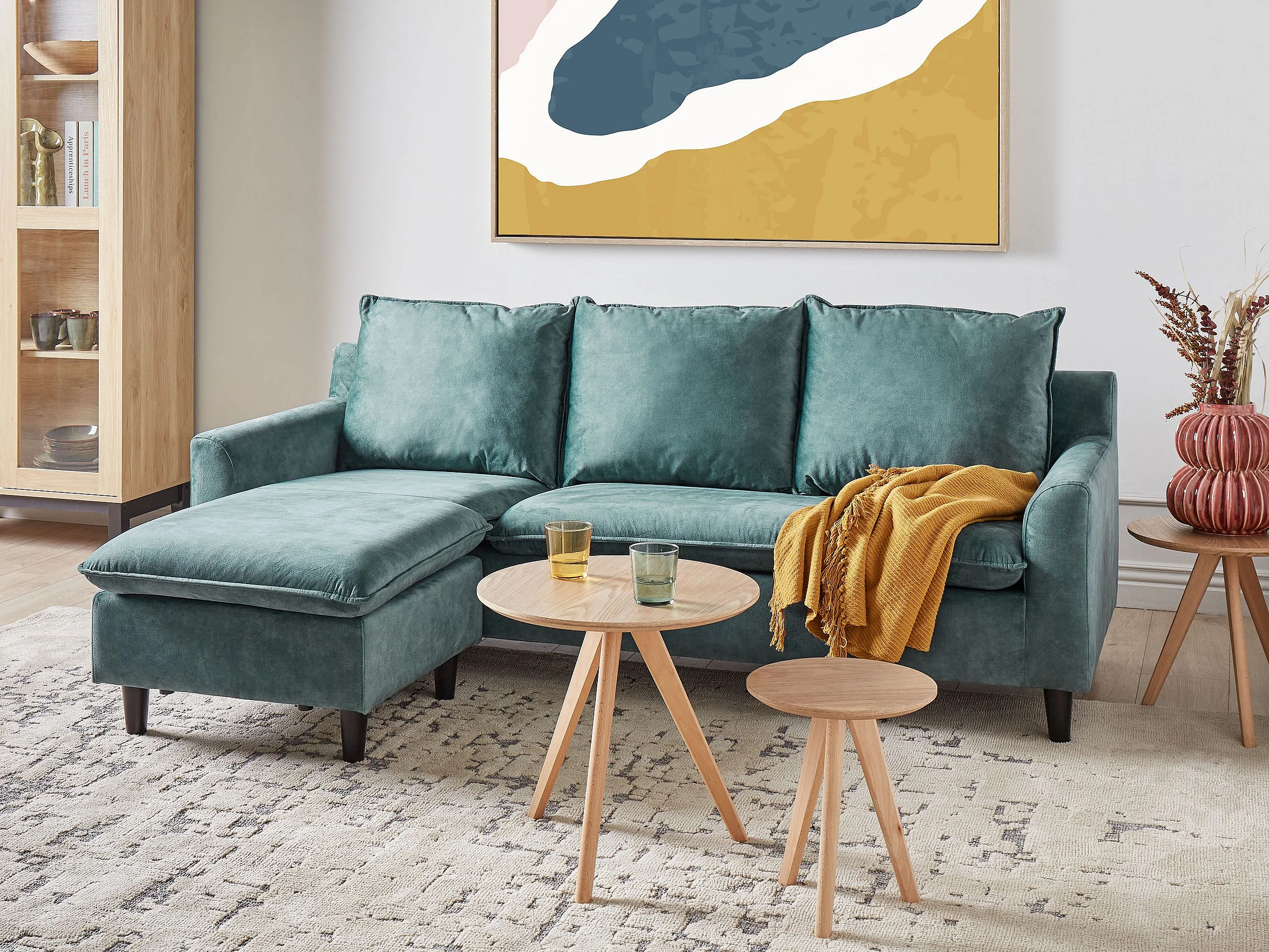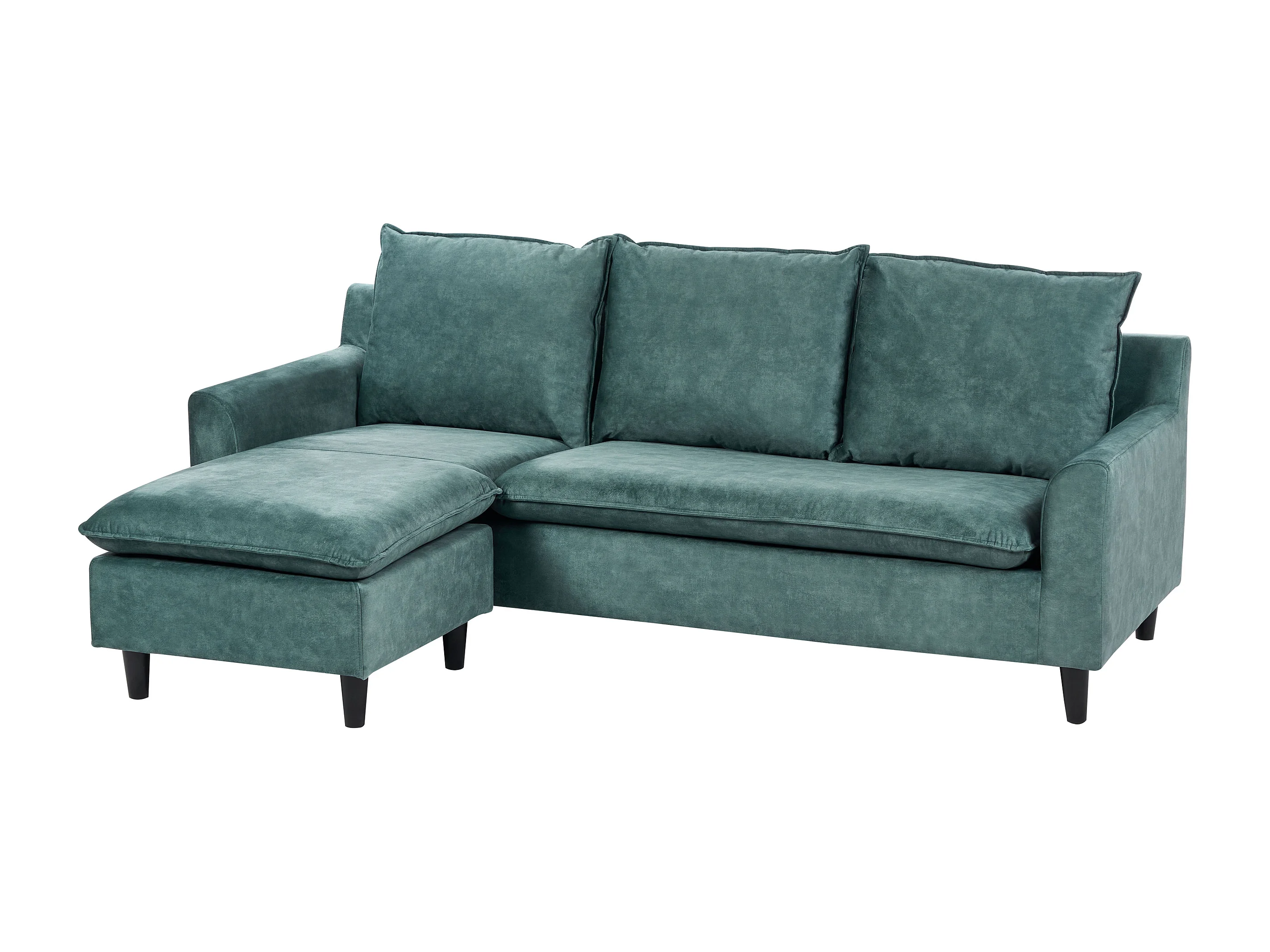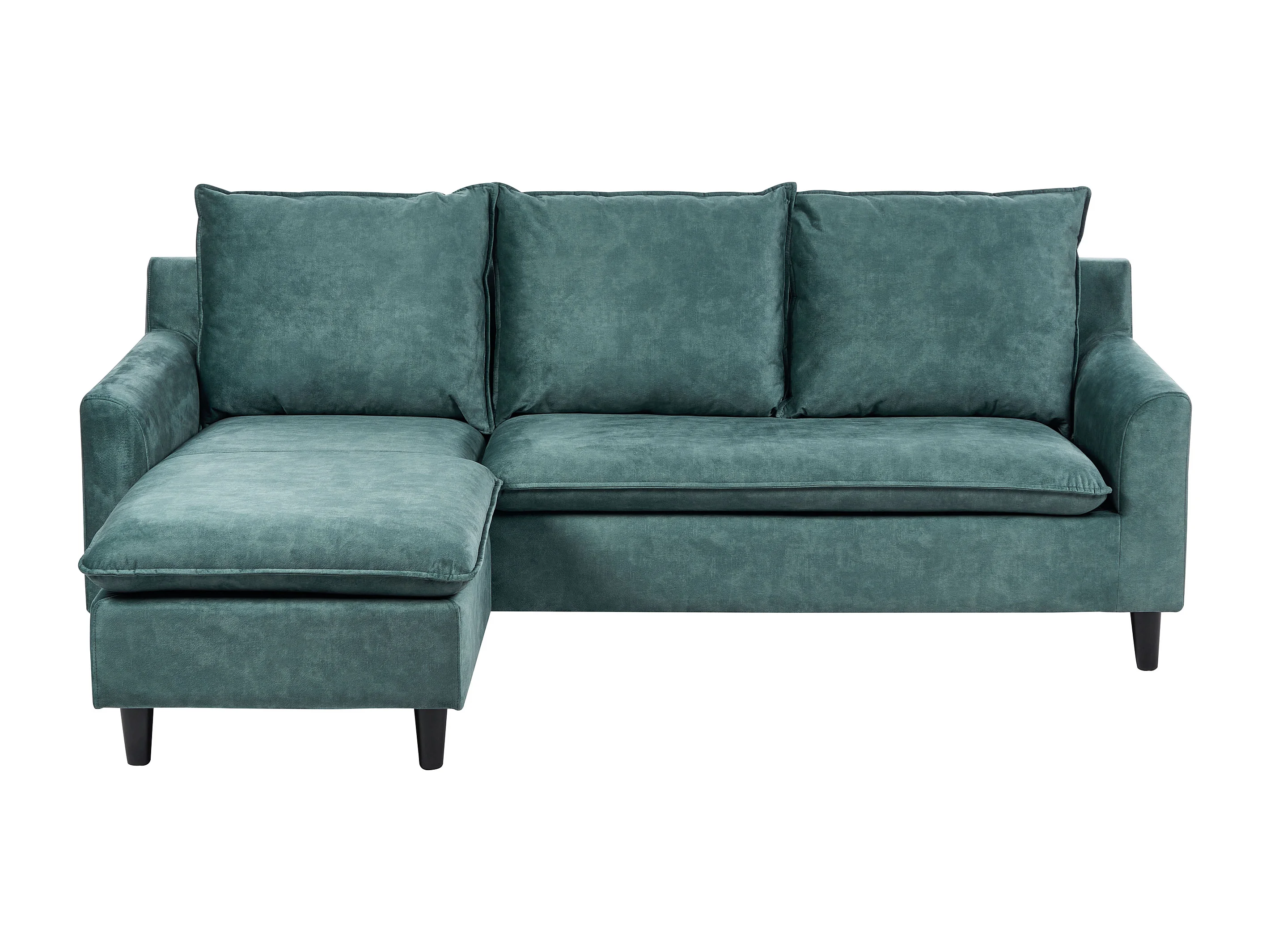 Canapé d'Angle à Droite Moderne en Velours Pieds en Bois Massif Bleu Sarcelle Elvenes
