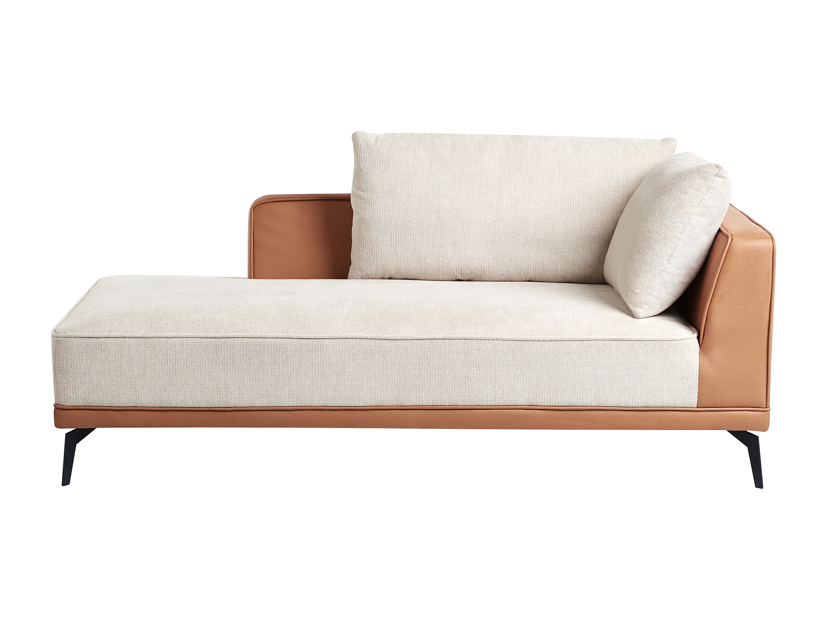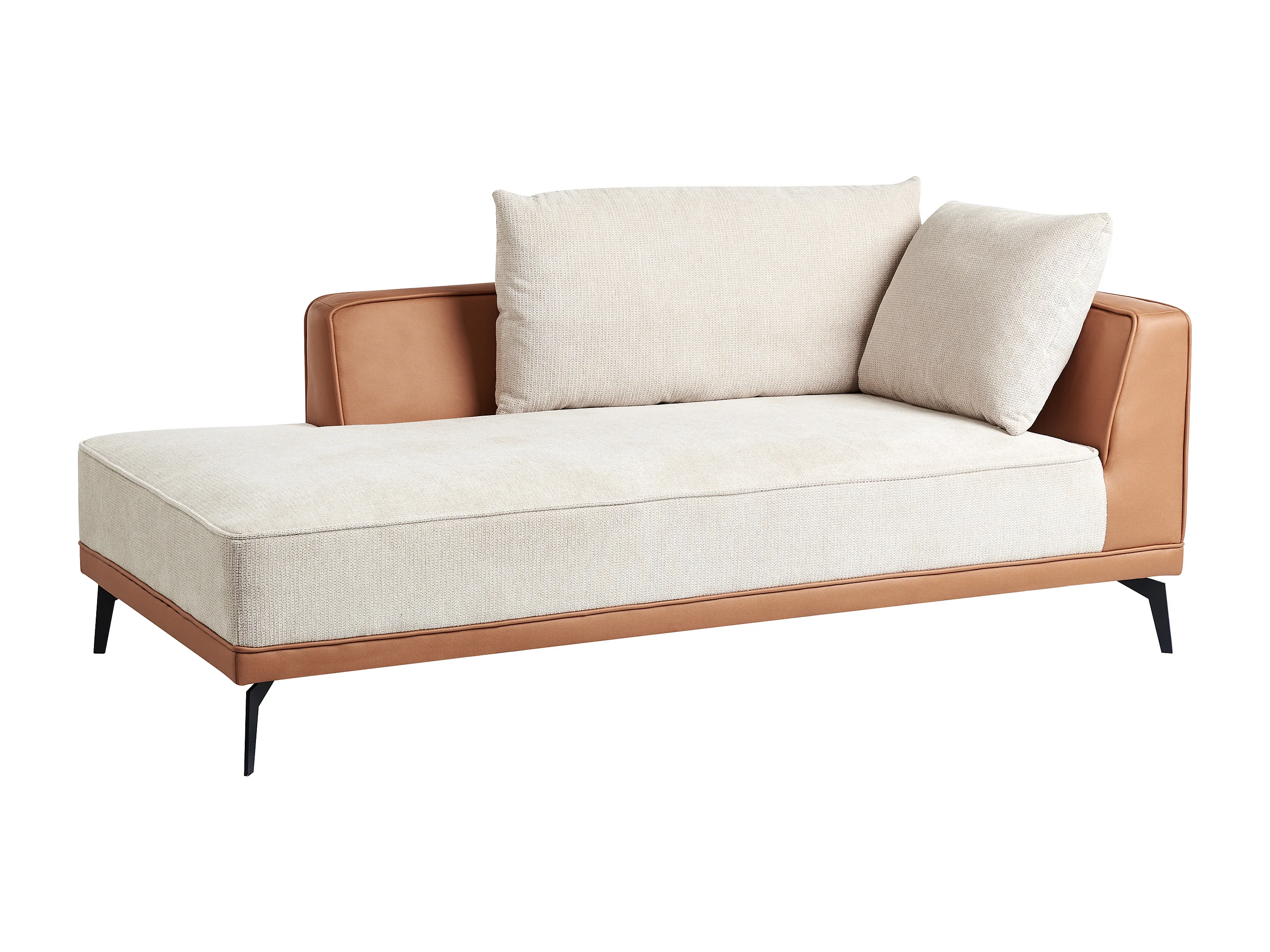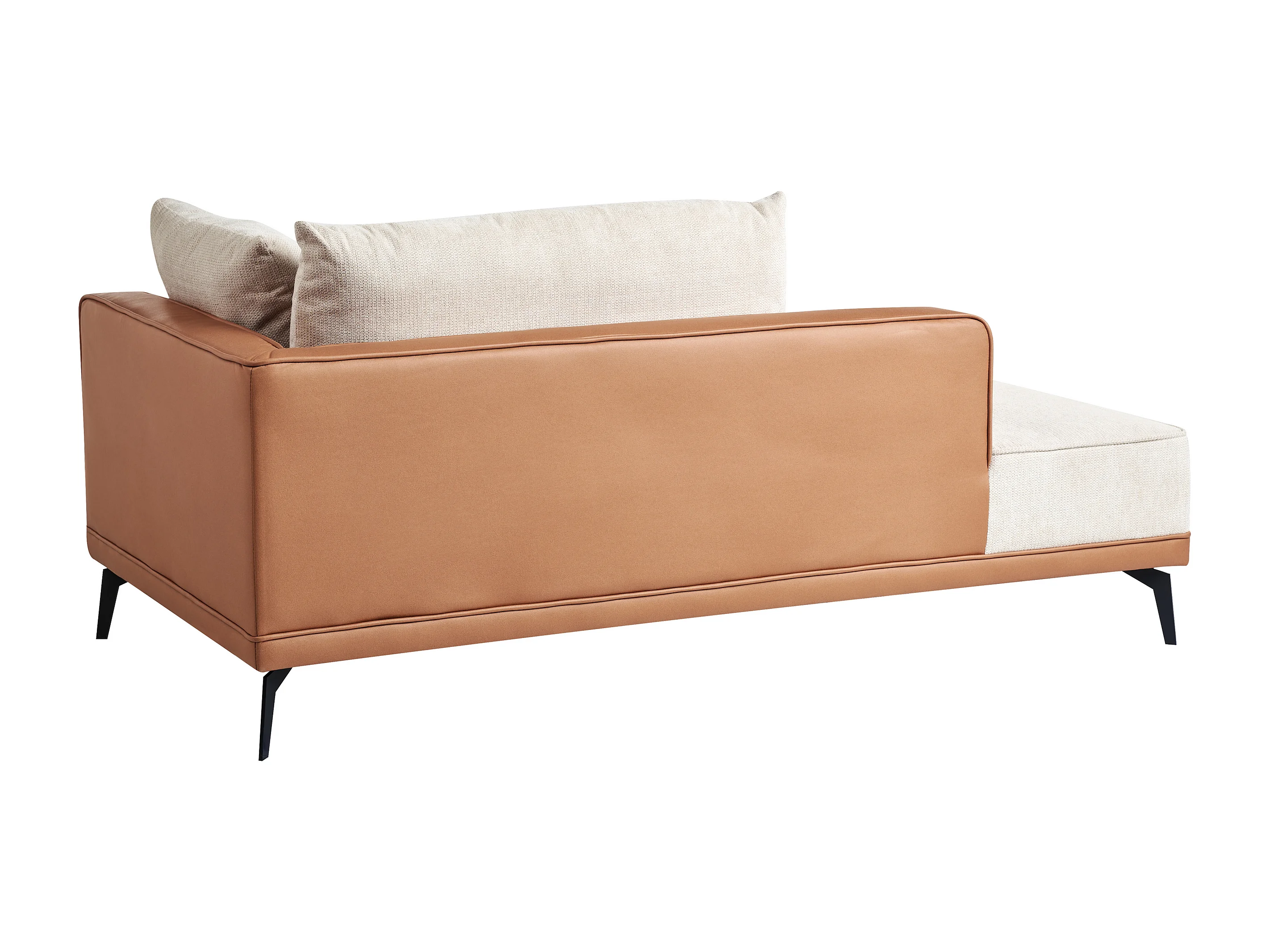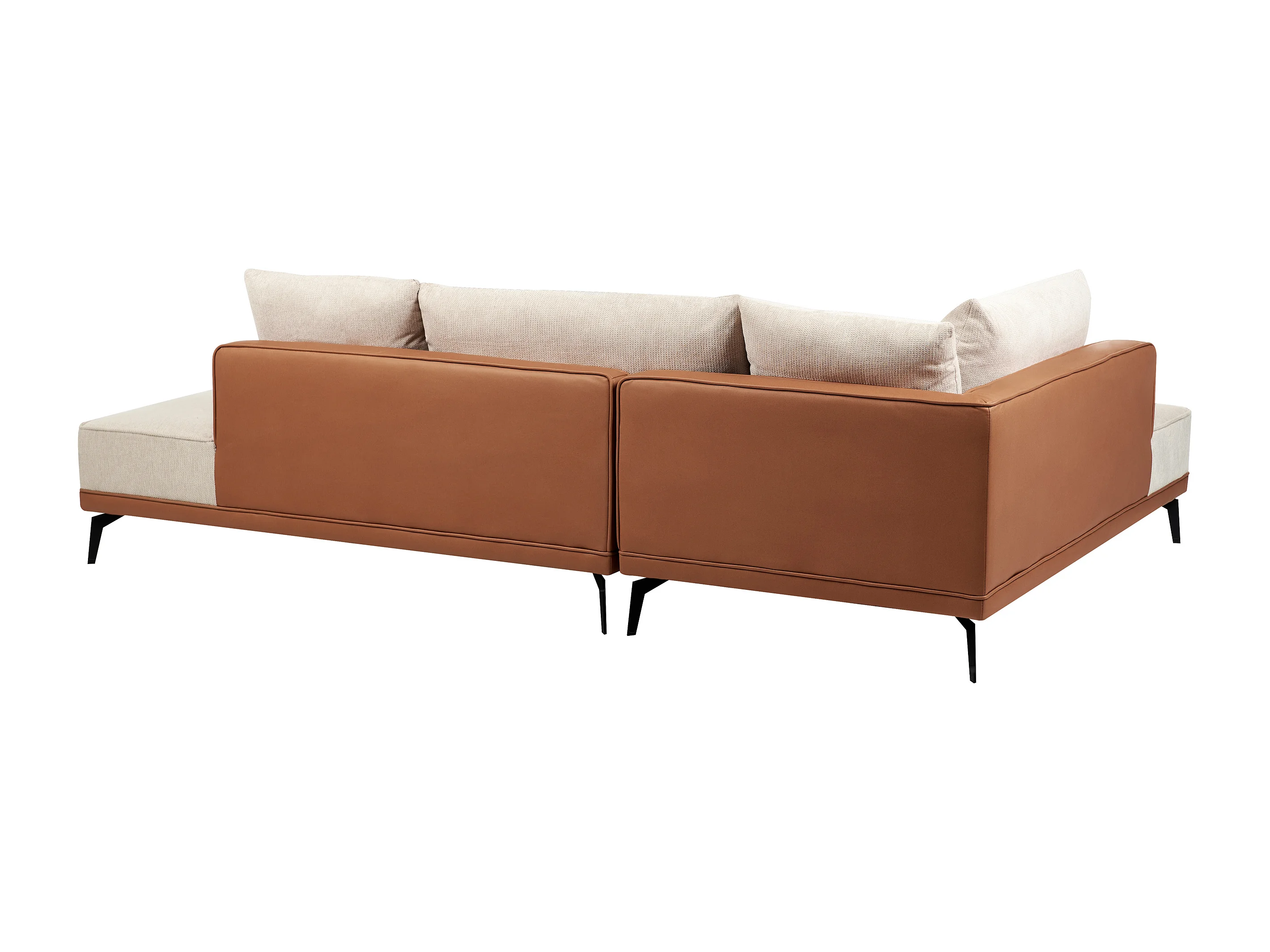 Canapé d'Angle à Droite en Tissu Polyester et Similicuir Pieds en Acier avec Coussins Salon Beige et Marron Myken
