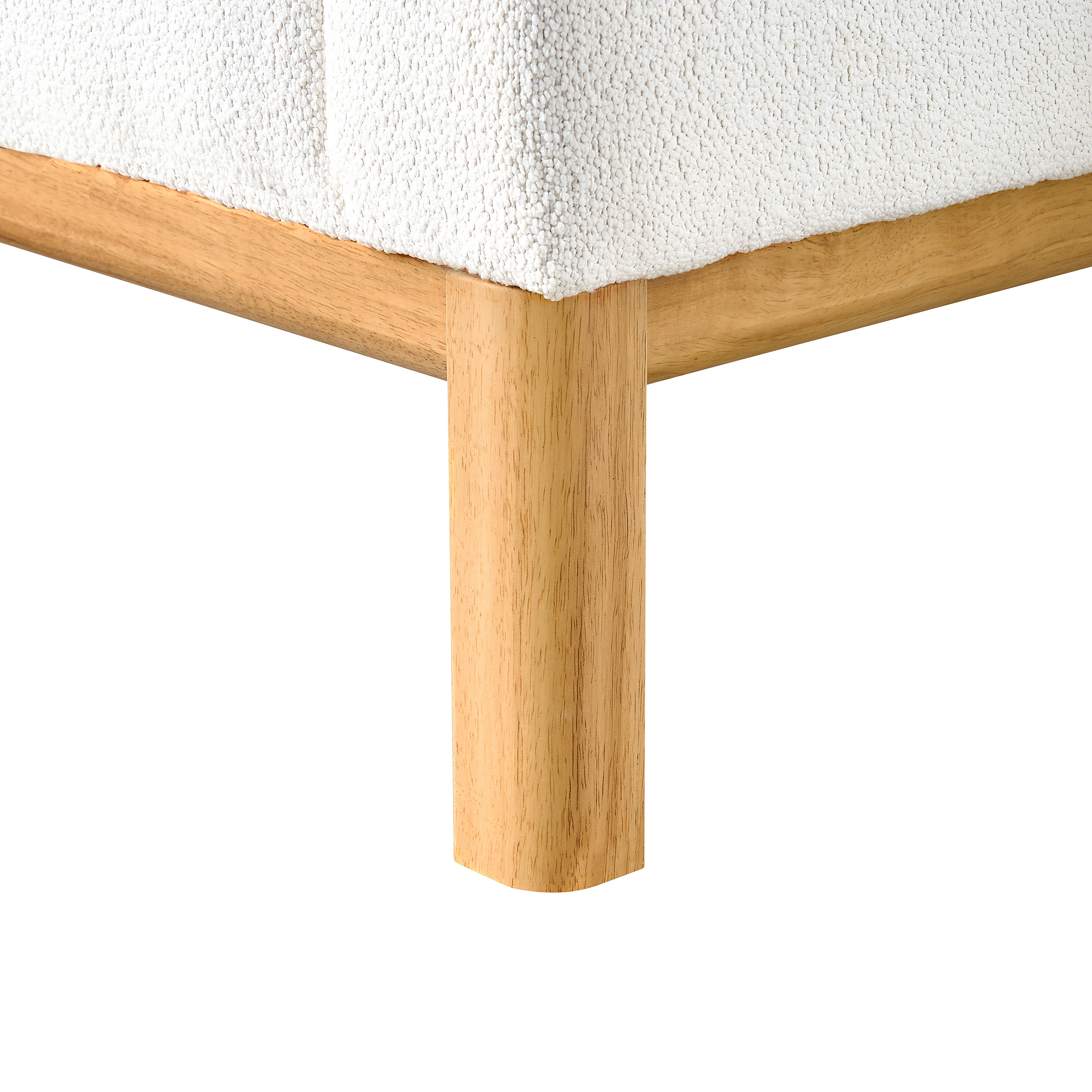 Fauteuil en tissu bouclette avec coussin épais - pieds en bois massif - blanc