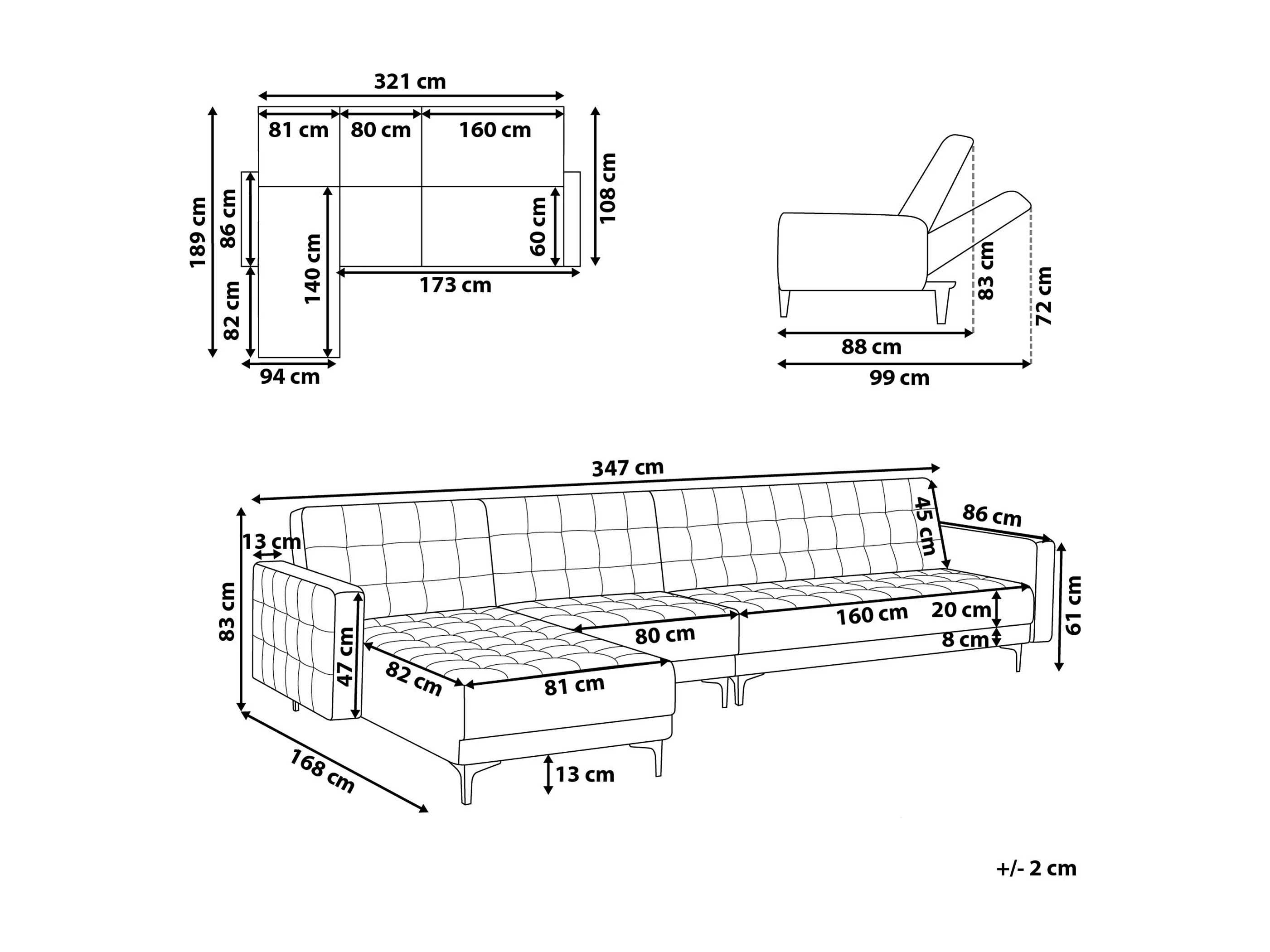 Canapé-lit d'angle modulable 5 places ABERDEEN Velours Beige sable Côté droit