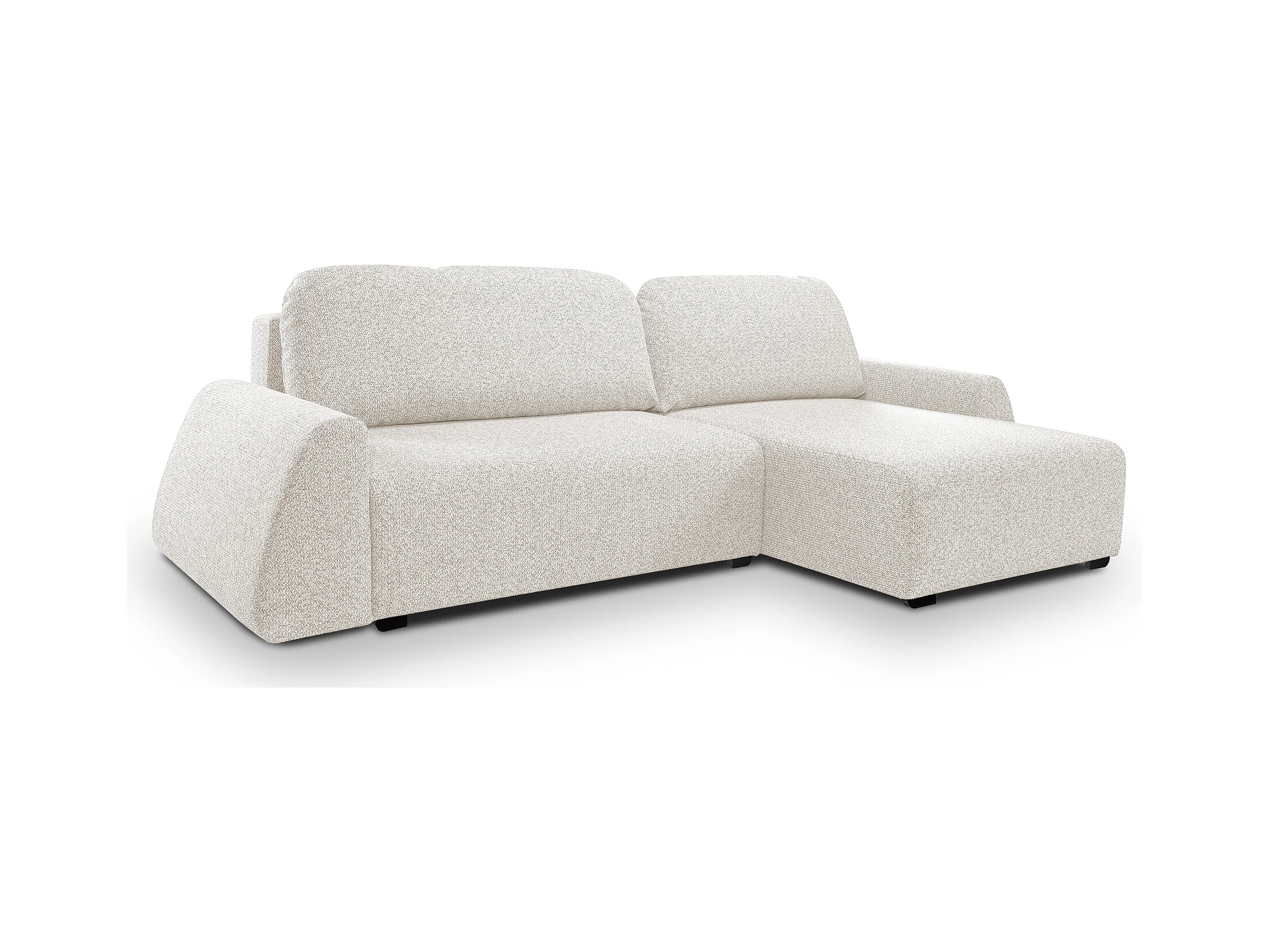 Canapé d'angle ALMI 160x275 cm, couchage, coffre, ressorts, assise confortable, côté droit, blanc