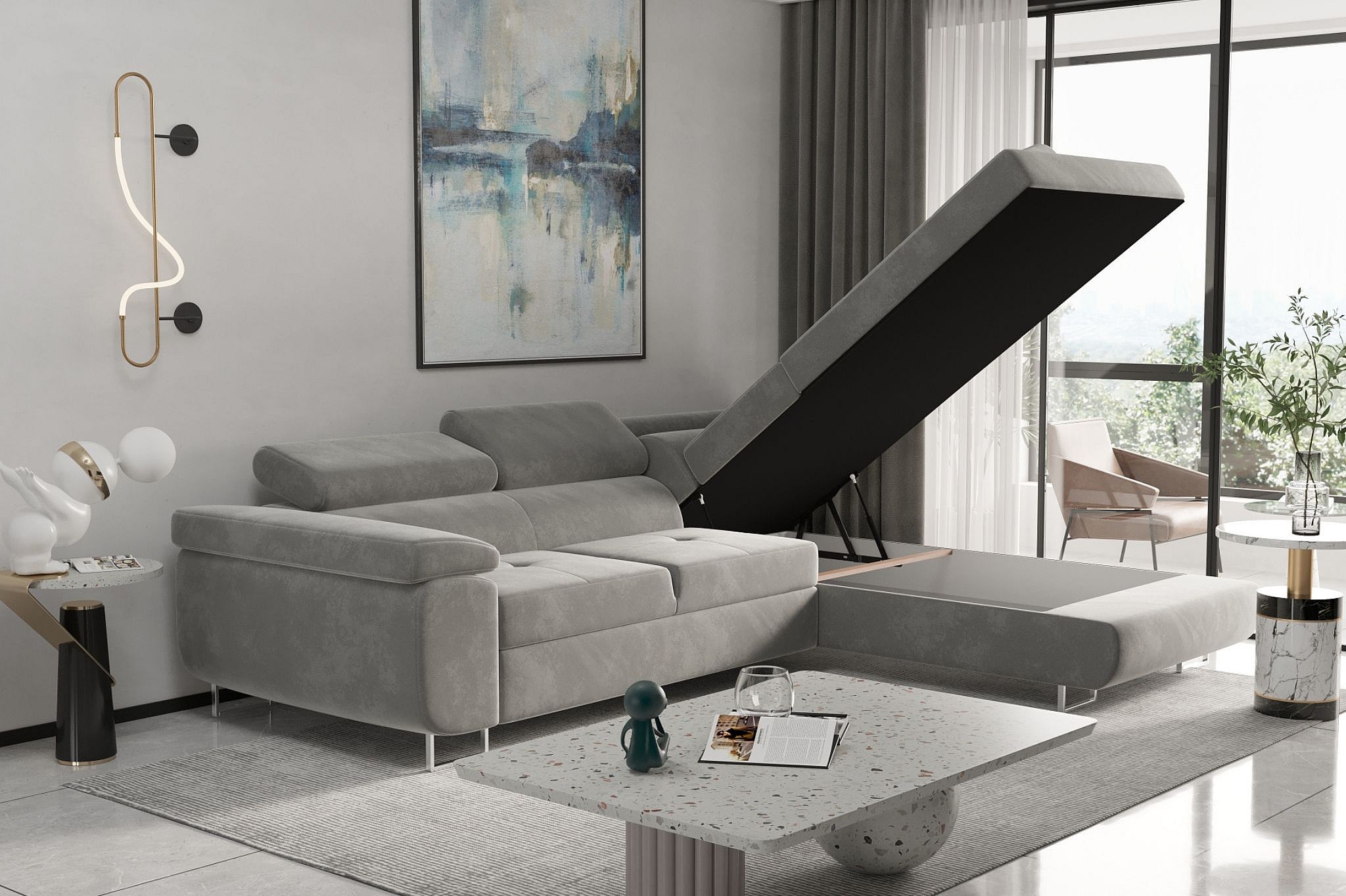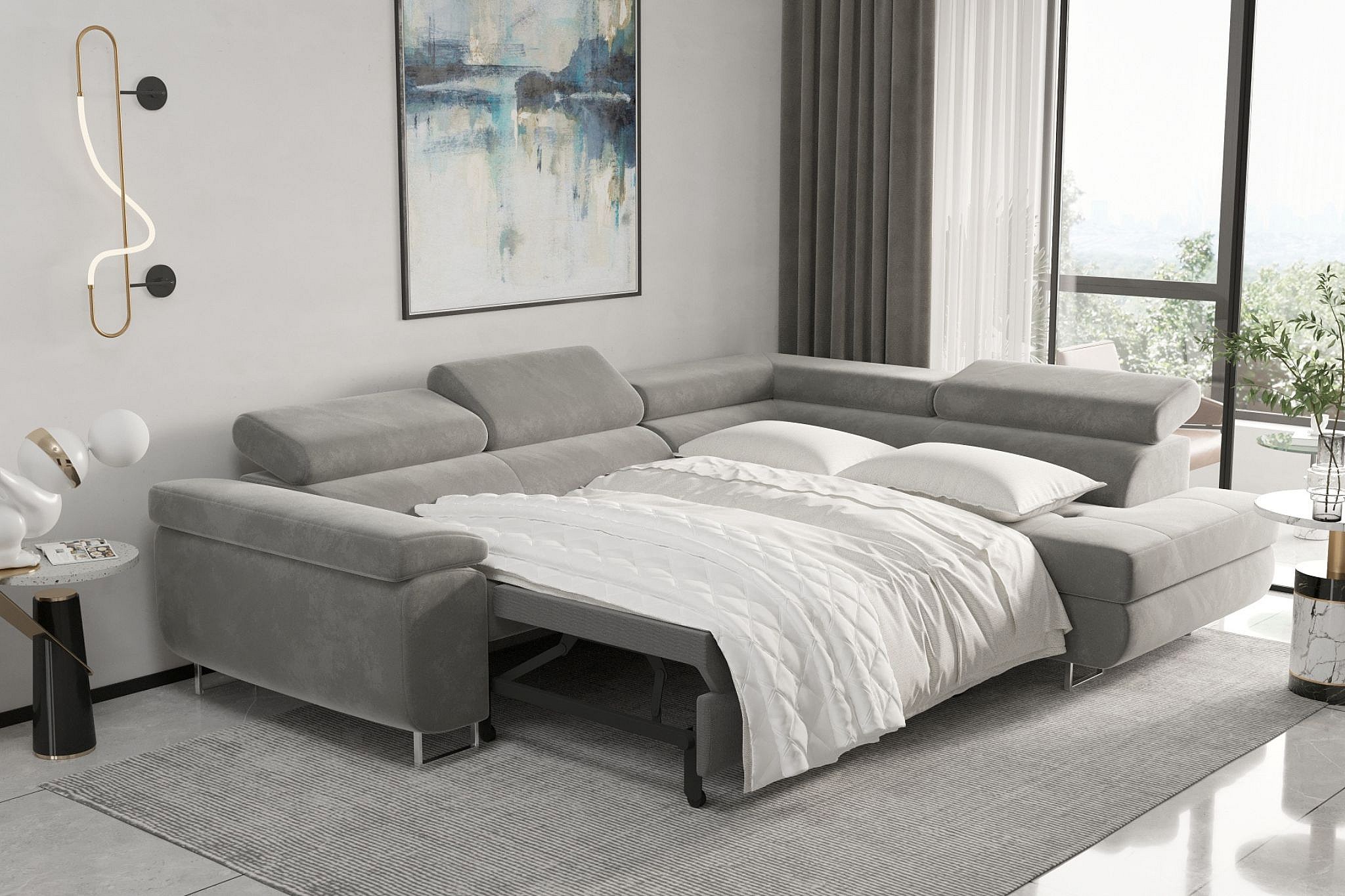 Canapé d'angle ATOM avec fonction couchage, tissu Monolith, anthracite, droit