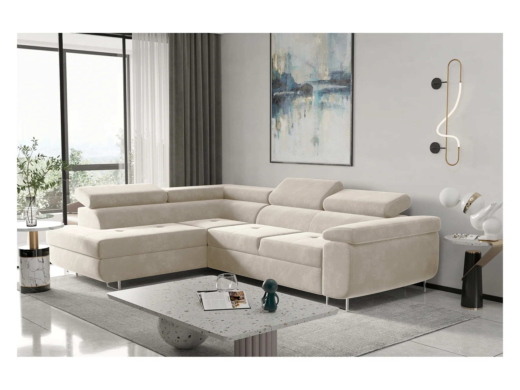 Canapé d'angle ATOMIC avec fonction couchage, tissu Poso, beige, gauche