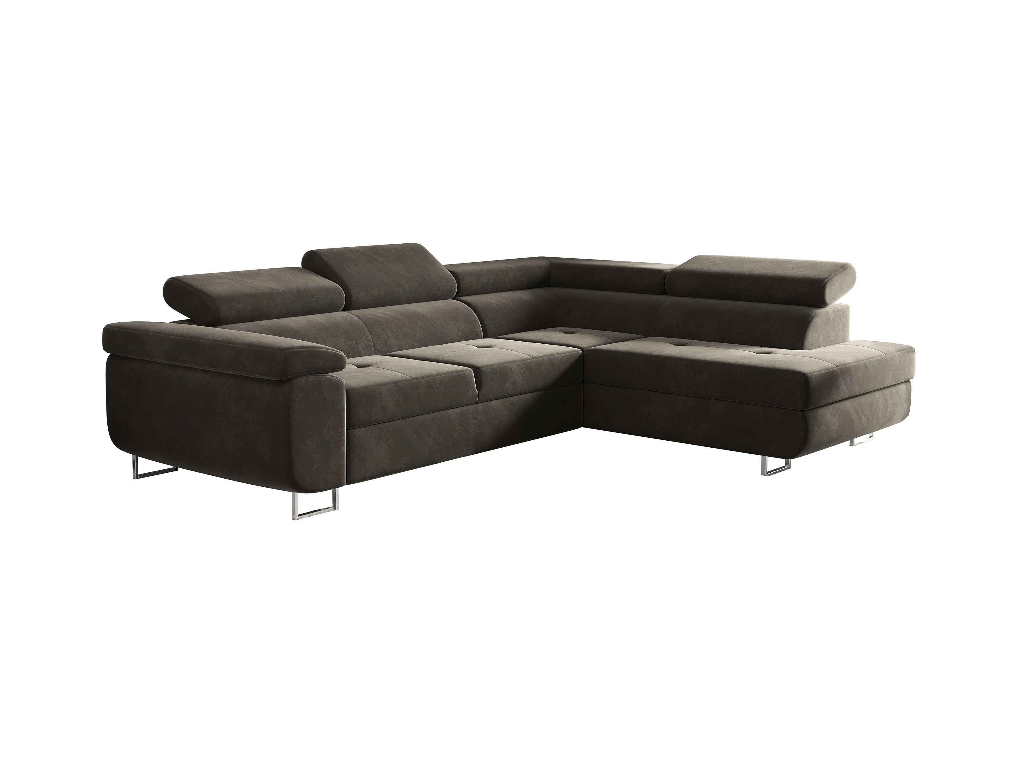 Canapé d'angle ATOM avec fonction couchage, tissu Monolith, marron, droit