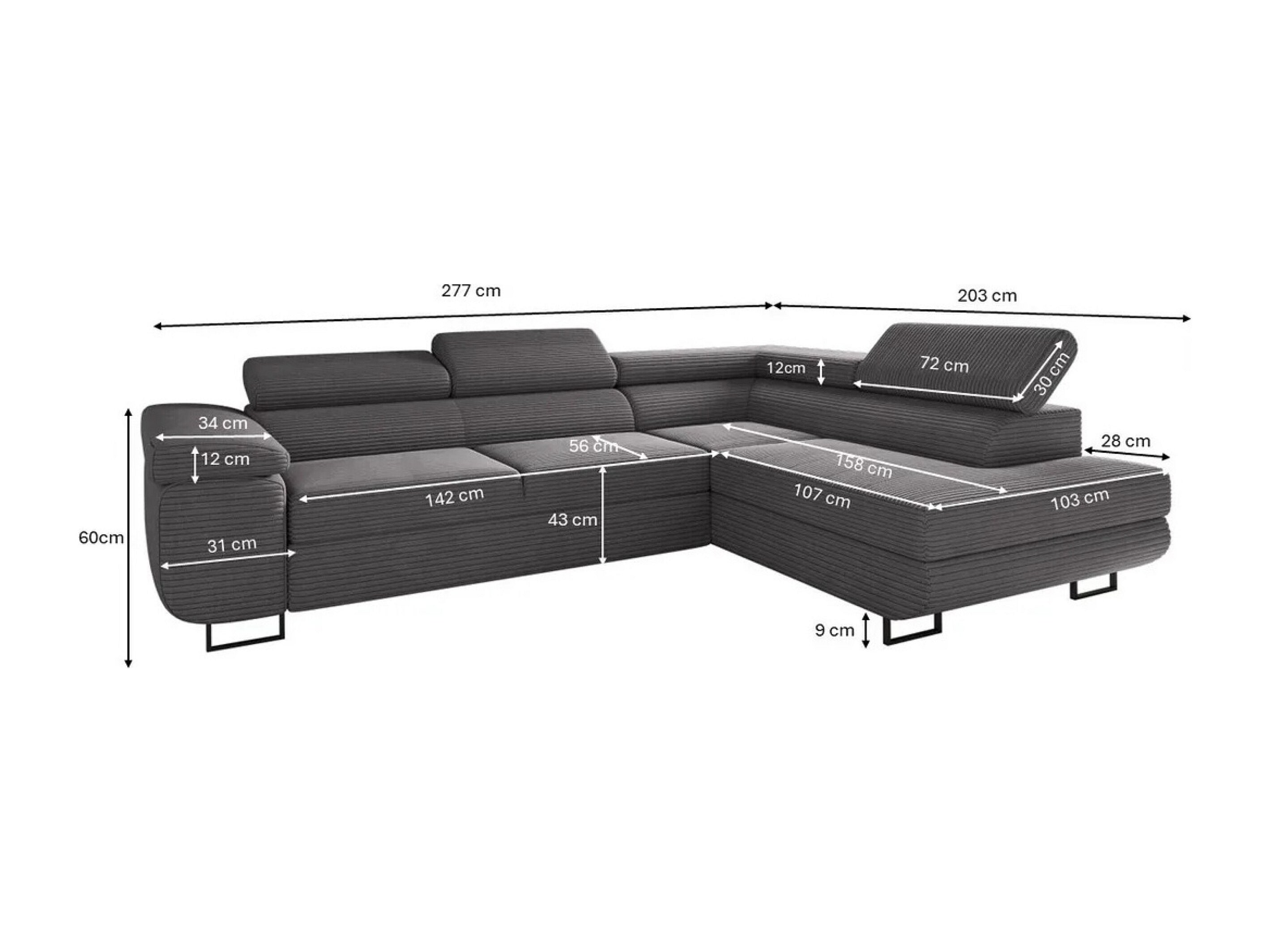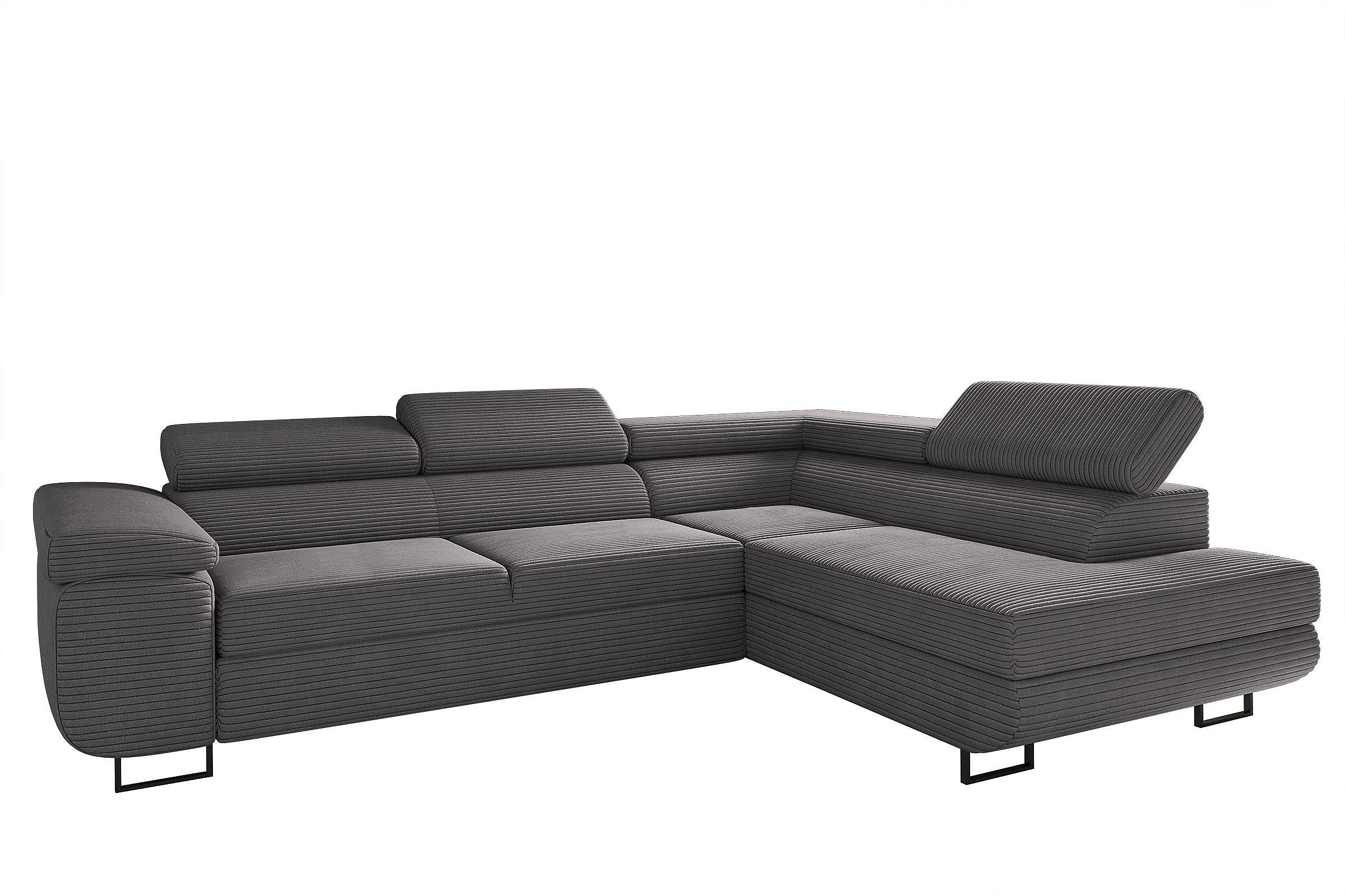 Canapé d'angle ATOMIC avec fonction couchage, tissu Poso, gris foncé, droit