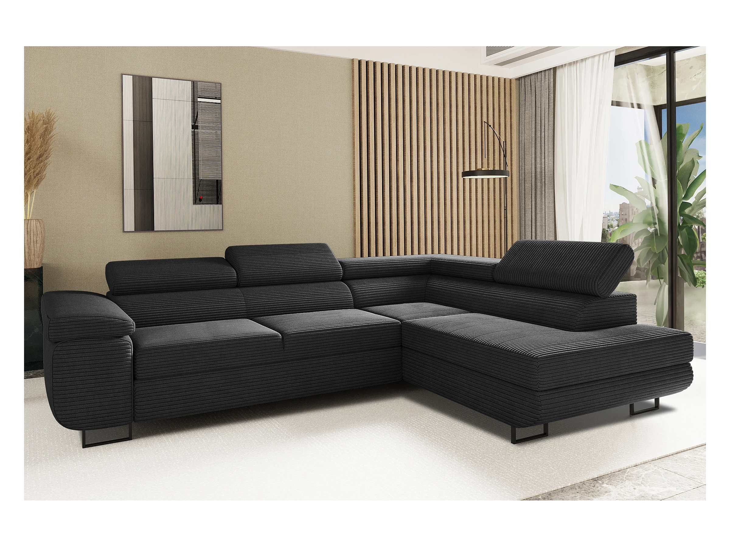 Canapé d'angle convertible en velours côtelé noir ADI L