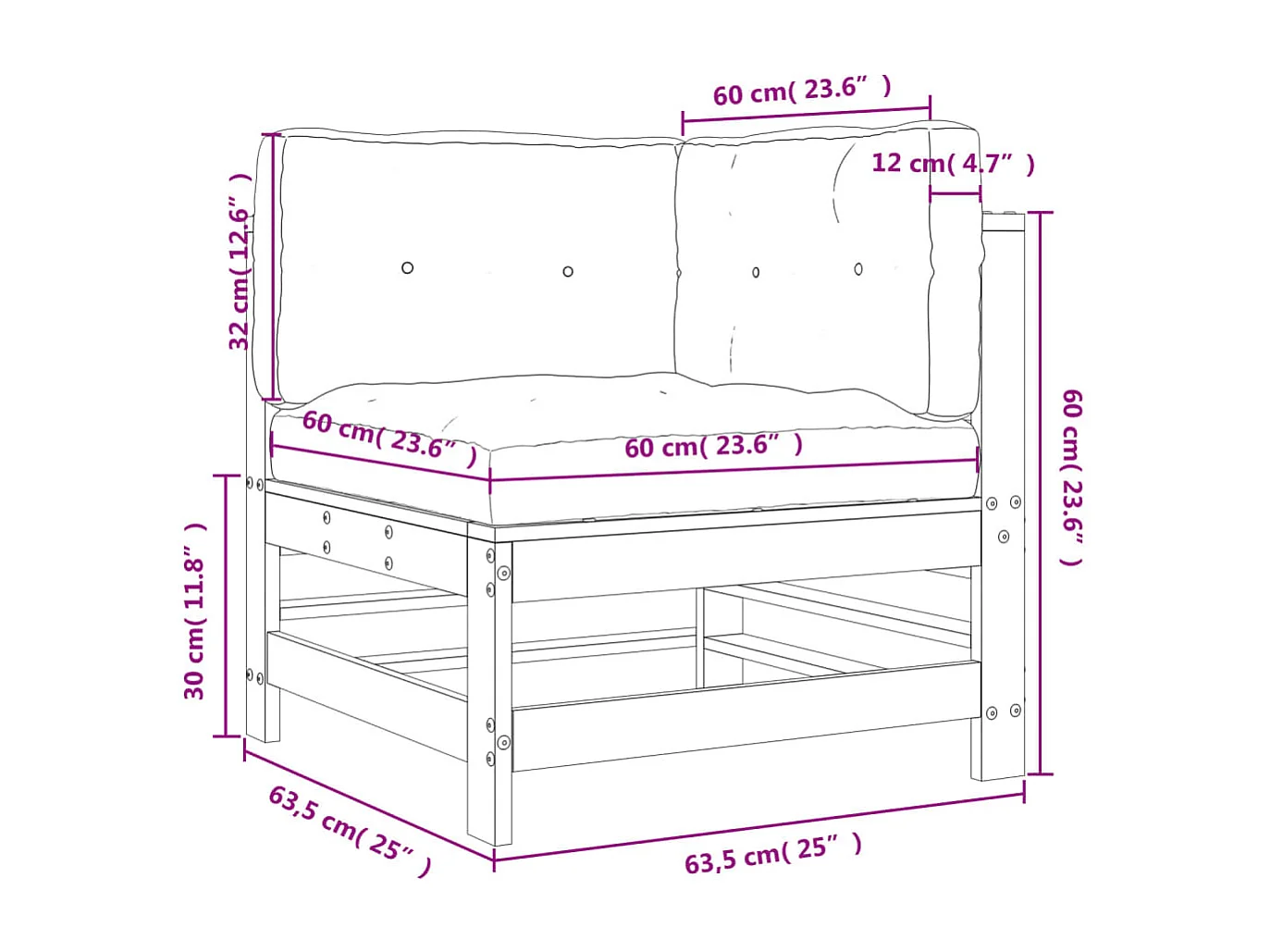 Canapé d'angle de jardin coussins cire marron bois pin massif
