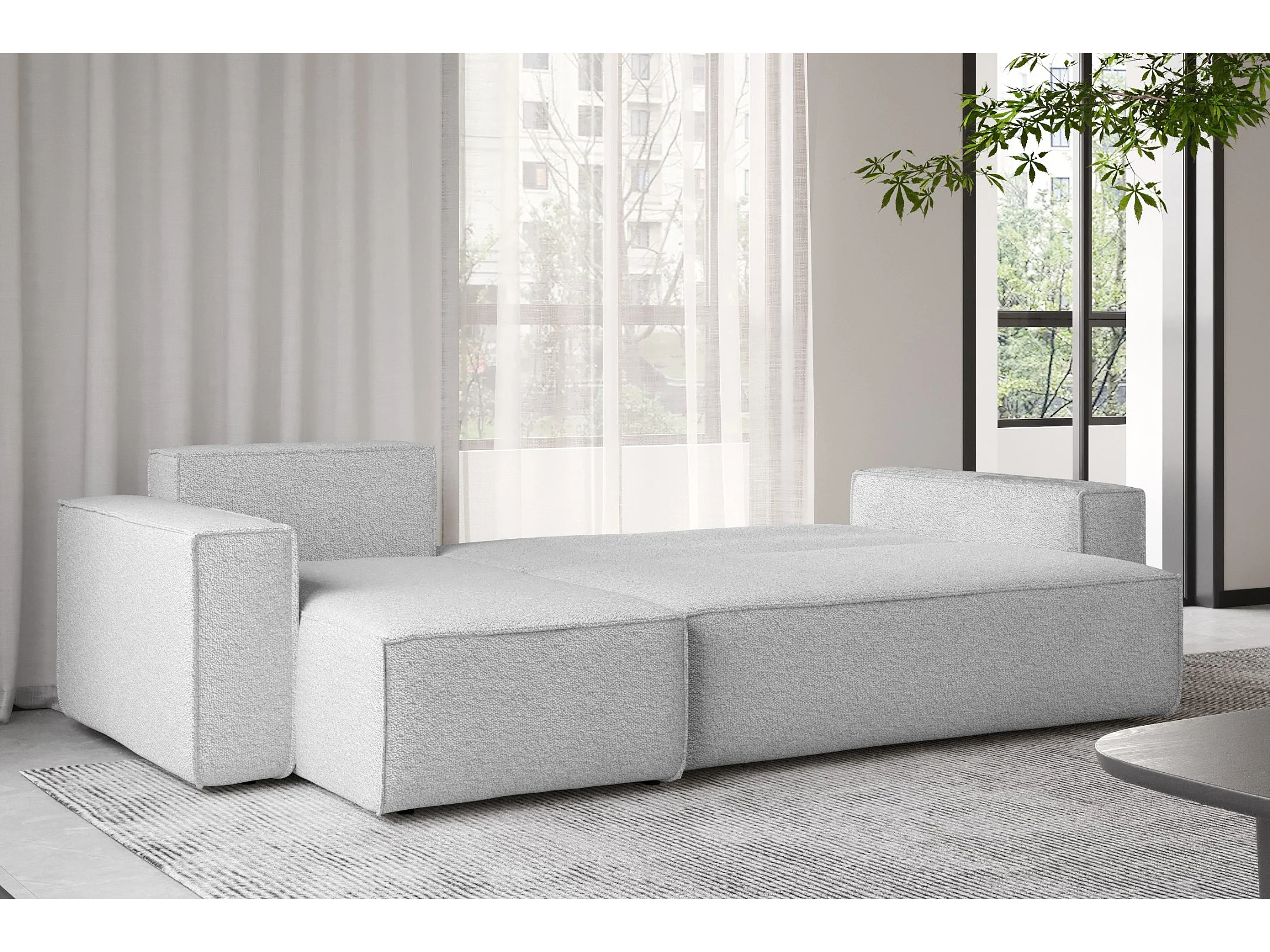 Canapé d'angle avec fonction couchage et coffre de lit, canapé d'angle en L, canapé d'angle en L BEST tissu Abriamo Gris Clair Gauche