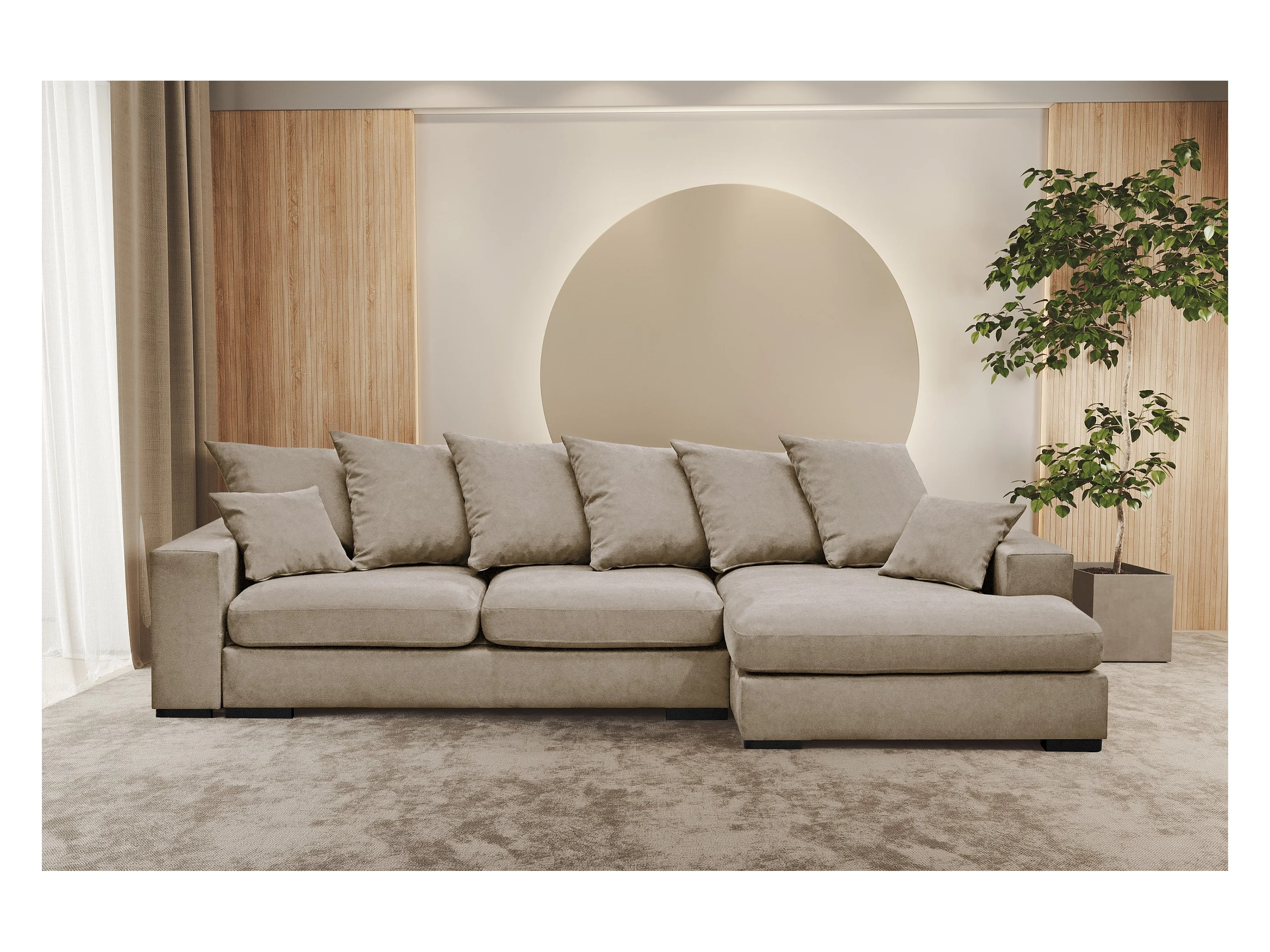 Canapé d'angle convertible - en velours luxe 5 places, avec coffre, beige, angle gauche (vu de face), ANNECY VELOURS