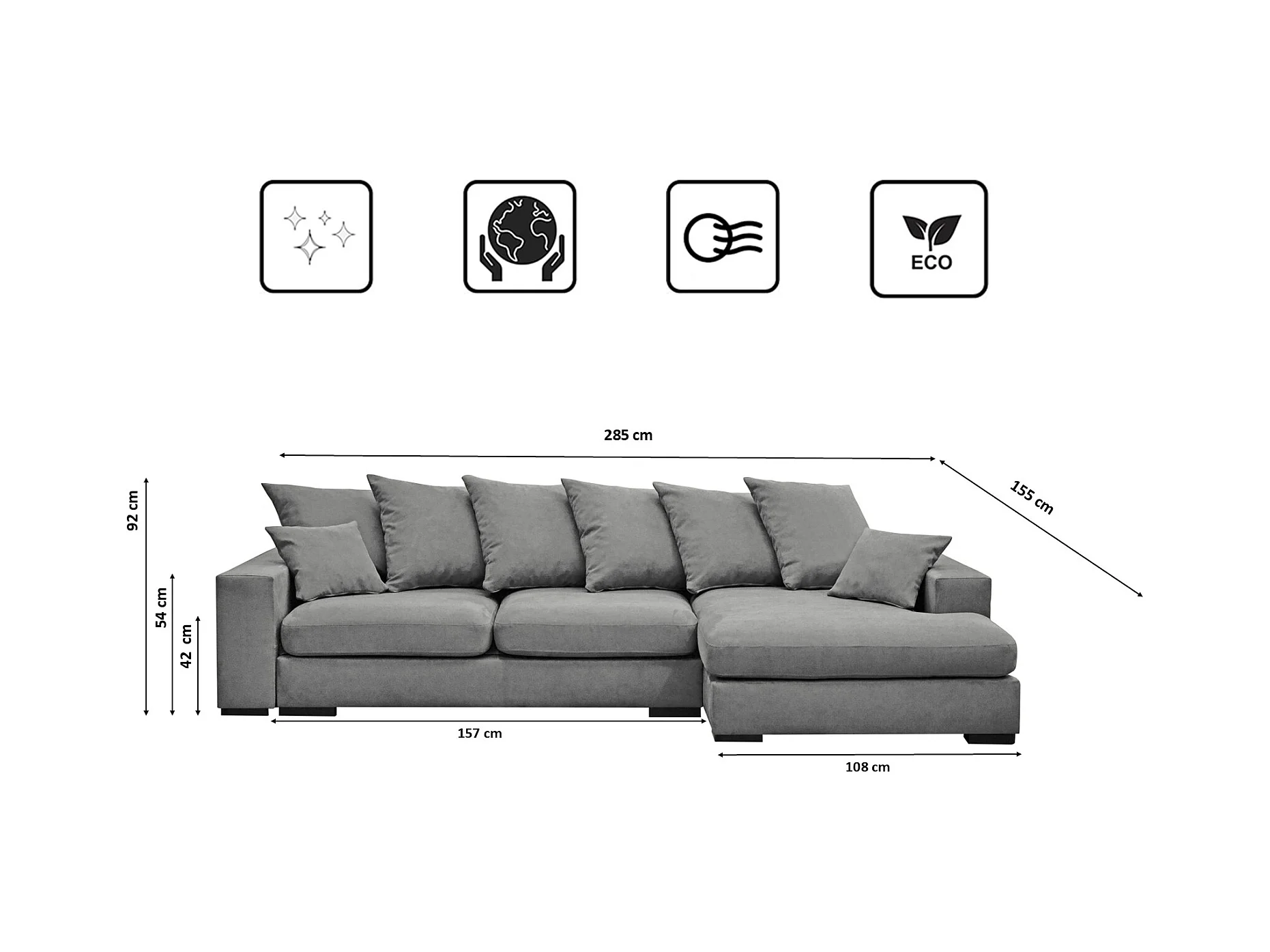 Canapé d'angle convertible RICCO avec appuie-têtes angle droit gris