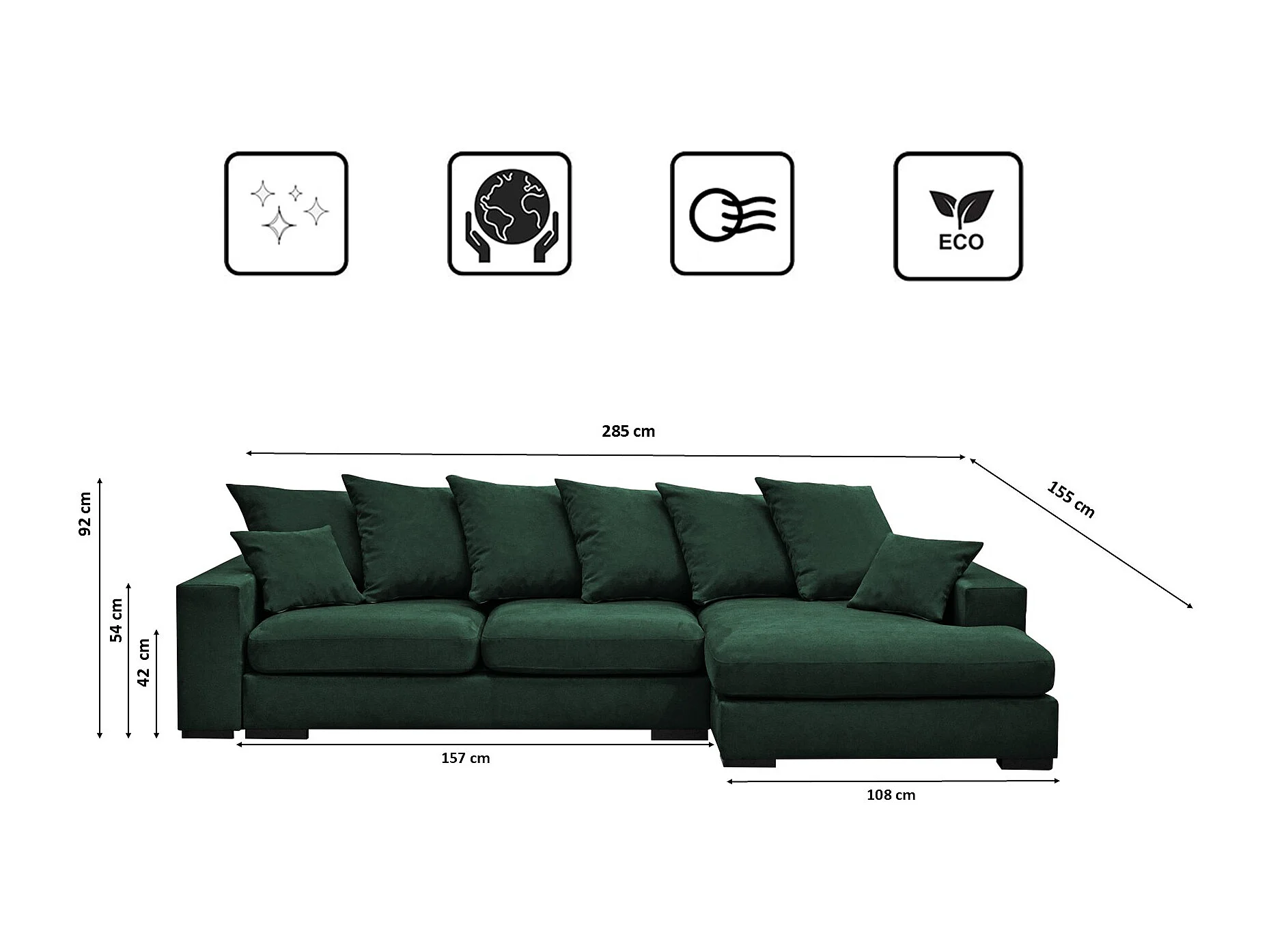 Canapé d'angle avec fonction couchage et coffre de lit, canapé d'angle en L, canapé d'angle en L BEST tissu Abriamo Vert Foncé Droite