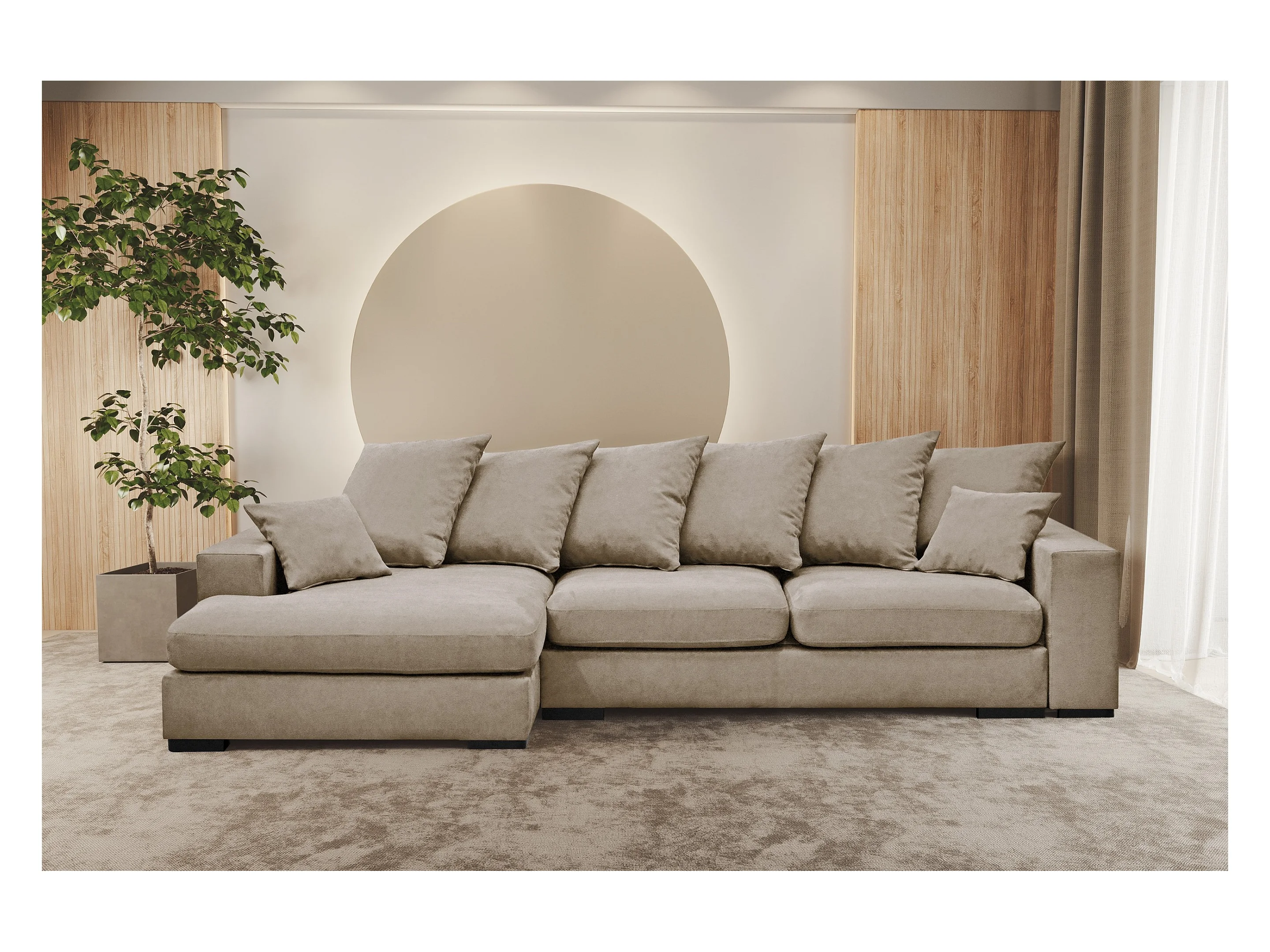 Canapé d'angle convertible - en velours luxe 5 places, avec coffre, beige, angle gauche (vu de face), ANNECY VELOURS
