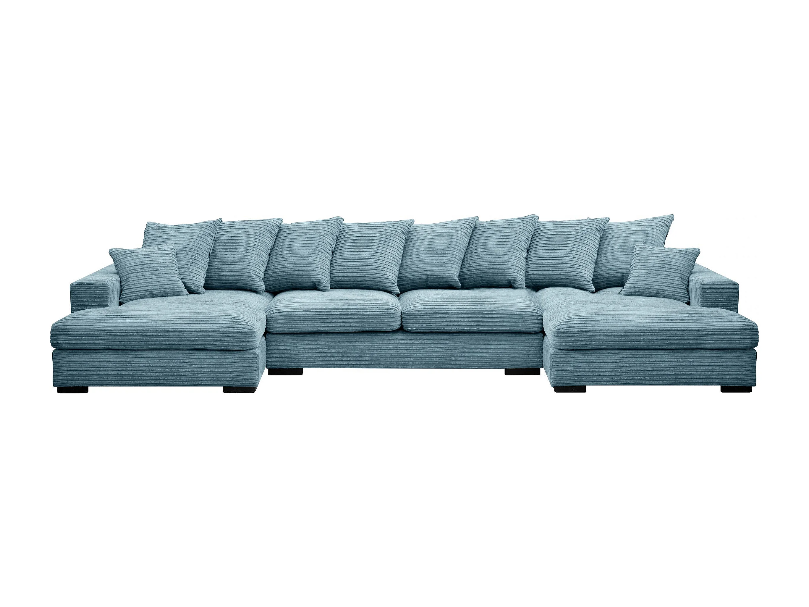 Canapé d'angle avec fonction couchage et coffre de lit, Canapé en U, Canapé en U tissu Gabon Zoom Bleu Clair