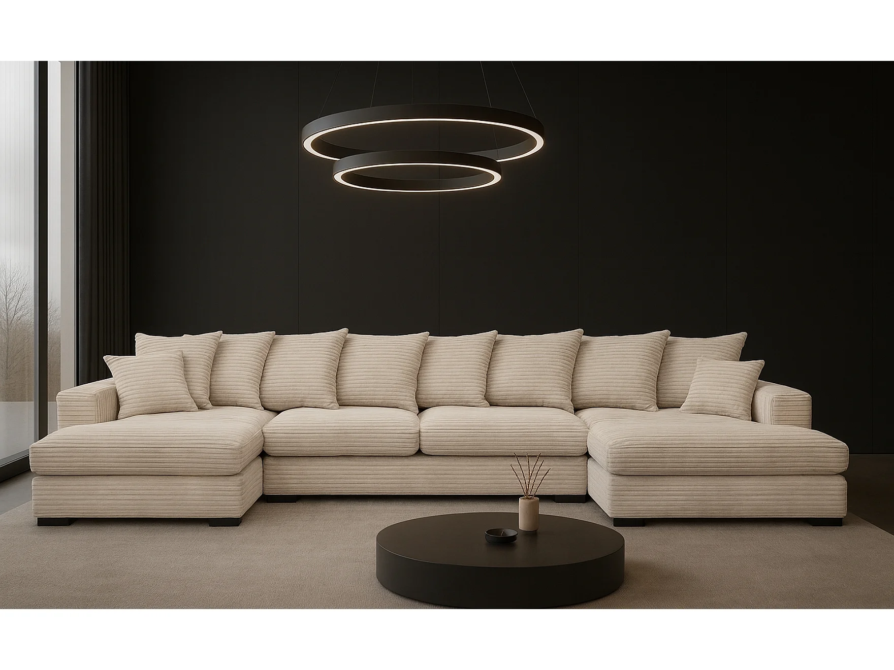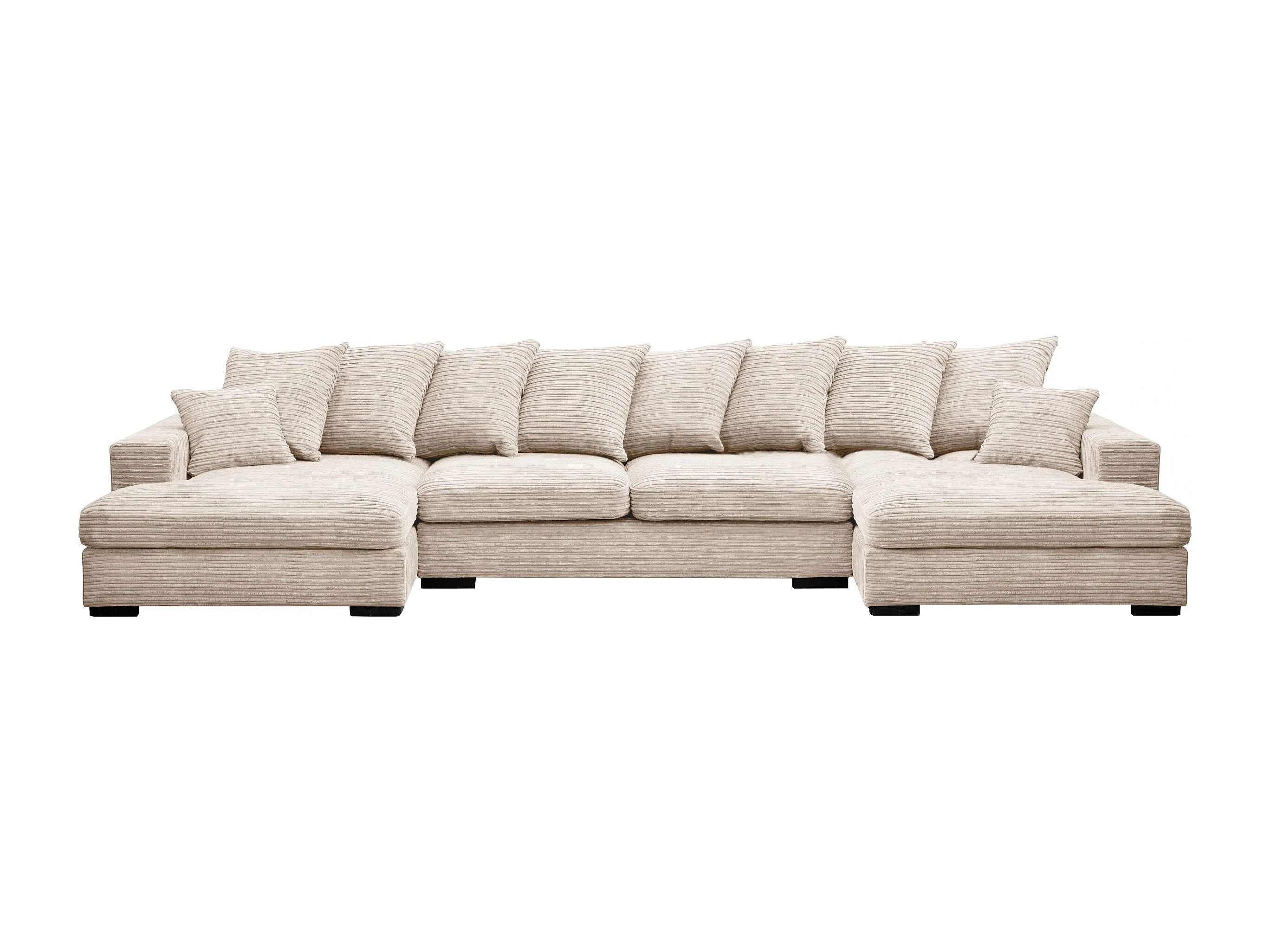 Canapé d'angle avec fonction couchage et coffre de lit, Canapé en U, Canapé en U tissu Gabon Zoom Crème