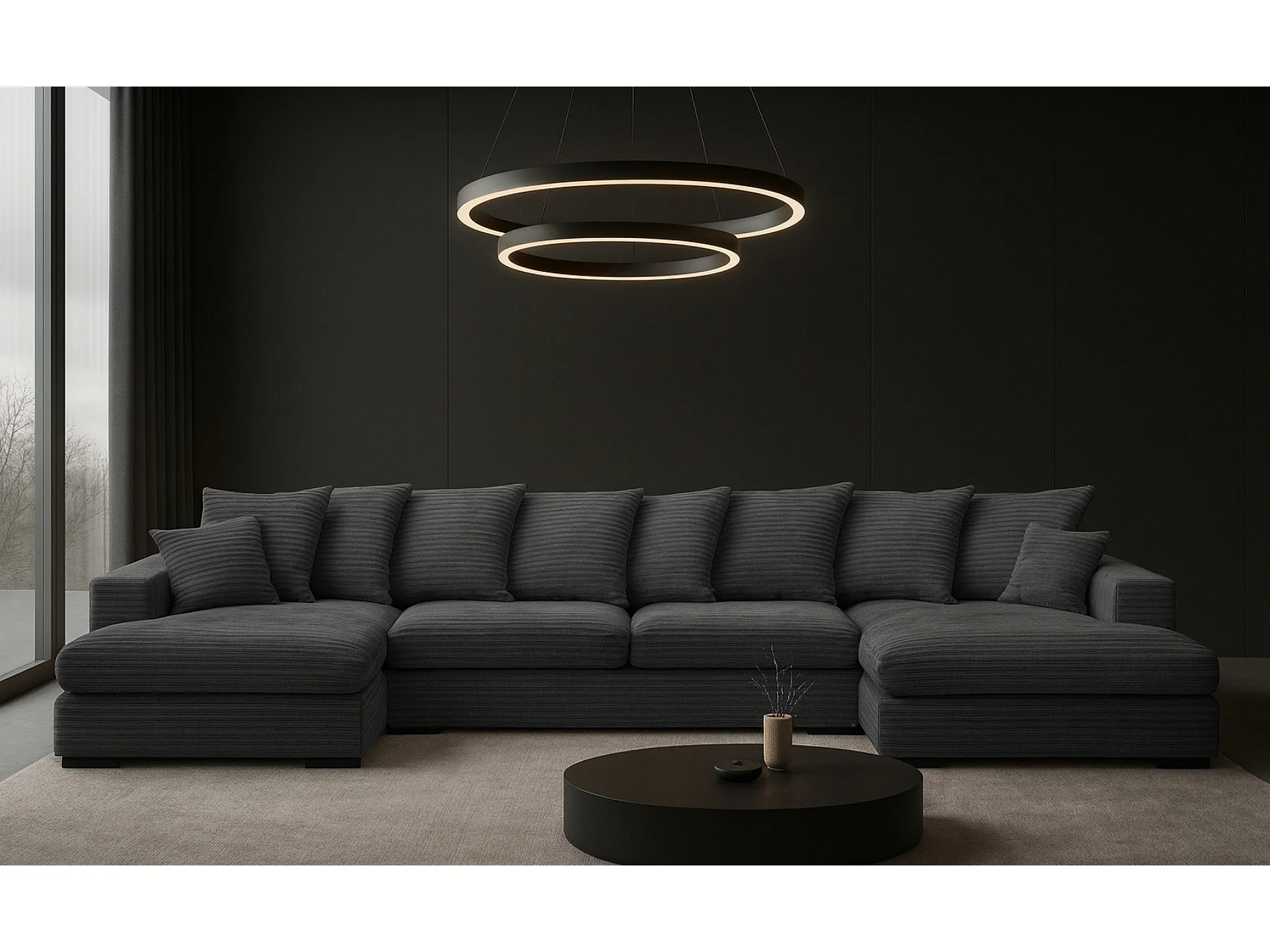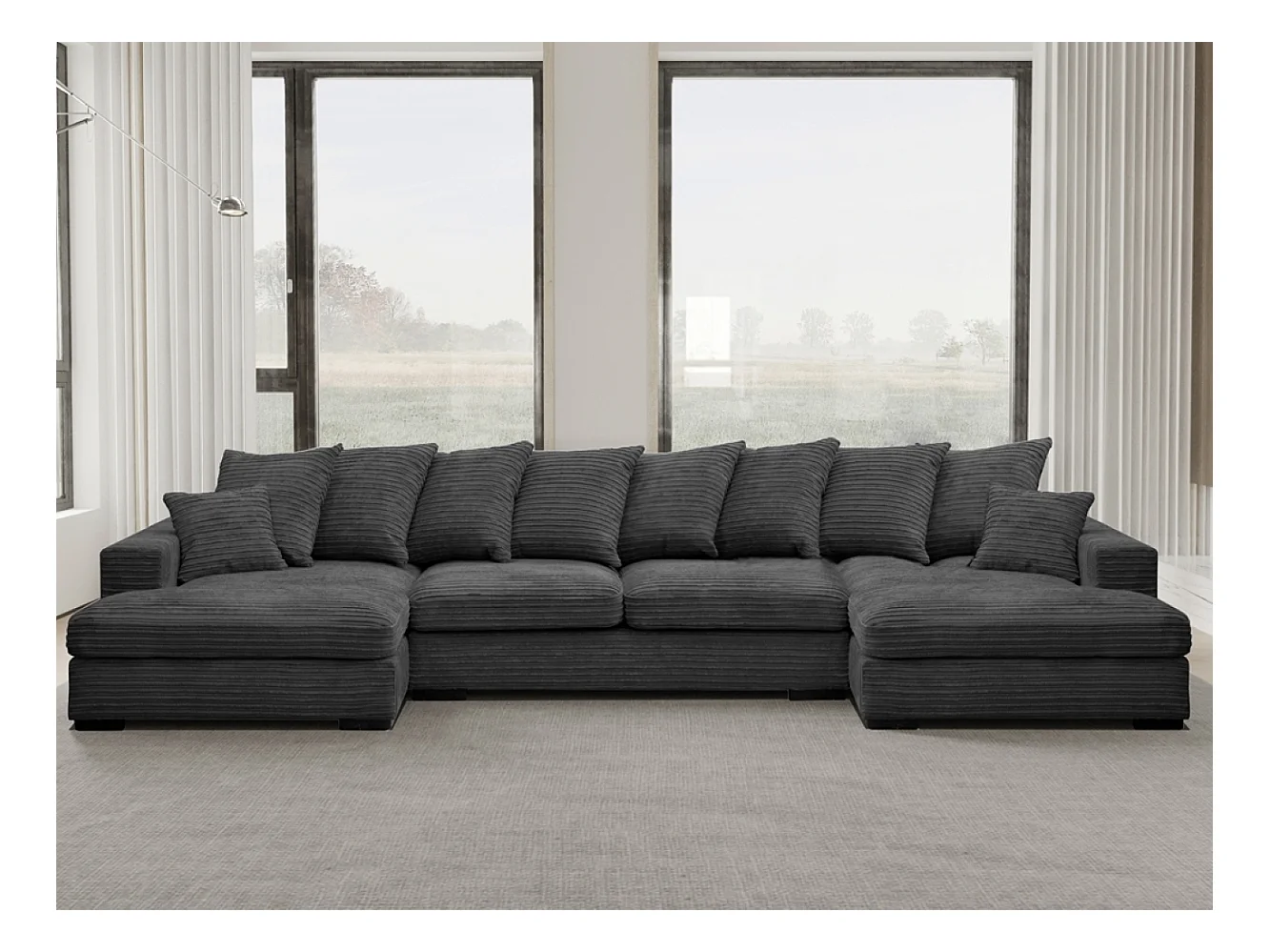 Canapé d'angle avec fonction couchage et coffre de lit, Canapé en U, Canapé en U tissu Gabon Zoom Graphite