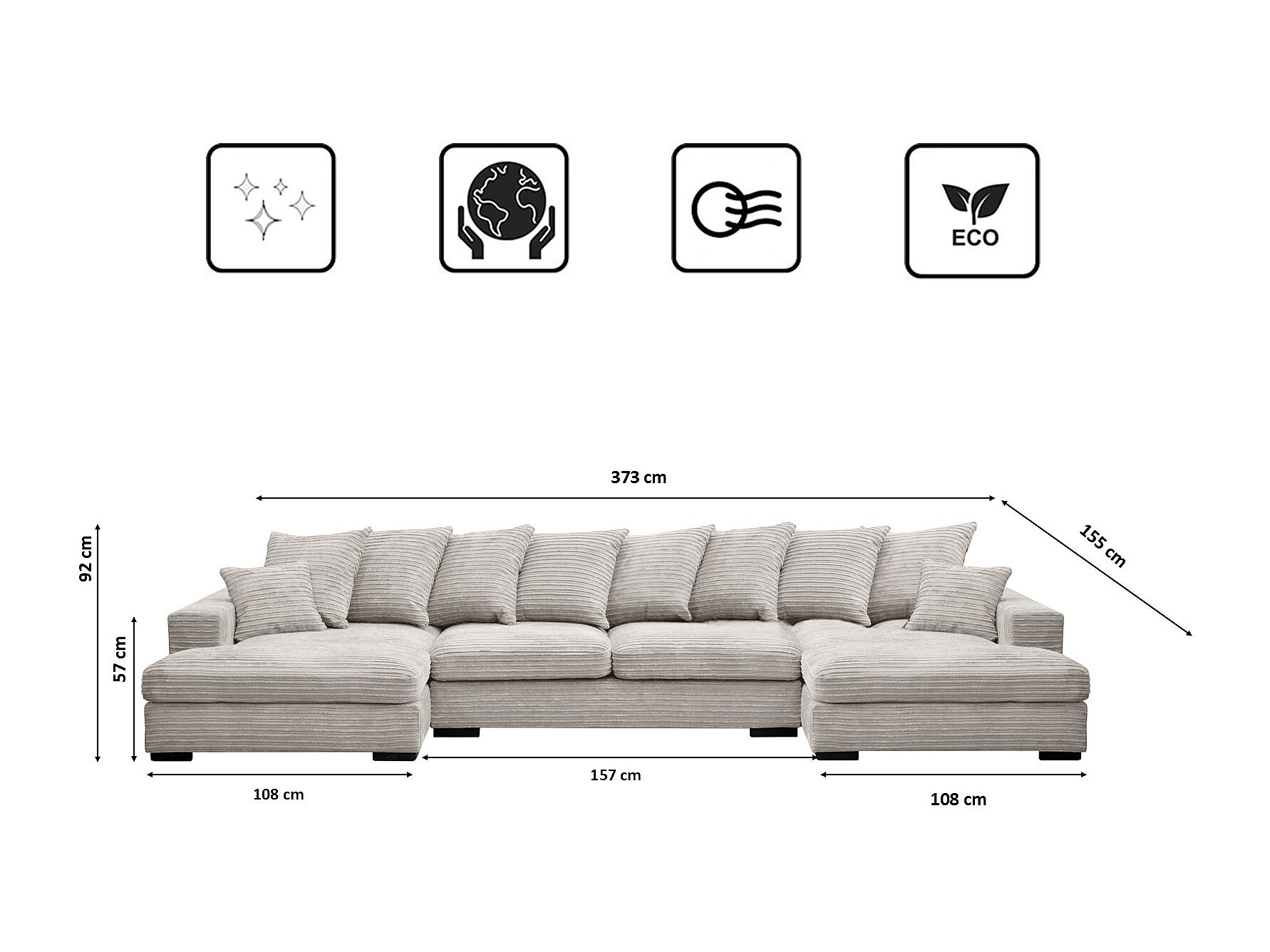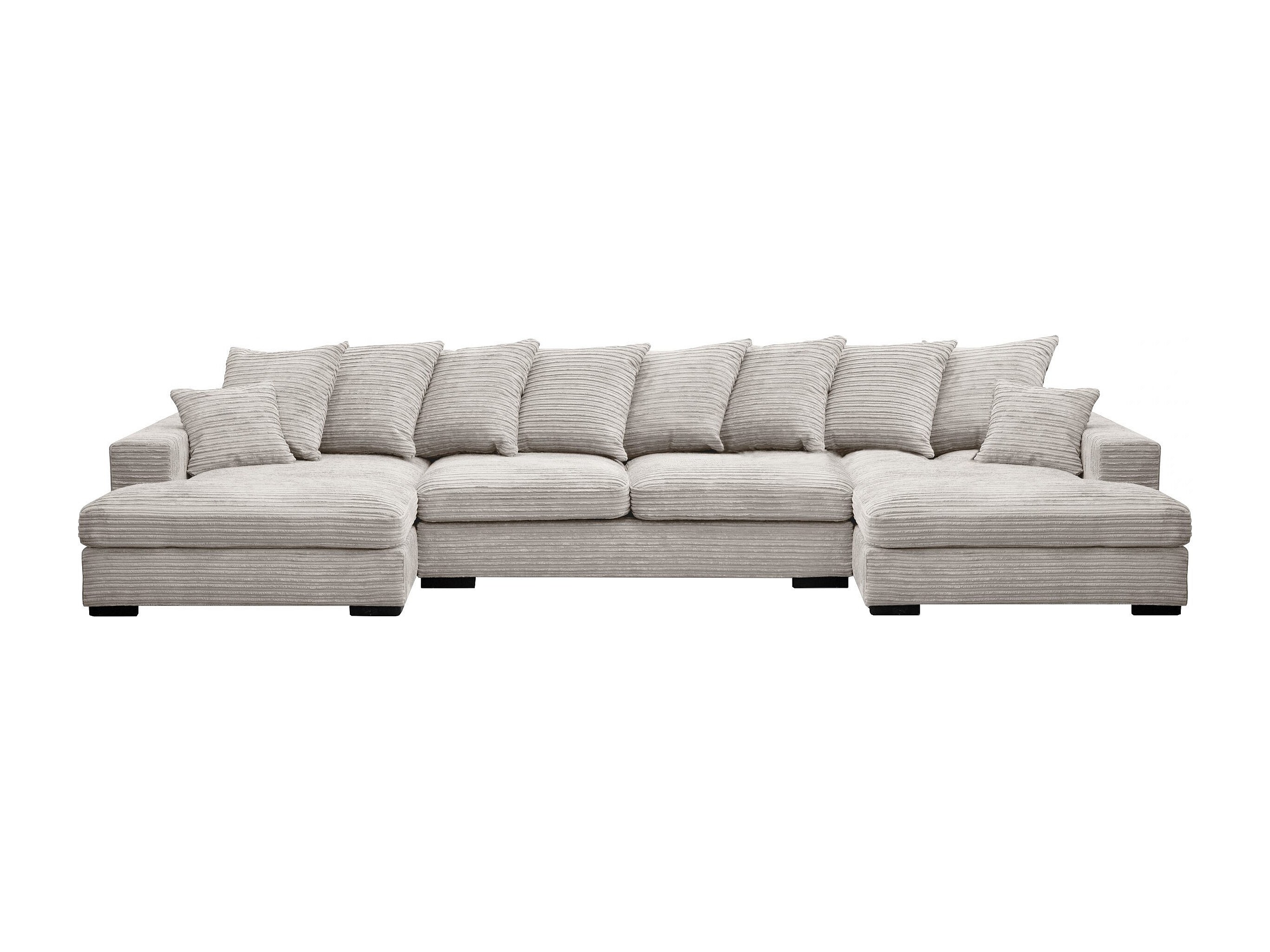 Canapé d'angle avec fonction couchage et coffre de lit, Canapé en U, Canapé en U tissu Gabon Zoom Perle