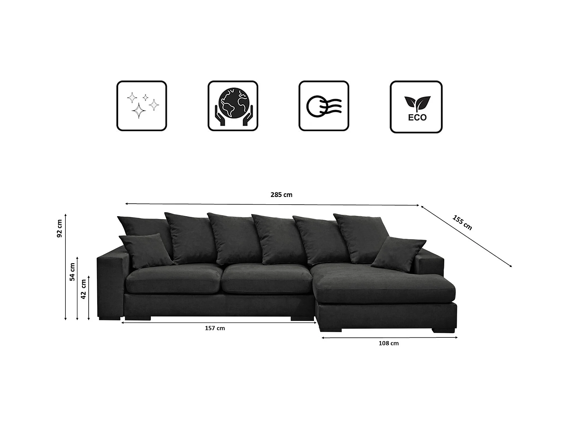 Canapé d'angle convertible en tissu PYLOS - Anthracite - Angle droit
