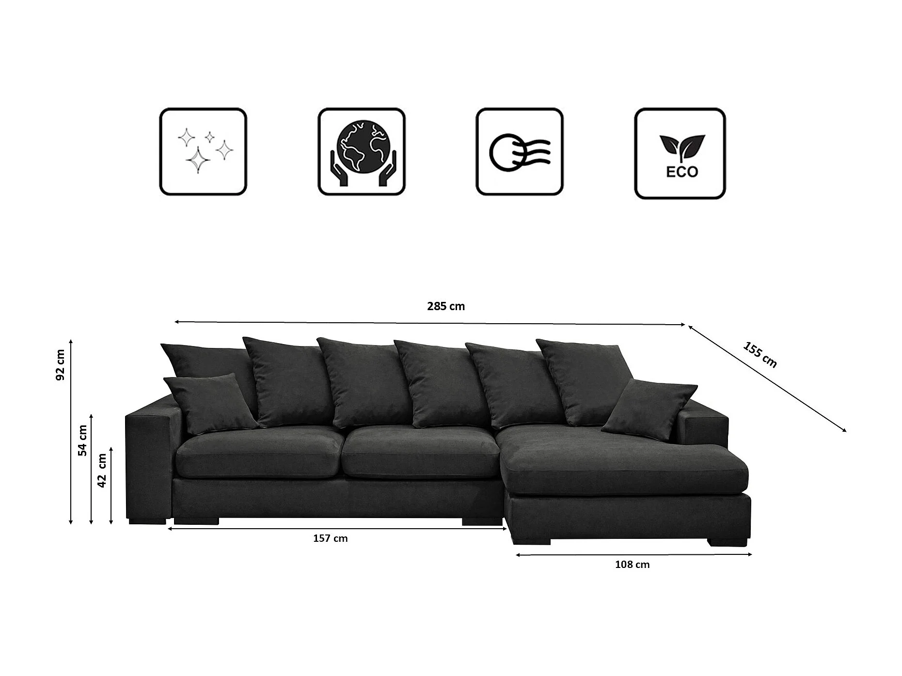 Canapé d'angle Carlos avec fonction couchage et coffre de lit Tissu élégant Poso Graphite