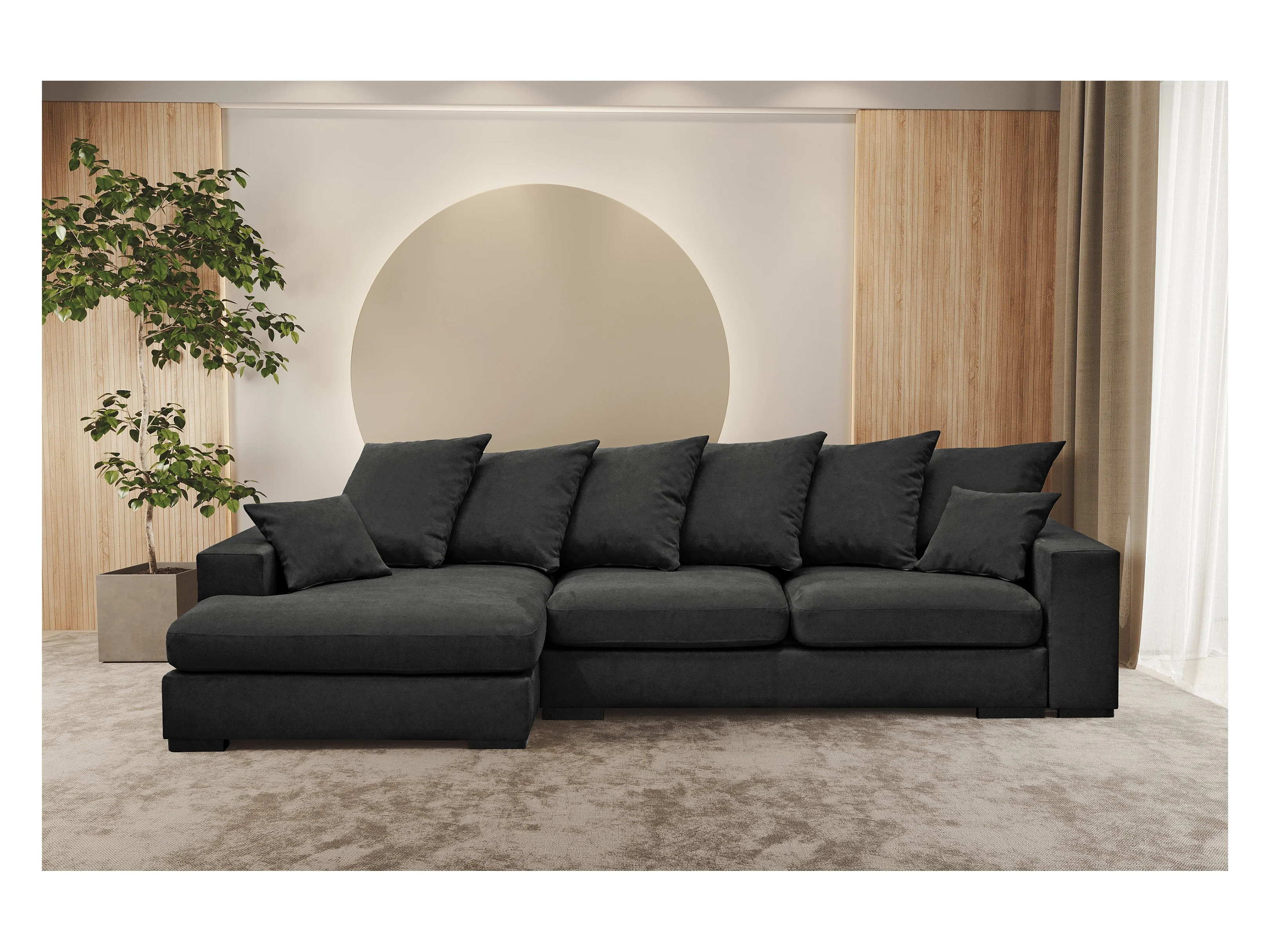 Canapé d'angle Carlos avec fonction couchage et coffre de lit Tissu élégant Poso Graphite