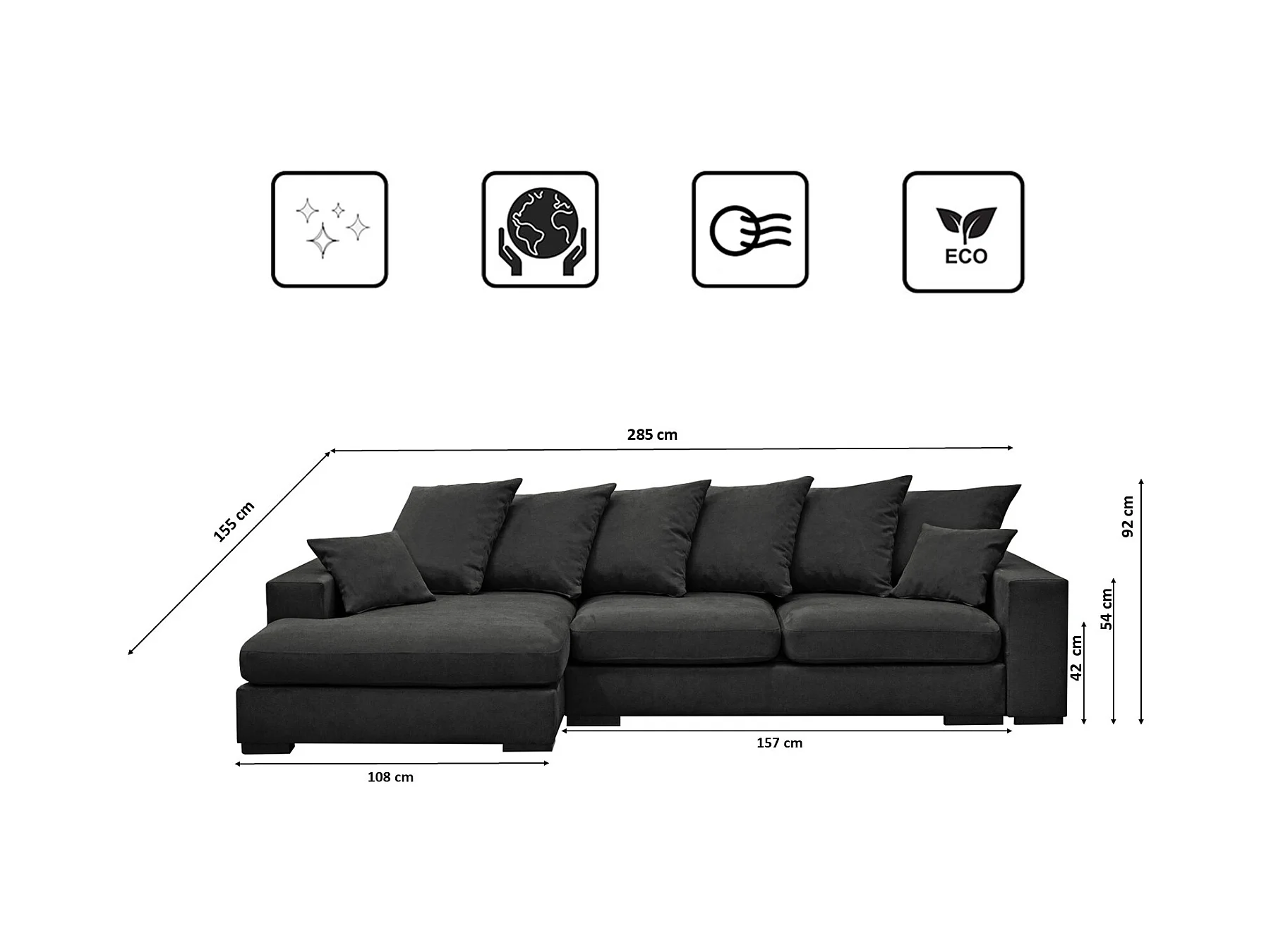 Canapé d'angle convertible en tissu PYLOS - Anthracite - Angle droit