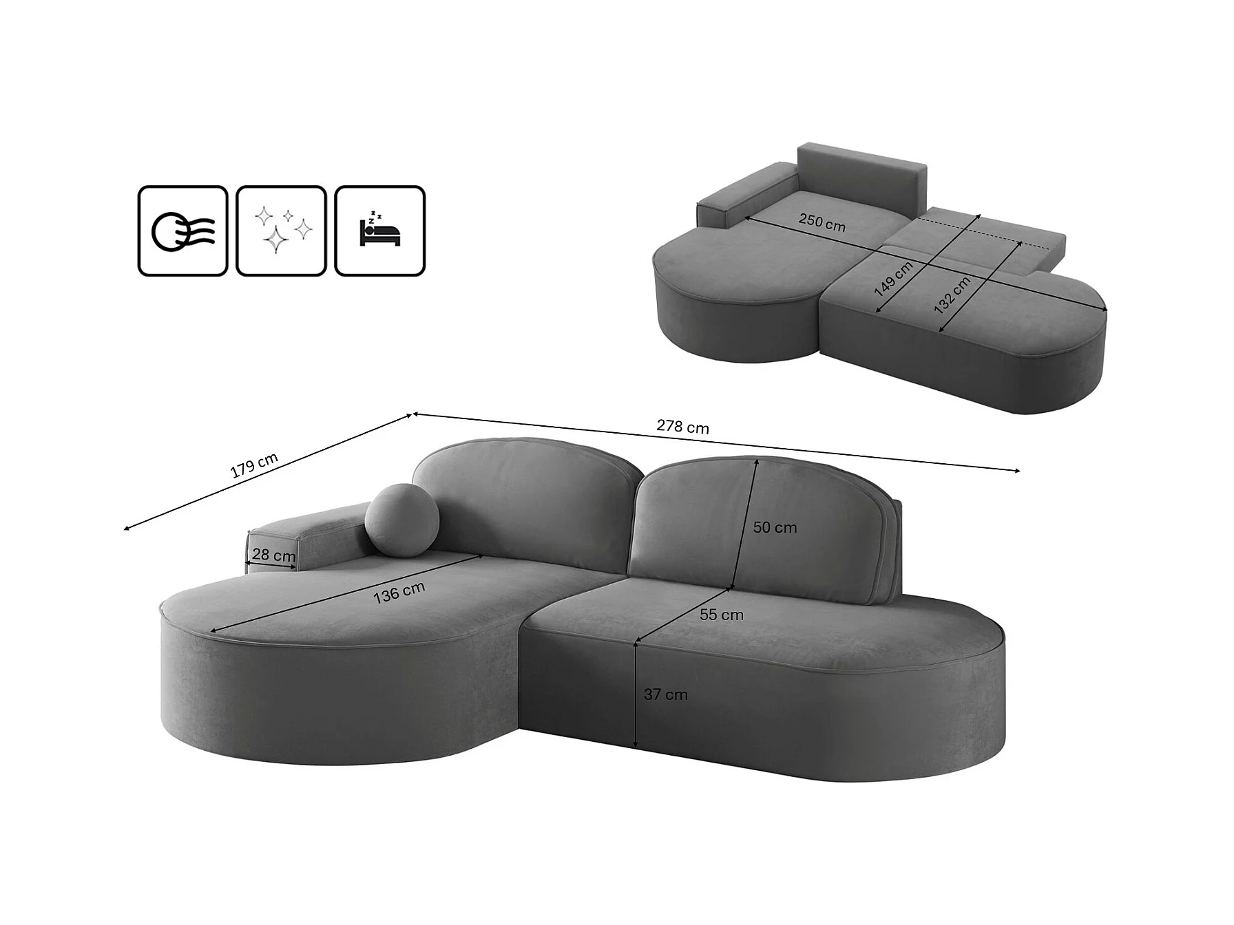 Canapé d'angle avec fonction couchage et coffre de lit Modena Round tissu Salvador Anthracite Gauche