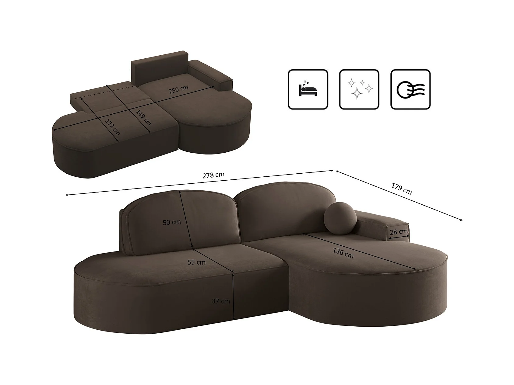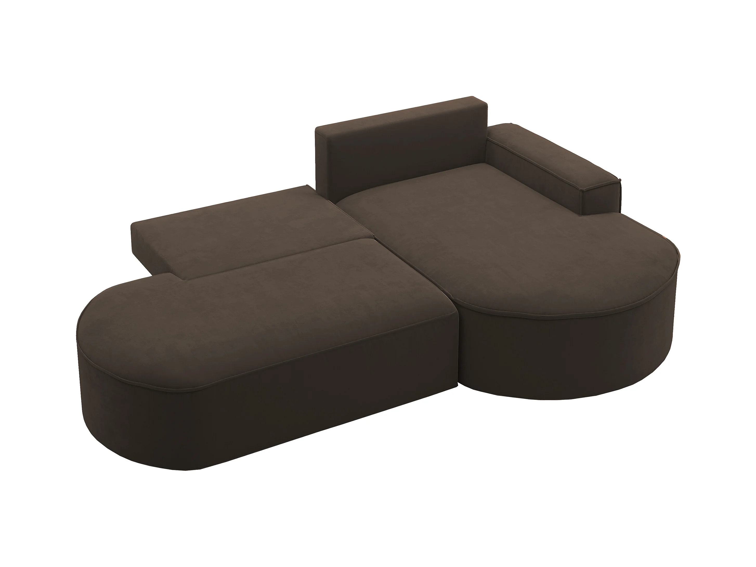 Canapé d'angle avec fonction couchage et coffre de lit Modena Round tissu Salvador Dark Brown Right