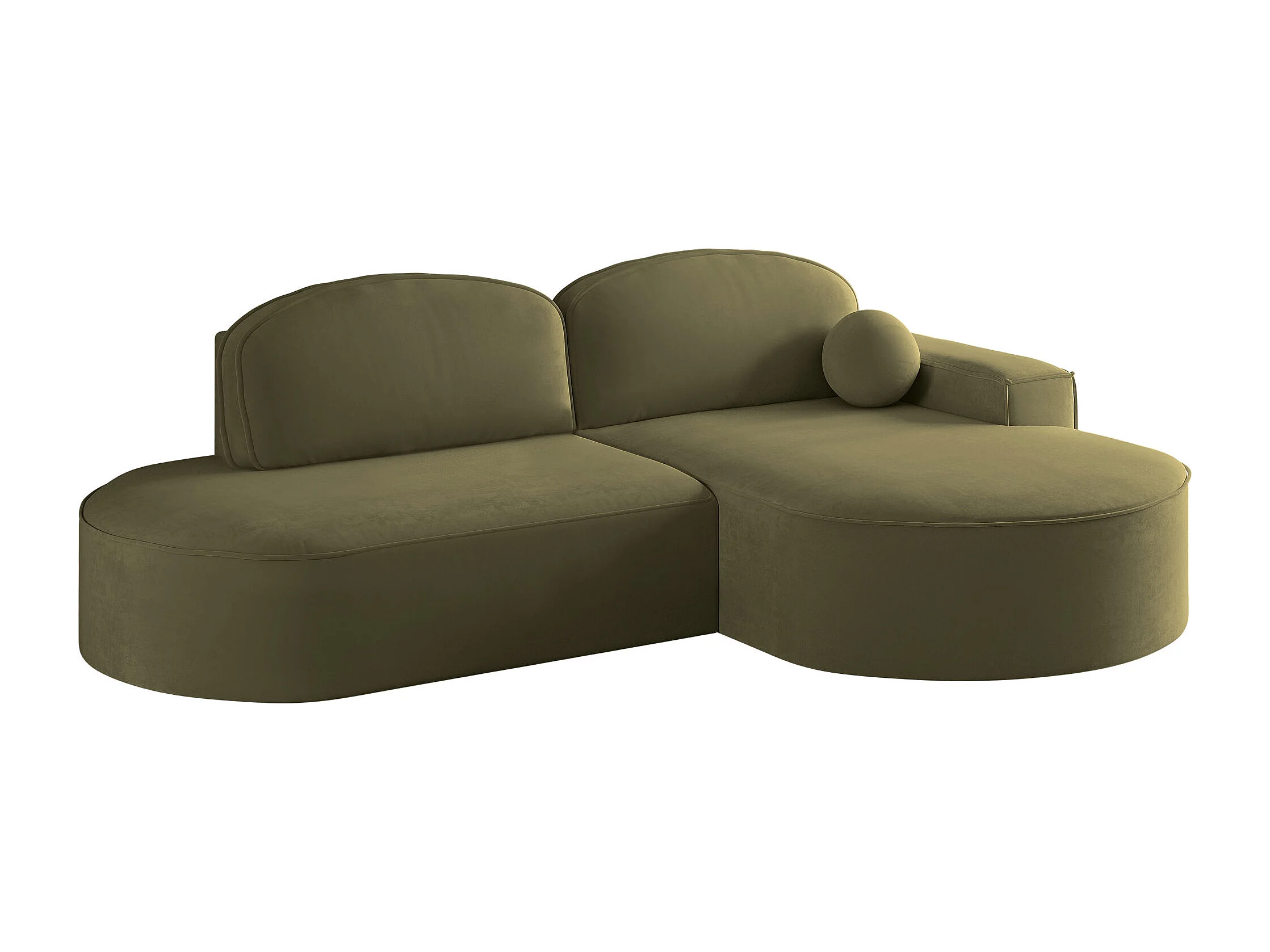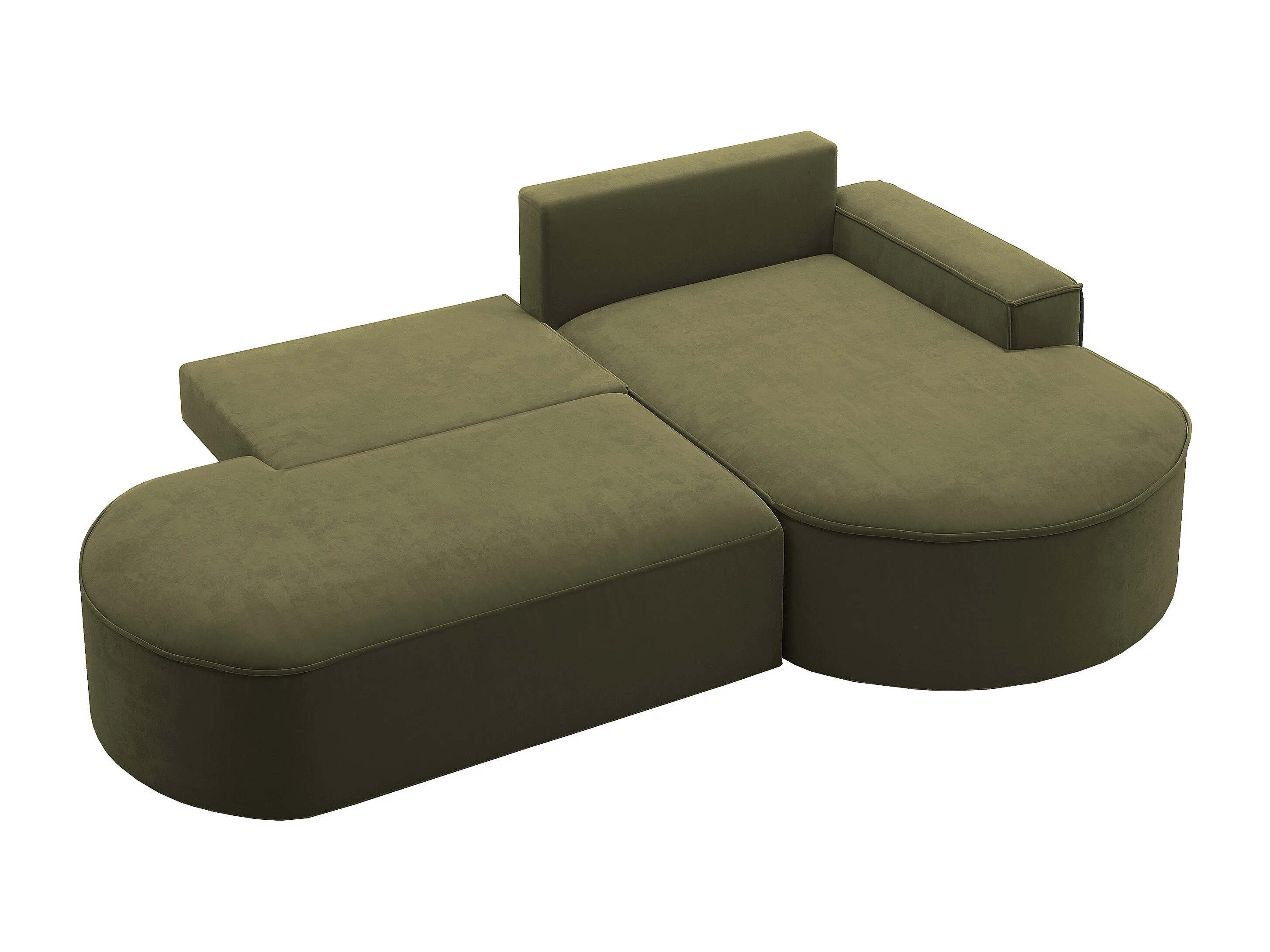 Canapé d'angle avec fonction couchage et coffre de lit Modena Round tissu Salvador Olive Droite