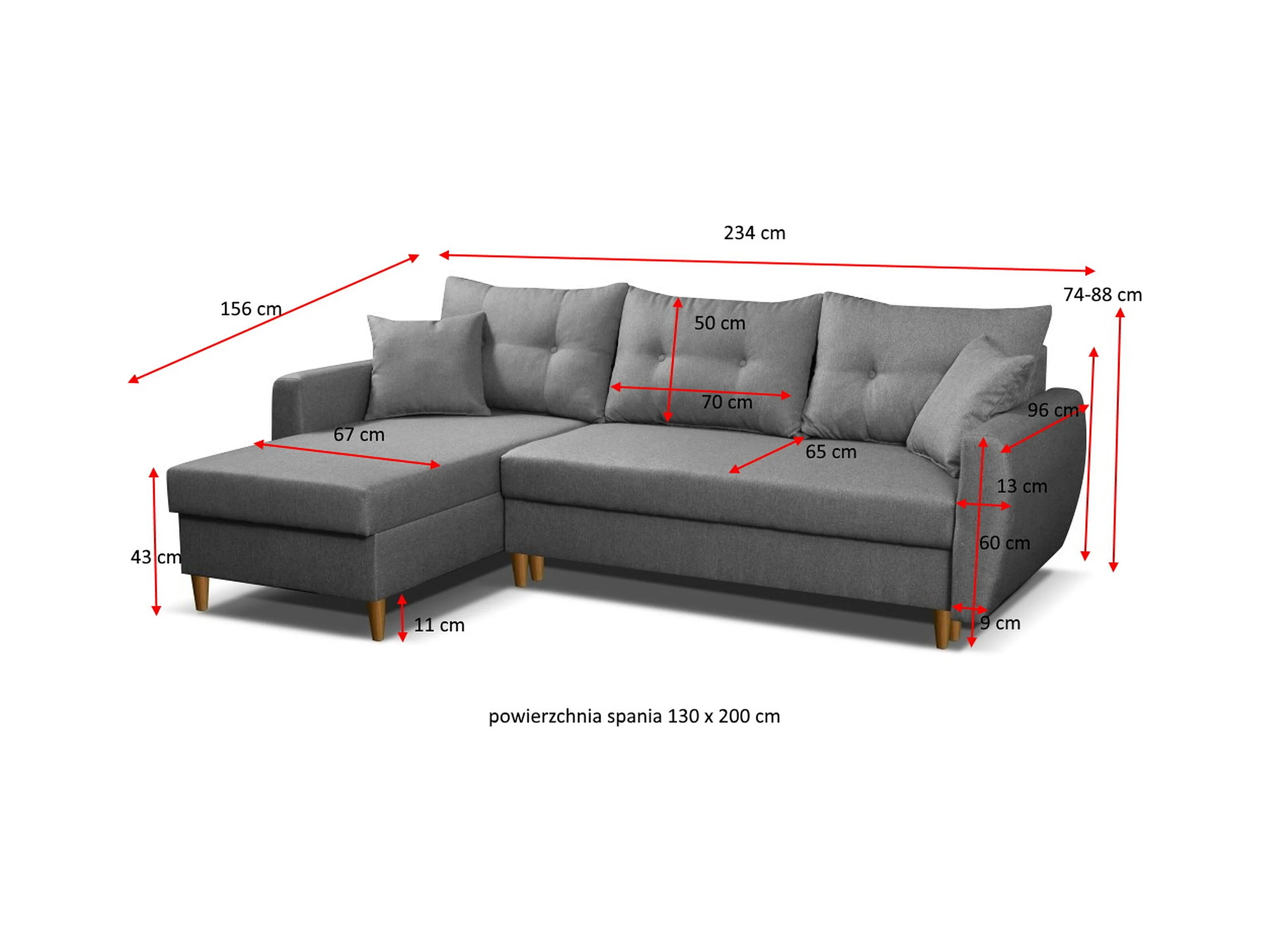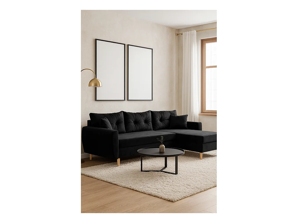 Canapé d’angle avec fonction de couchage, côté droit ROMEO L, tissu Riviera 100 noir, 234x156x74 cm