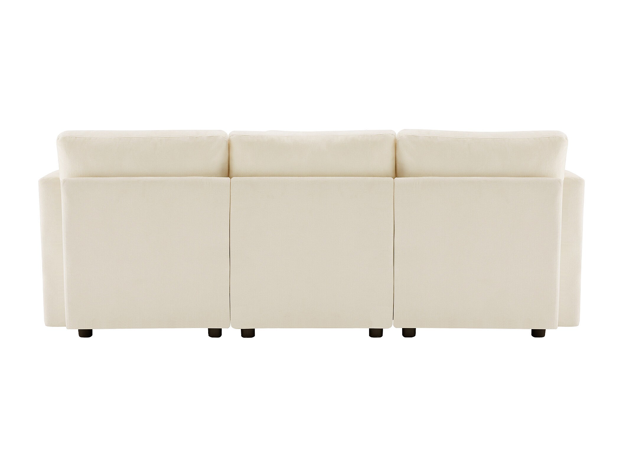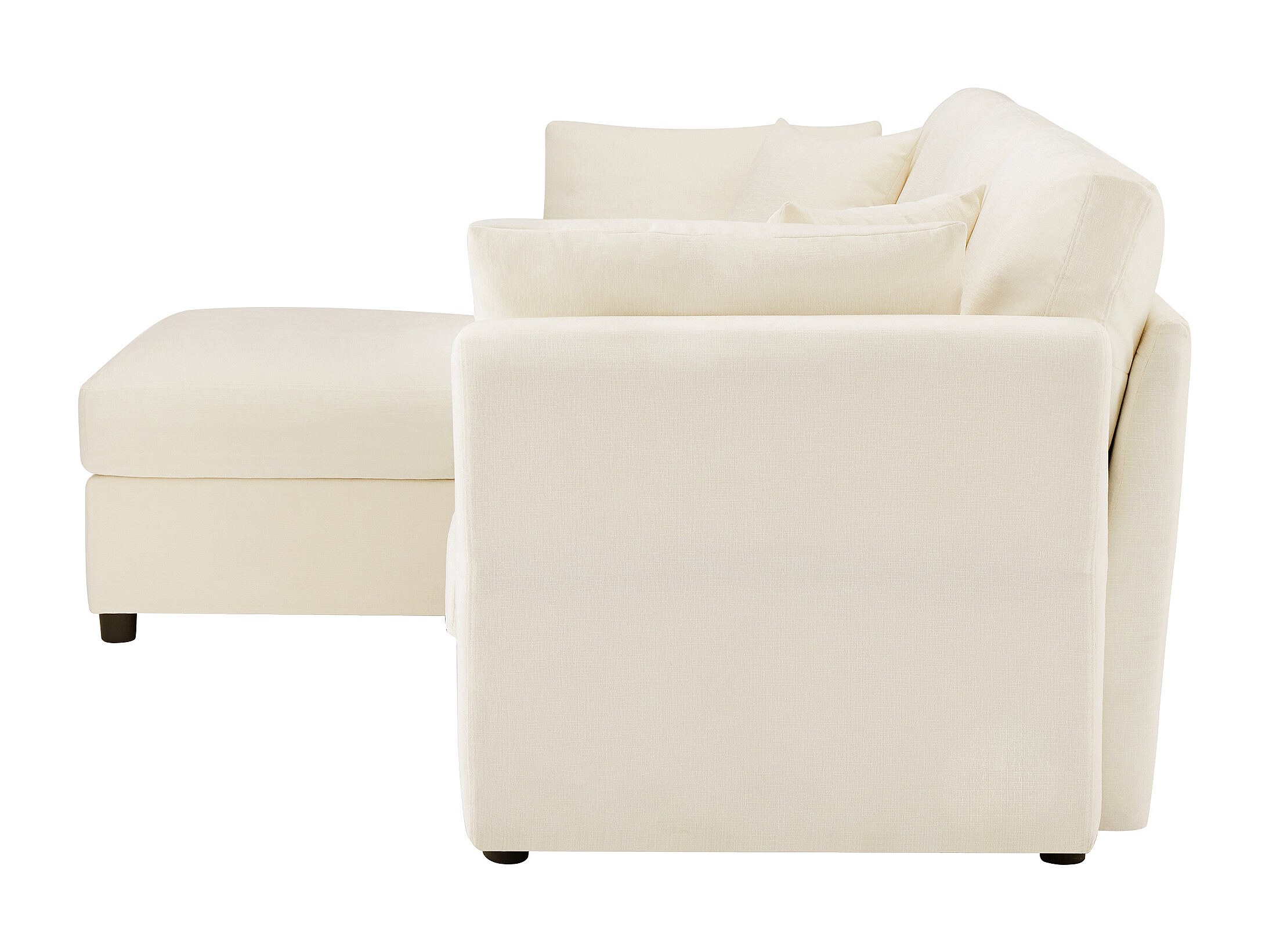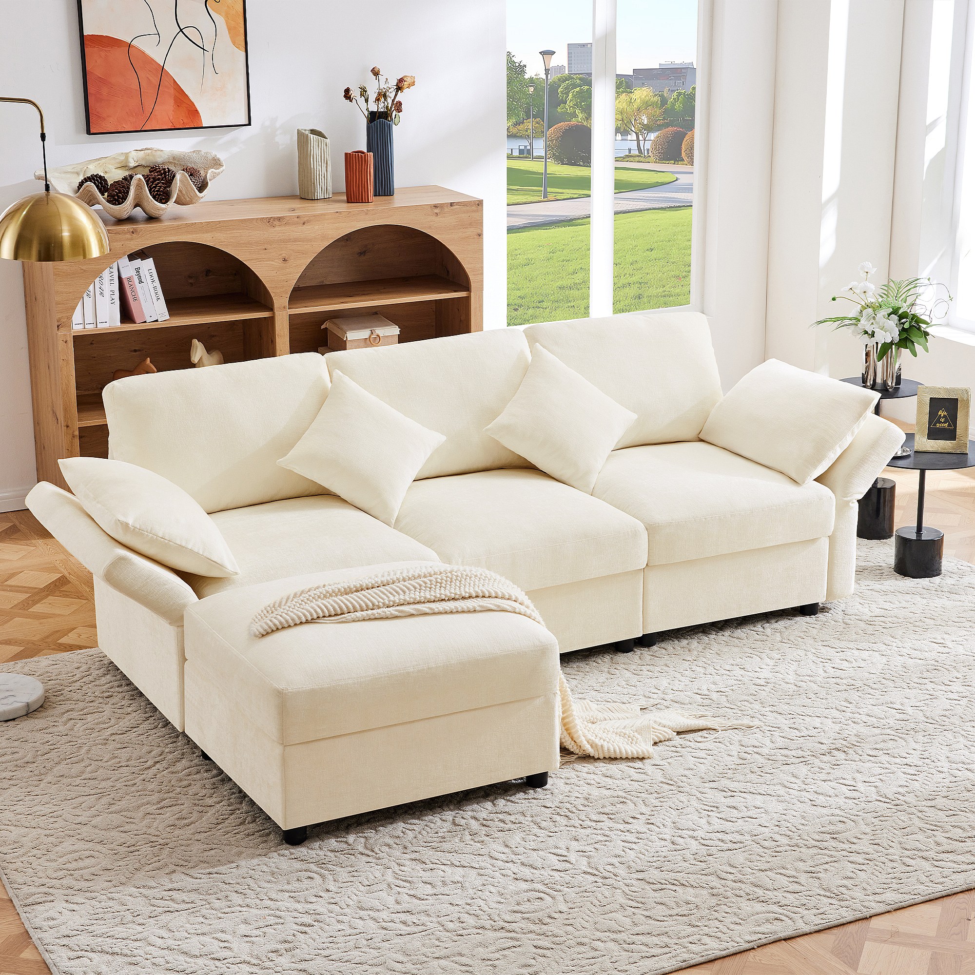 Canapé d'angle avec repose-pieds - Canapé 4 places avec 4 coussins et accoudoirs réglables - tissu chenille beige