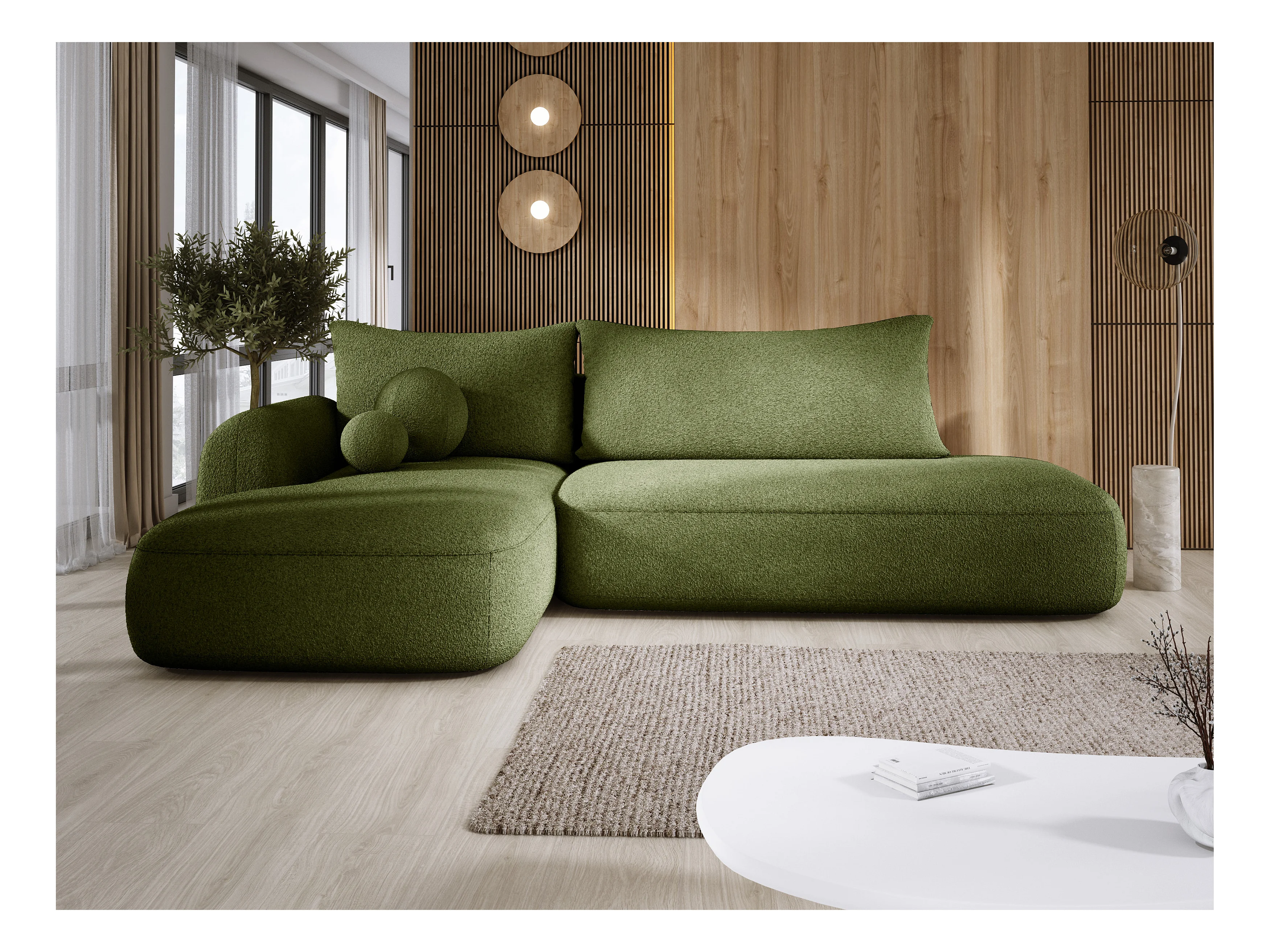 Canapé d’angle BOULI 4 places Raven, couchage 130x210cm, coffre, 264x162x82cm, gauche orange