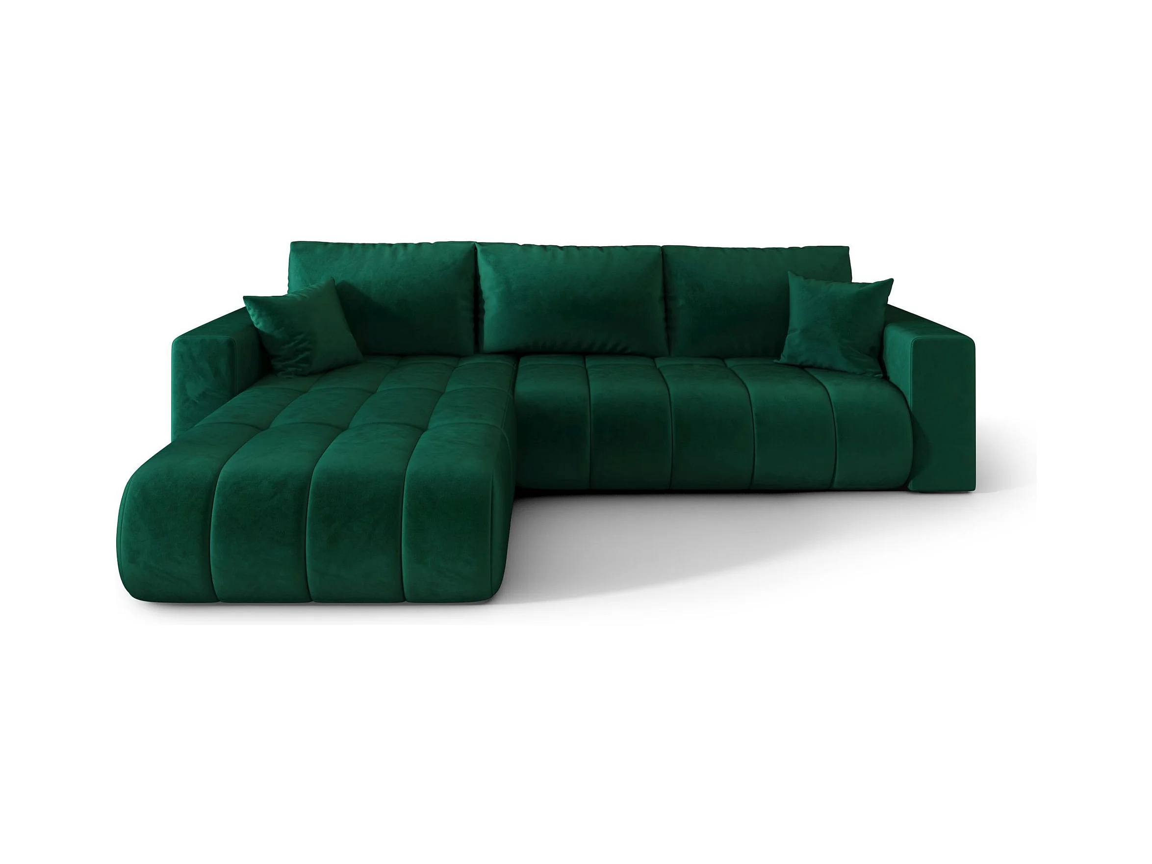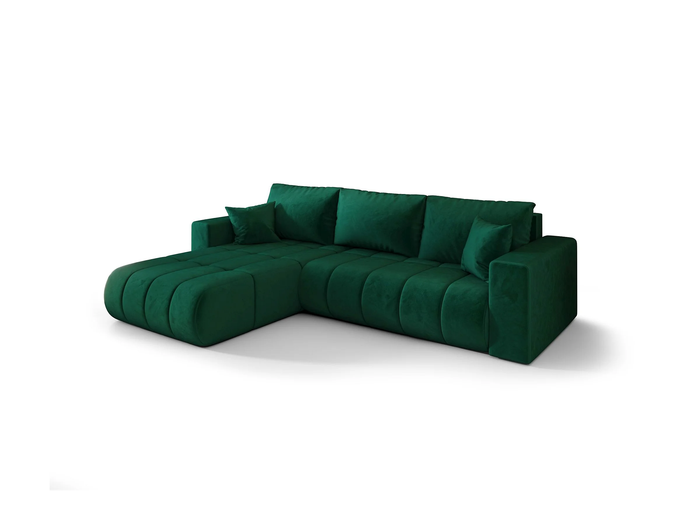 ARIEL L – Canapé d’angle droit convertible 250x142x87 cm, tissu Velo 79 vert bouteille